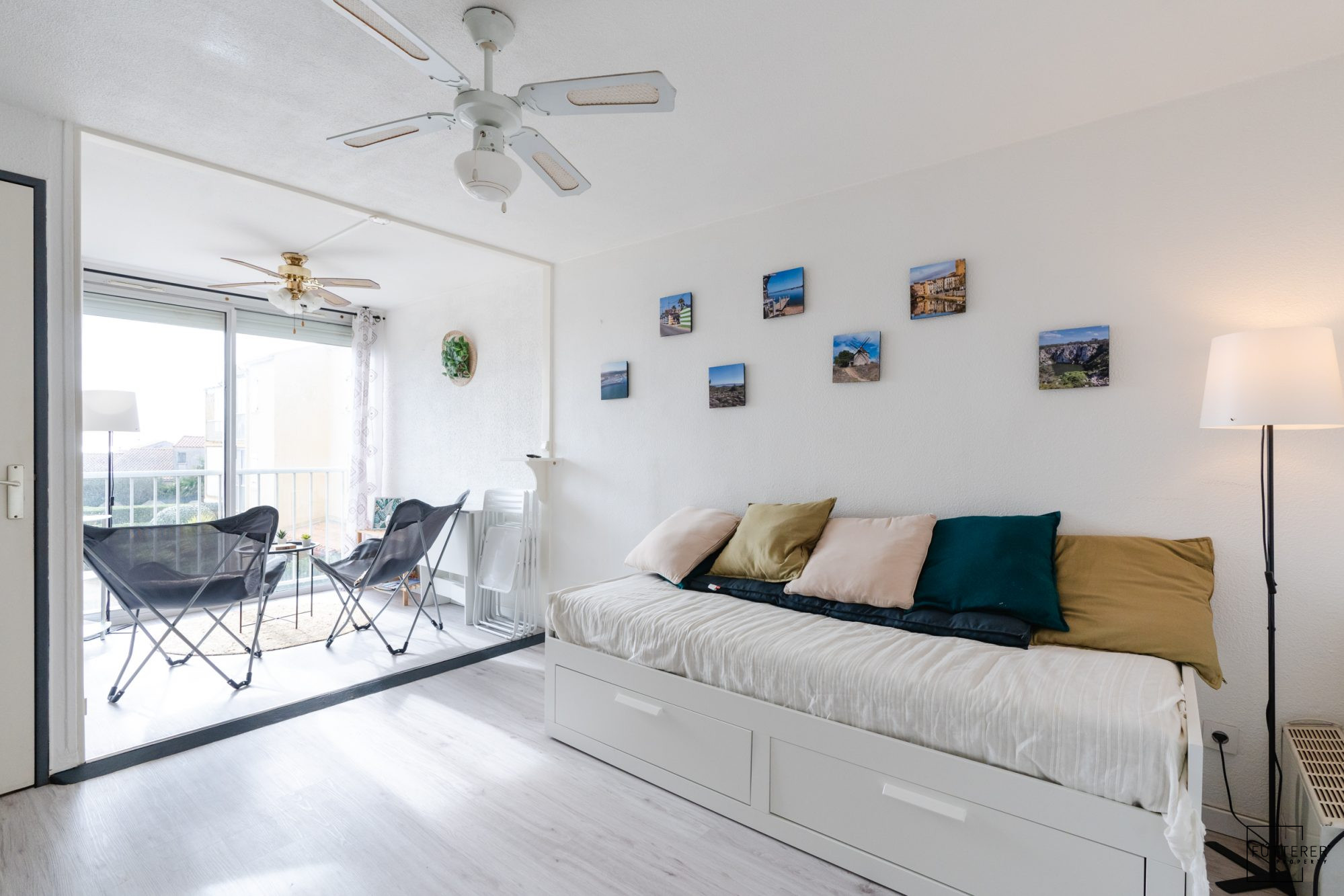 Fütterer Property vous présente à ST PIERRE LA MER: Studio cabine meublé en location longue durée.Situé sur les Hauteurs de St-Pierre-La-Mer, au 1er étage d'une résidence avec piscine collecti