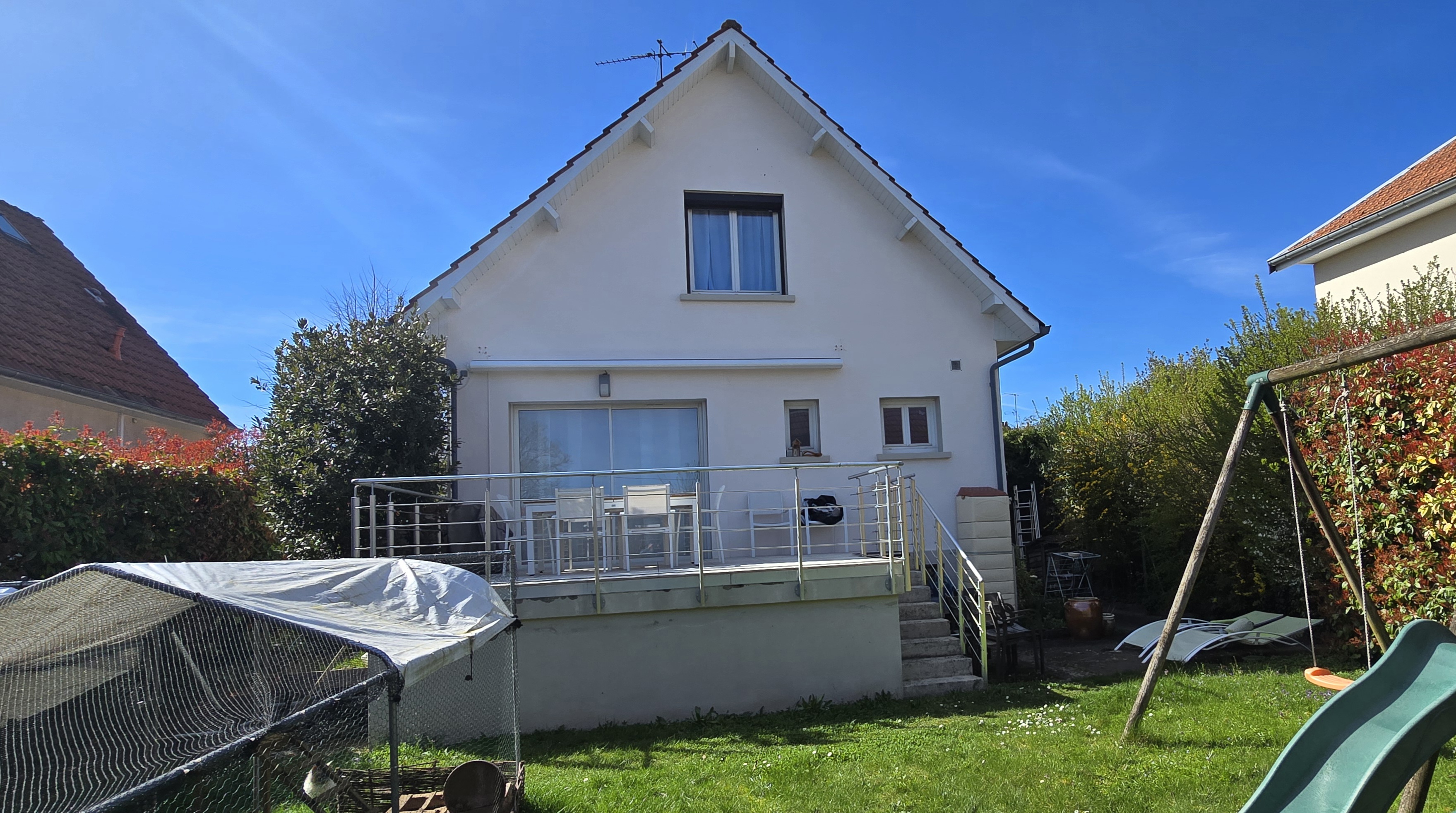 Maison récente en colombages d'une surface de 183m2 comprenant : rdc : entrée, cuisine ouverte sur le séjour, véranda, 2 chambre, salle de bain, wc à l'étage : 4 chambres, salle de bain, wc g