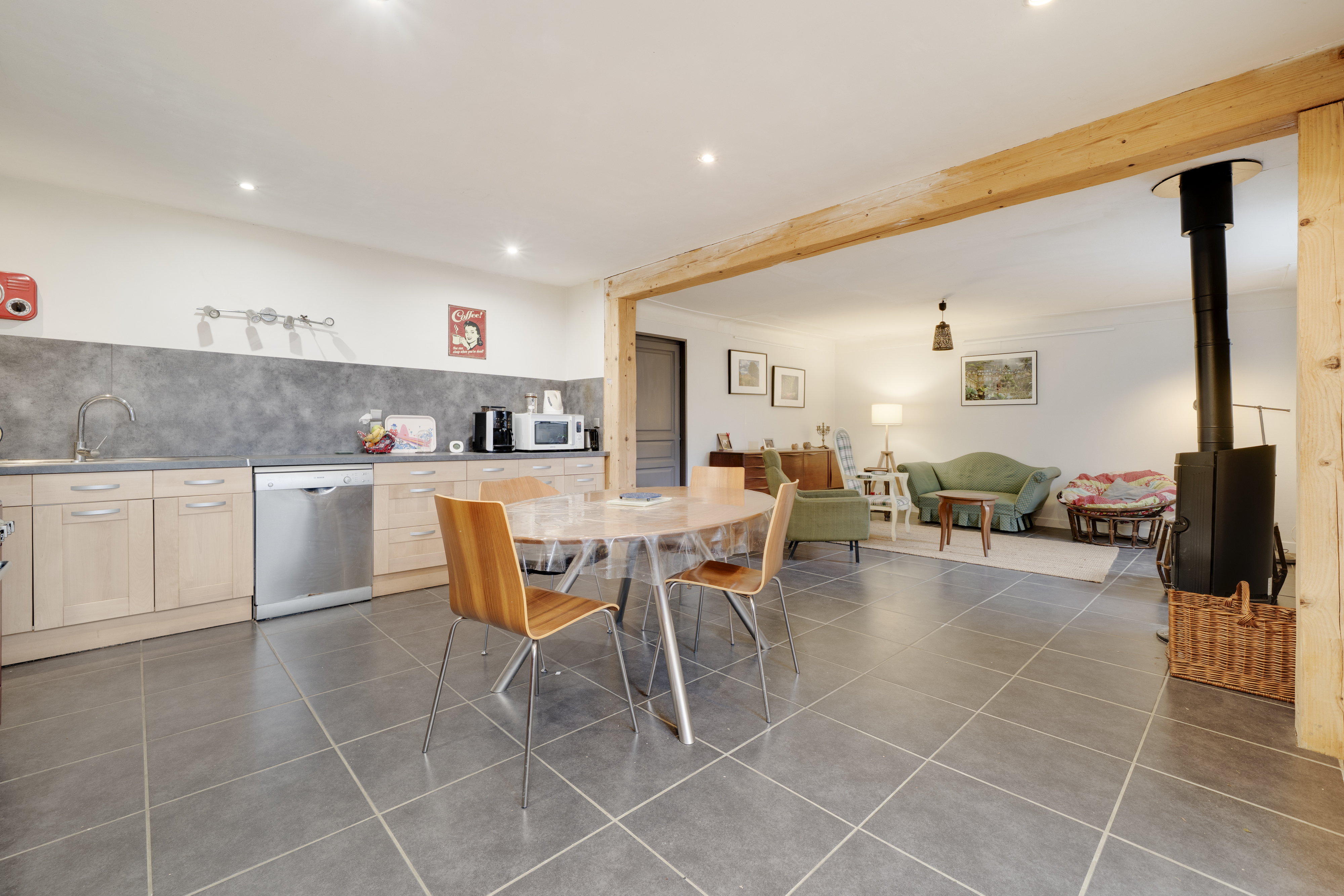 Grand appartement très lumineux en copropriété sans charges de 130m2 habitables (120m2 Loi Carrez) au 1er étage d'une maison individuelle et une partie du rez-de-chaussée comprenant :