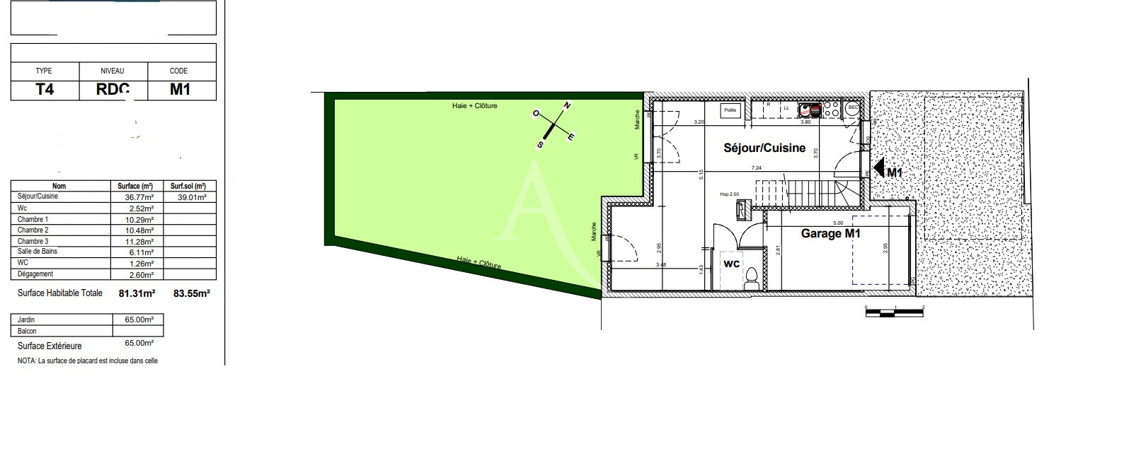 Située idéalement au coeur du quartier prisé du Landreau à Nantes, cette toute nouvelle résidence se compose de 42 appartements et 5 maisons qui séduiront par leur architecture sobre et élégante, s'intégrant harmonieusement dans un environnement principalement pavillonnaire. Une place prépondérante est accordée aux espaces verts, créant une atmosphère de jardin en plein coeur de la ville au sein de la résidence. De nombreux arbres seront plantés, rappelant le caractère arboré distinctif du quartier. L'arrêt de tramway du Landreau est accessible en seulement 5 minutes à pied, vous permettant de rejoindre le centre-ville de Nantes en 20 minutes ou les commerces du quartier en moins de 10 minutes. A moins que vous ne préfériez vous promener au sein du Parc du Grand Blotereau, situé à 5 minutes à pied... A VENDRE : Maison de type T4 de 81,31 m² avec garage. Elle se compose d'un séjour- cuisine spacieux de 36,77 m² donnant sur un jardin privatif de 65 m², trois chambres à l'étage, d'une superficie allant de 10,29 m² à 11,28 m² (possibilité d'une chambre au rez-de-chaussée), une salle de bains, une salle d'eau et deux WC séparés. Un garage attenant à la maison complète cet ensemble. Label Energie RT2012 Prix: 395 000 euros TTC (+ frais notaire réduits 2.5%) Prix direct promoteur REF: 31631-ClosM1 "Les informations sur les risques auxquels ce bien est exposé sont disponibles sur le site Géorisques : www.georisques.gouv.fr" Copropriété de 47 lots - dont 47 lots habitation.(Pas de procédure en cours).