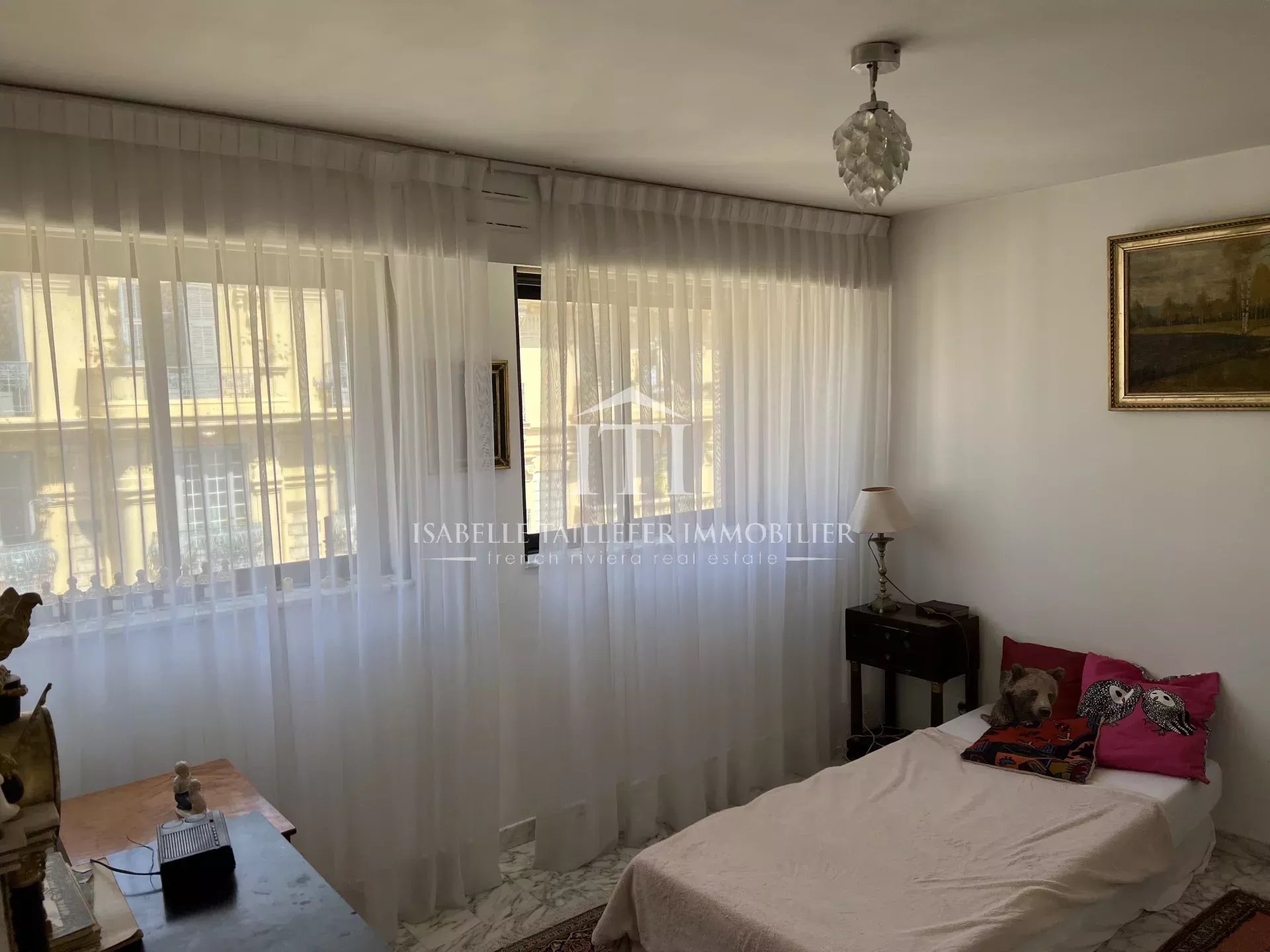SOUS OFFRE NICE CENTRE - PRÈS DU CARRÉ D'OR / DUBOUCHAGE RÉSIDENTIEL - en exclusivité - Résidence récente - Vue dégagée - 3 pièces 80 m² – 2 Terrasses N/S – Garage – Ascenseur - Jardins Au cœur de Nice résidentiel, près des commerces, DU TRAMWAY Station Durandy, magnifique immeuble des années 90 avec son jardin fleuri, son ascenseur et ses garages en sous-sol. Sarl I.T.I. vous propose à la vente, un beau 3 pièces, en étage élevé avec une vue dominante sur la ville vers le sud-ouest et le sud-est. Rare à la vente. Distribué en 3 pièces, l’appartement est lumineux et traversant, avec son séjour s’ouvrant sur la terrasse sud. Au nord, face au séjour, la cuisine s’ouvre sur un très long balcon avec des rangements extérieurs. Un couloir distribue au nord les chambres aménagées avec des placards, la salle d'eau avec wc et la salle de bain avec wc, Les garages en sous-sol sont "avec accès direct par ascenseur". De jolies prestations sont au rendez-vous : Sols en marbre, double vitrage, baie vitrée à galandage dans le séjour, climatisation réversible. Immeuble sécurisé, accès pour personnes à mobilité réduite. Au calme, en retrait, à proximité des commerces et des écoles. Le quartier est très résidentiel et commerçant. Tout à pied !