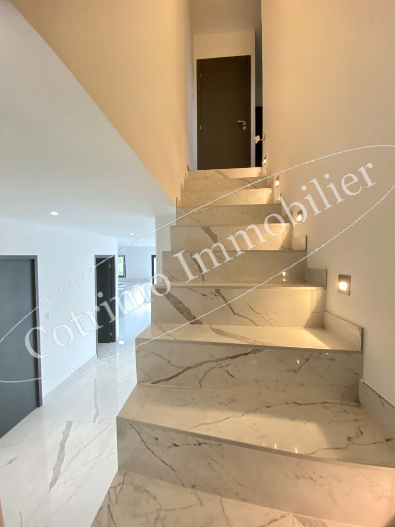 EXCLUSIVITÉ L'agence immobilière Bmi COTRIMO vous propose à SAINT-PRIEST 69800 secteur résidentiel une villa récente contemporaine prête à vivre aux prestations de haut standing en classement DPE en A sur deux niveaux offrant un agréable confort de vie d'une surface de 143m² habitables avec une grande suite parentale au rez de chaussée adaptée aux PMR le tout sur une parcelle de terrain de 698m² environ clos avec piscine (revêtement à poser) et pool house et garage attenant. Située au calme, villa lumineuse avec entrée, très bel espace de vie de 50m² avec sa cuisine US entièrement équipée ouvrant sur terrasse avec vue sur jardin et piscine. 1 suite parentale de 33m² avec dressing et salle d'eau, Wc spécifiquement adaptée aux PMR (personnes à mobilité réduite) ou en situation de handicap locomoteur. Revêtements marbre aux sols ainsi que dans toutes les Sdbains et wc, domotique complète, plancher chauffant. Cuisine de très belle facture de marque Schmidt équipée haut de gamme (électroménagers dernières technologies - plaque de cuisson aspiration intégrée) Cellier, wc et accès au garage. A l'étage vous trouverez 2 belles chambres de 14m², 1salle d'eau, wc séparés. Toit Terrasse. Garage de 20m² carrelé et isolé avec porte sectionnelle motorisée, un coin buanderie est déjà prévu. Chauffage aux sols basse température via Pompe à chaleur. A l'extérieur, agréable jardin clos et arboré de 698m² avec terrasses. Piscine maçonnée, il ne reste qu'à poser le revêtement de votre choix. Poolhouse avec local technique (groupe de filtration) et coin cuisine séparé. Portail et portillon en aluminium. DPE en A avec 64 Kwh/m²/an Ges en A avec 2 Kg Co2/m²/an Estimation des coûts annuels : entre 750 euros /an et 1100 euros par an, prix moyens des énergies indexés sur les années 2021, 2022, 2023. Honoraires d'agence à charge vendeurs. Les informations sur les risques auxquels ce bien est exposé sont disponibles sur le site Géorisques : www.georisques.gouv.fr