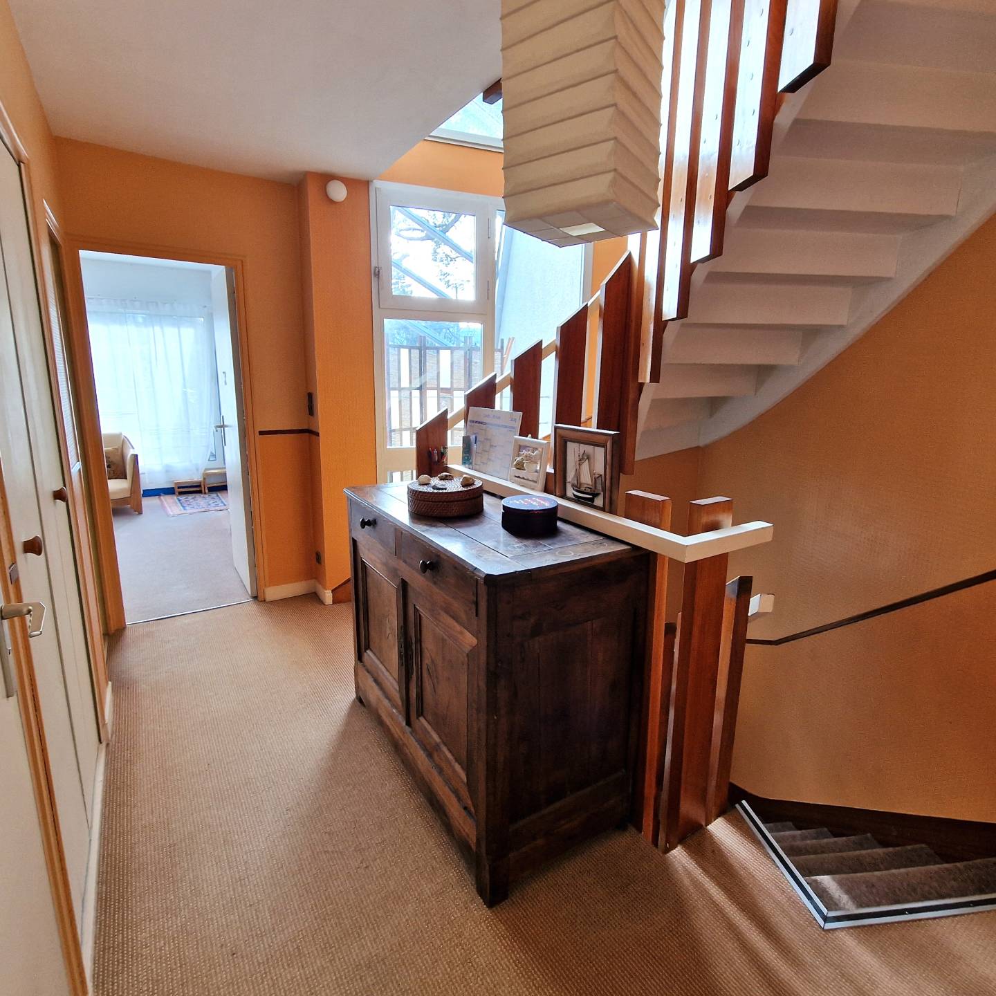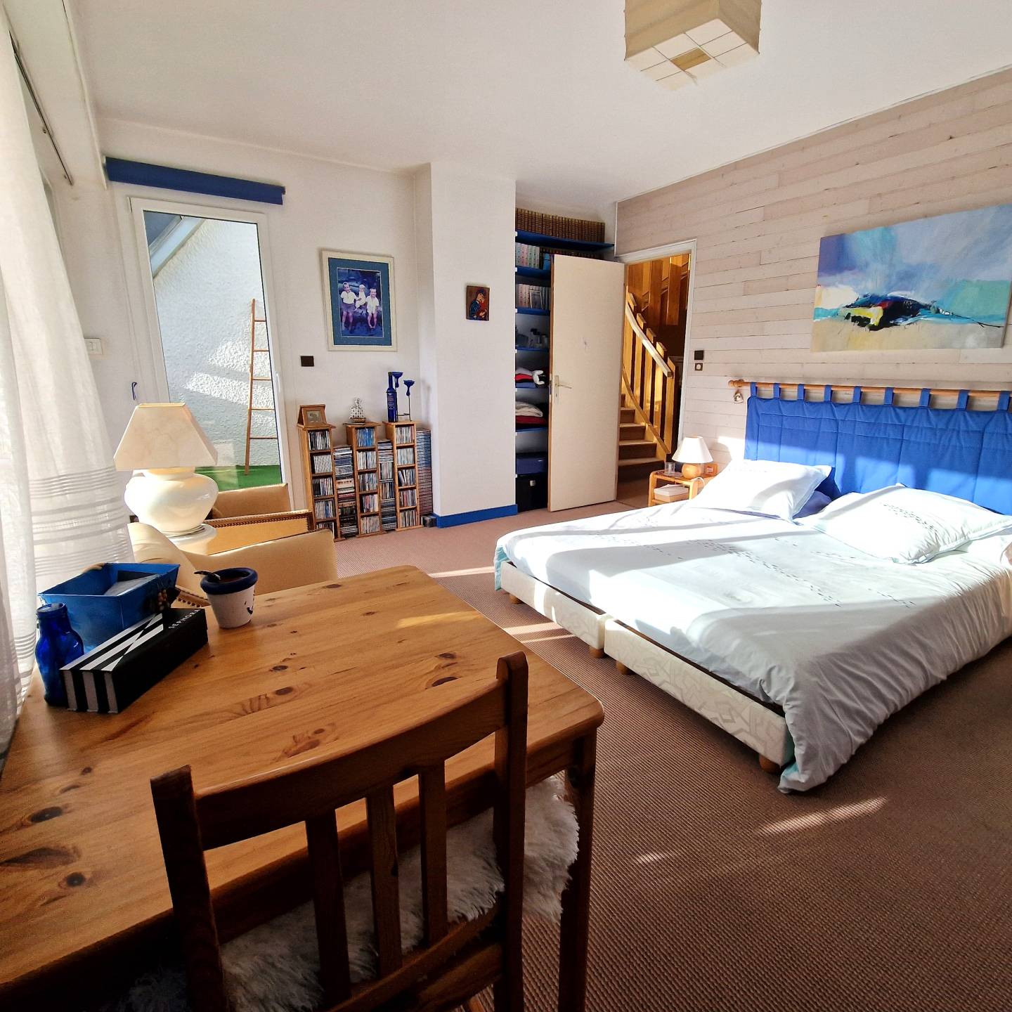 La Baule les Pins à 180 mètres de la plage et 500 mètres de l'avenue Lajarrige, dans une maison d'architecte de 1982 divisée en 3 lots, ce triplex de 134m² Carrez, vendu en NUE PROPRIÉTÉ est composé au RDJ, d'une entrée avec placard, d'un salon/séjour avec une cheminée, une terrasse et véranda coté Sud, une cuisine aménagée et équipée, un WC, et un jardin de 100m². A l'étage deux grandes chambres dont une avec terrasse et Solarium, une salle de bains, et un WC. Au dernier niveau deux petites chambres pour enfants, une mezzanine, une salle d'eau. Au sous-sol, 45 m² d'espace pour le sport. (surface totale au sol de l'habitation 234 m²) Chauffage électrique. Deux places de stationnement au pied de la maison. Taxe foncière 1.613 € dont 324 € de taxe ordures ménagères récupérables. Vente en NUE-PROPRIÉTÉ 623.700€ (HAI). Calculs sur un homme de 79 ans et une femme de 74 ans. Valeur vénale du bien 1.100.000 € Investissez pour l'avenir dans ce bien exceptionnel, sous les Pins et à deux pas de la plage, dans un cadre idyllique.
