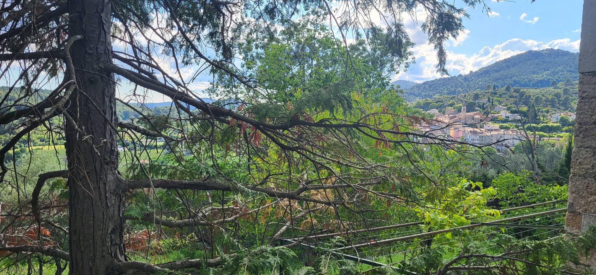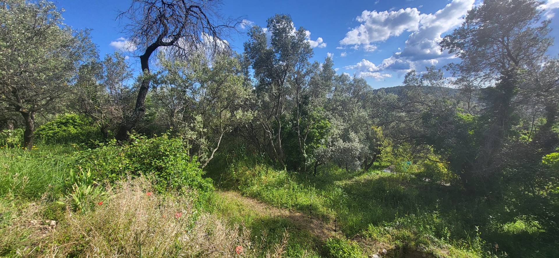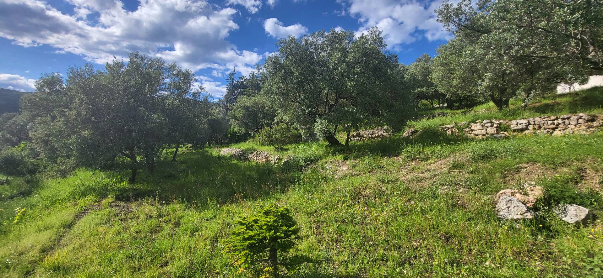 Exclusivité : A deux pas du village, magnifique terrain de 4300m² en larges restanques complantées d'oliviers centenaires, avec 2 sources. Vue panoramique exceptionnelle sur le village et les collines environnantes, raccordable au tout à l'égout avec possibilité de division parcellaire Sur le terrain est édifié une maison d'environ 52m² à rénover. Elle comprend : Cuisine avec coin repas, salle d'eau, toilette, petit séjour faisant actuellement office de chambre avec cheminée et balcon, en enfilade belle chambre principale. En rez-de-jardin : Cave, remise, garage. Le tout pouvant être agrandi. "Les informations sur les risques auxquels ce bien est exposé sont disponibles sur le site Géorisques www.georisques.gouv.fr".