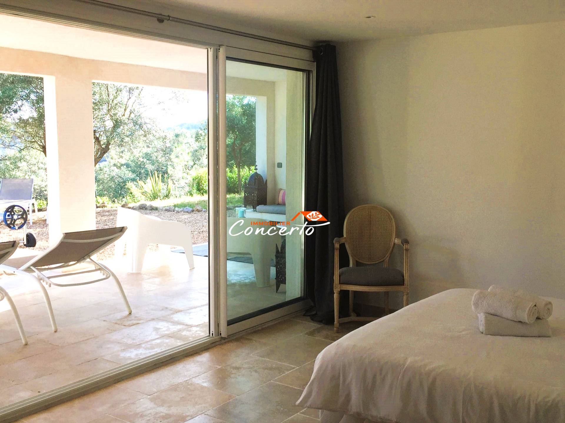 A vendre villa avec vue dominante à Callas. Dans un cadre idyllique, découvrez cette magnifique villa de 147m² idéalement située à quelques pas du village, offrant une vue imprenable et un cadre de vie exceptionnel. Elle est composée d'un spacieux salon-séjour avec poêle à bois, une cuisine aménagée et équipée donnant sur terrasse, un bureau, toilettes. A l'étage : 3 belles chambres, salle de bains, wc. En rez-de-jardin : une grande chambre indépendante avec sa salle d'eau, et terrasse, un coin atelier-rangement, plus une cave à vin avec système hygrométrique. Espace Piscine, avec coin douche, Garage attenant à la villa. Le tout sur superbe terrain paysagé de 1665m² Montant estimé des dépenses annuelles d’énergie pour un usage standard entre 860 € et 1 220 € (prix moyens des énergies indexés au 01/01/2021, abonnements compris). "Les informations sur les risques auxquels ce bien est exposé sont disponibles sur le site Géorisques www.georisques.gouv.fr".