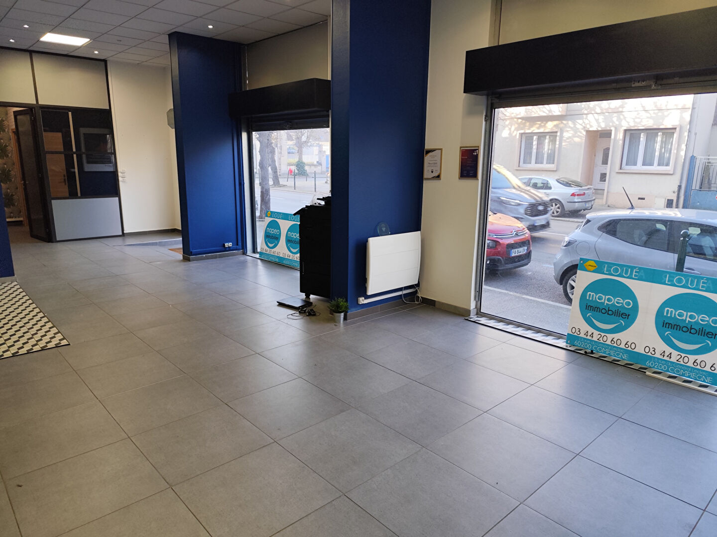 A louer Compiègne proche de la gare dans une rue commerçante, local commercial ou d'activité, d'une surface de 105m² avec une grande vitrine sur une rue passante. Il se compose d'une entrée sur un bel espace de vente, quatres bureaux, sanitaire, réserve, réseau informatique câblé pour activités tertiaires, grilles de sécurité motorisés, intérieur en très bon état. Pas de restauration avec cuisson. Disponible de suite, 1350 eurosht provision de charges 250 euros comprenant l'eau froide et la taxe foncière. Pour plus de renseignements contacter Matthieu mapeo immobilier 0648303545