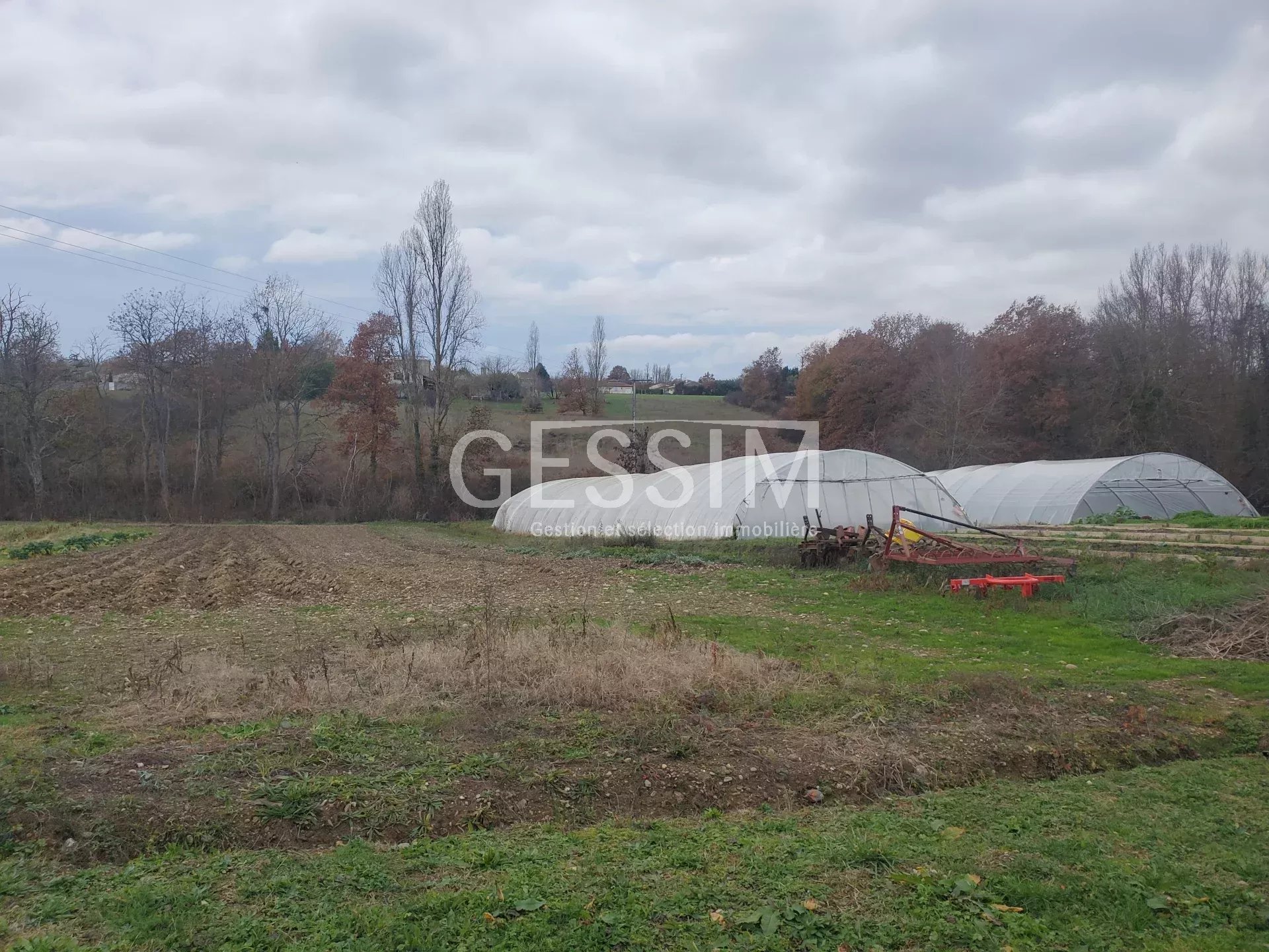 Rieumes; Non loin du centre du village, sur une parcelle de terres agricoles ( serres, chassis...)de plus de 1 hectares clôturé, grand entrepôt fermé prolongé par une habitation. La maison de 135 m² habitable de plain pied se compose d'une grande et lumineuse pièce de vie, cuisine US aménagée et équipée; 3 chambres, salle d'eau dressing. L'entrepôt d'une hauteur de accueil une chambre froide et une cabine de peinture. Vendu avec matériel de maraichage.