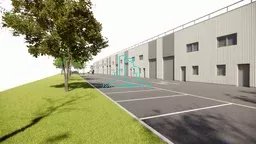 Entrepôt de 150m² neuf livré en 2025 dans un Parc clos de 11 Ateliers et 150 m2 au sol et 6 m de hauteur intérieur. 3 places de parking par lot dont une avec fourreau en attente IRVE. Lot plus grand possible en multiple de 150 m2. Livrés avec porte sectionnelle électrique de 3x4m de hauteur intérieure. Bardage double peau, menuiserie aluminium et acier, portail entrée et sortie motorisé avec horloge, bouclage et digicode, dalle quartz 2T/m2, équipement skydom, compteur linky, éclairage led, prises électriques, grille de protection sur fenêtre du bas. Aire de retournement PL pour livraison.