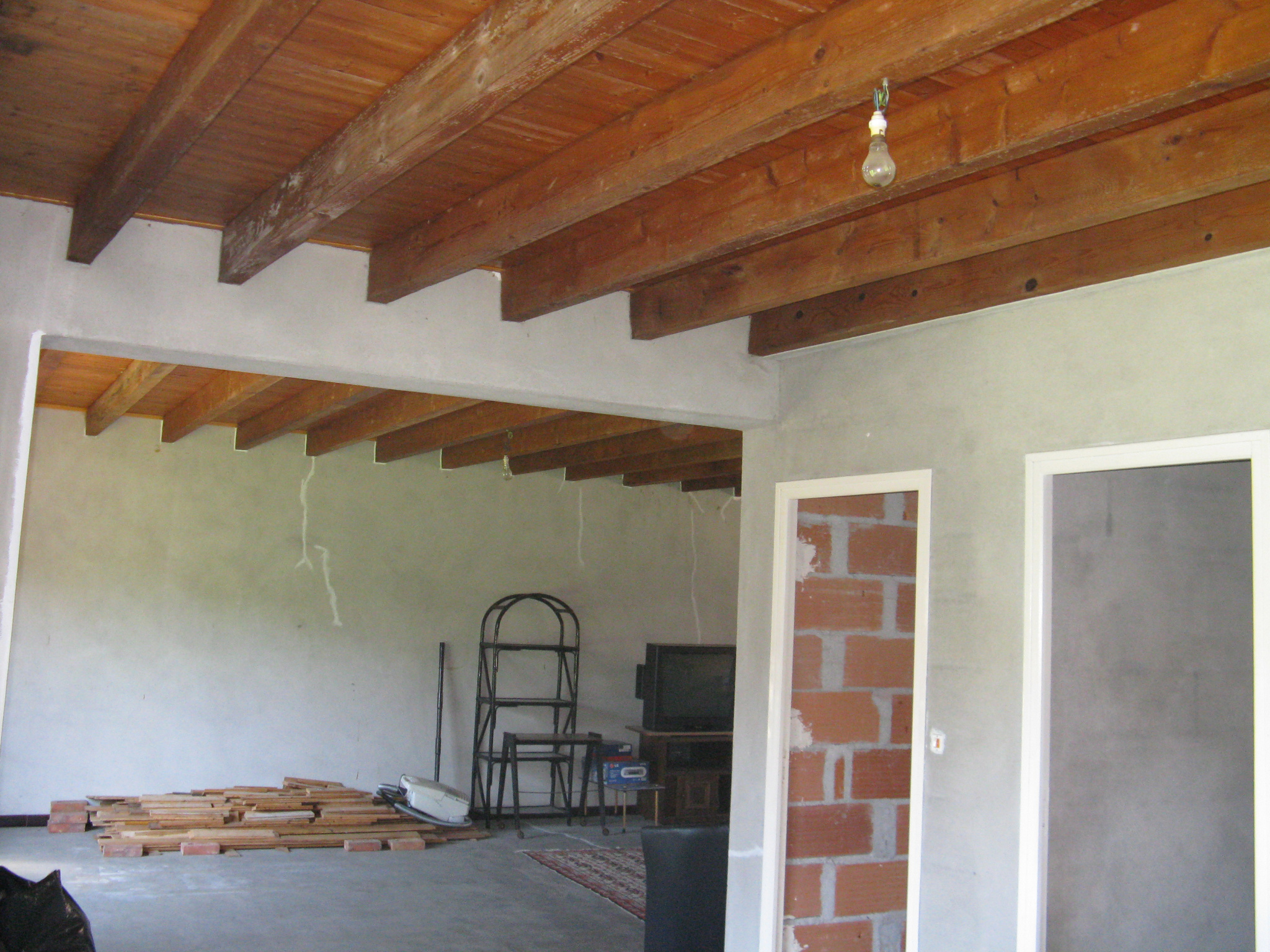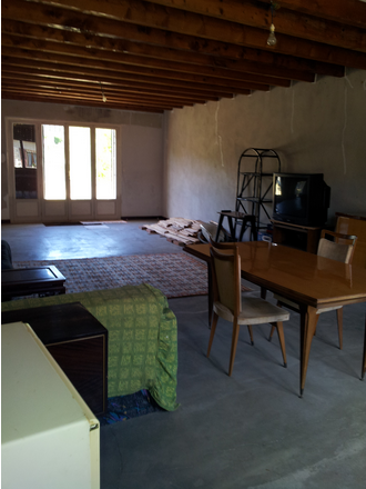 agréable maison de campagne à mettre en conformité , dotée d'un grand séjour-salon ( 48 m2 ) pour 90 m2 habitables en rez de chaussée . A l'étage une chambre et