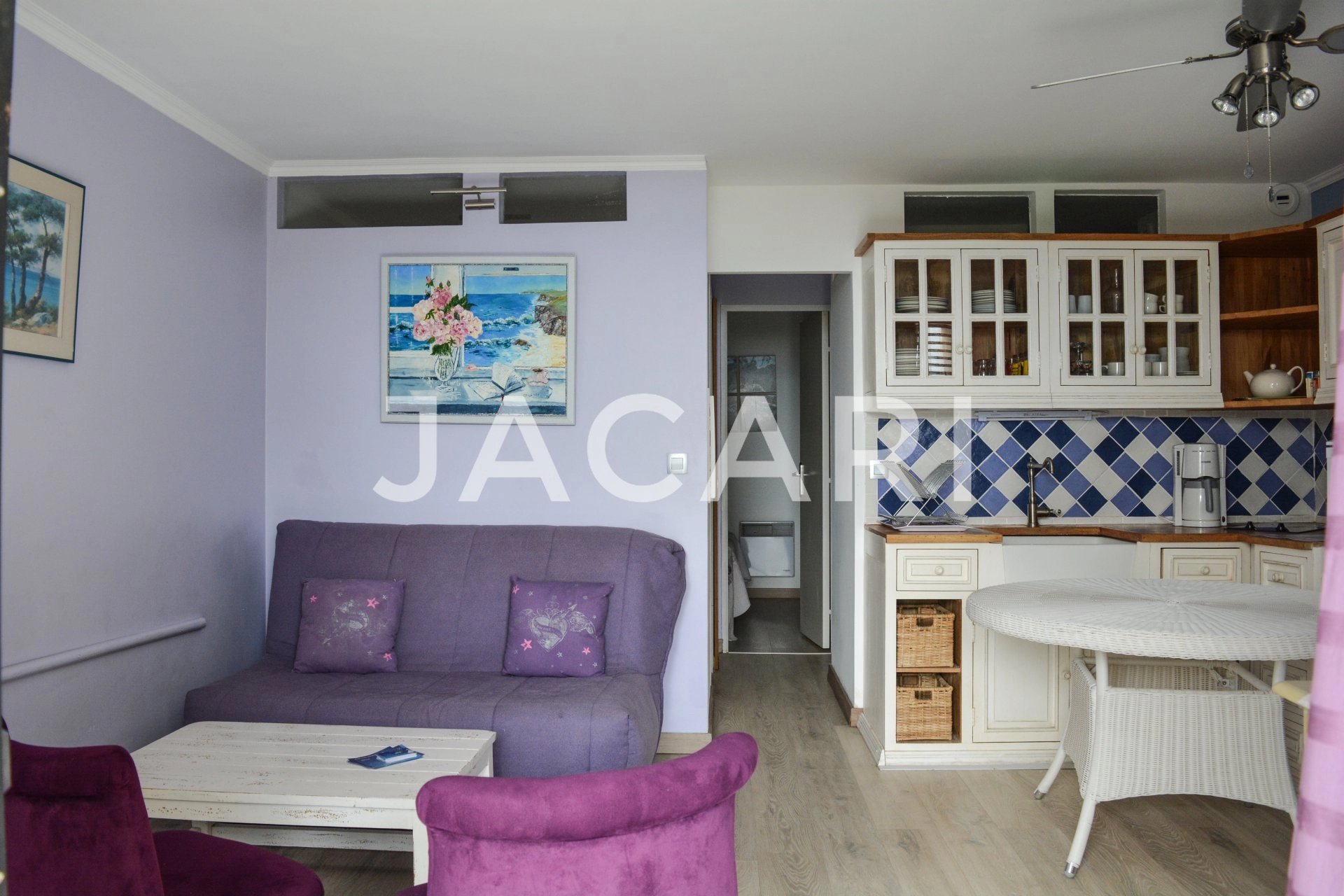 Au coeur du quartier résidentiel de la Croix des Gardes, à quelques minutes du bord de mer et au sein d'un domaine de 10 hectares avec piscine, tennis, gardien, terrain de boule et parc arboré. L'agence Jacari vous propose cet appartement de type 3 pièces en rez-de-jardin, composé d'une cuisine ouverte sur un séjour donnant sur une terrasse exposée Sud avec un jardin en prolongement offrant une jolie vue dégagée sur la mer. Deux chambres, une salle de bains et salle de douche avec toilette, ainsi que de nombreux rangements dans l'appartement. Parking extérieur.