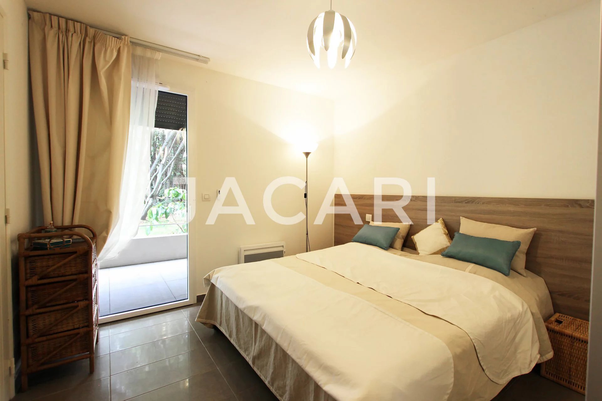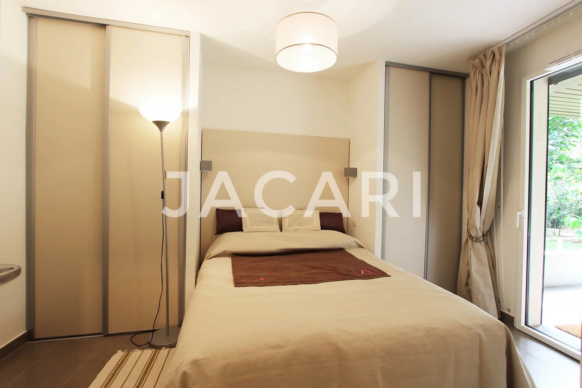Au sein d'un quartier résidentiel très recherché et dans une résidence récente de standing au coeur d'un parc, l'agence Jacari vous propose cet appartement en rez-de-jardin composé d'un vaste séjour ouvert sur une cuisine US équipée le tout donnant sur une première terrasse exposée Sud-Ouest. Deux chambres offrant sur la seconde terrasse avec pour chacune une salle d'eaux. Résidence sécurisée. Box en sous-sol.