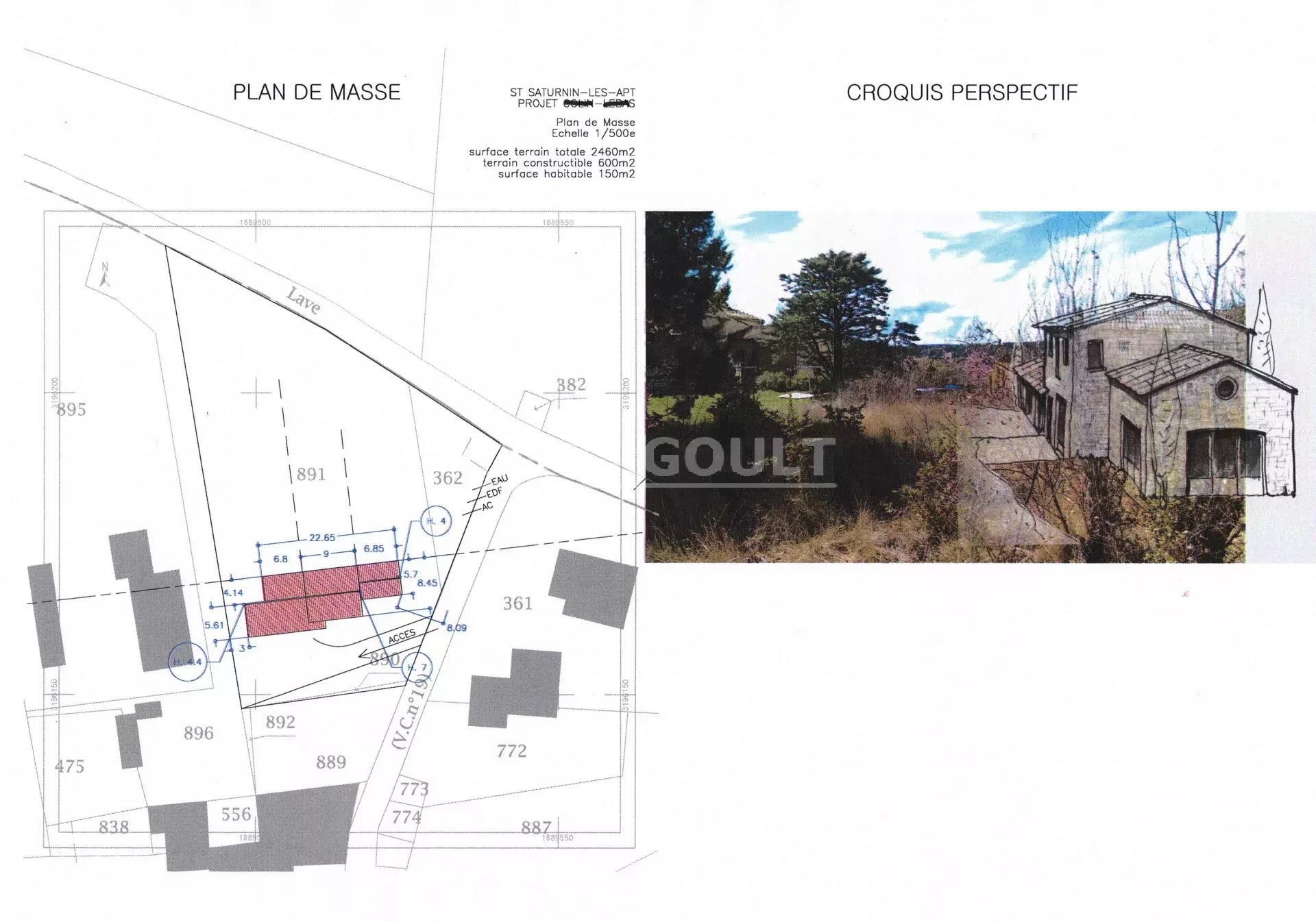 À 50mn de l’autoroute A7, à 1h15 de la gare TGV d’Avignon et de l’aéroport international Marseille-Provence. En bordure de hameau, à 5mn du village de St Saturnin les Apt et de ses commerces, dans un bel environnement, terrain constructible de 2460m2 bénéficiant d’un permis de construire pour une maison d’une surface habitable de 150m2 plus terrasse couverte de 24m2 et auvent voiture de 50m2. Eau de ville, électricité et tout à l’égout en bordure du terrain. Produit rare dans le Luberon!!