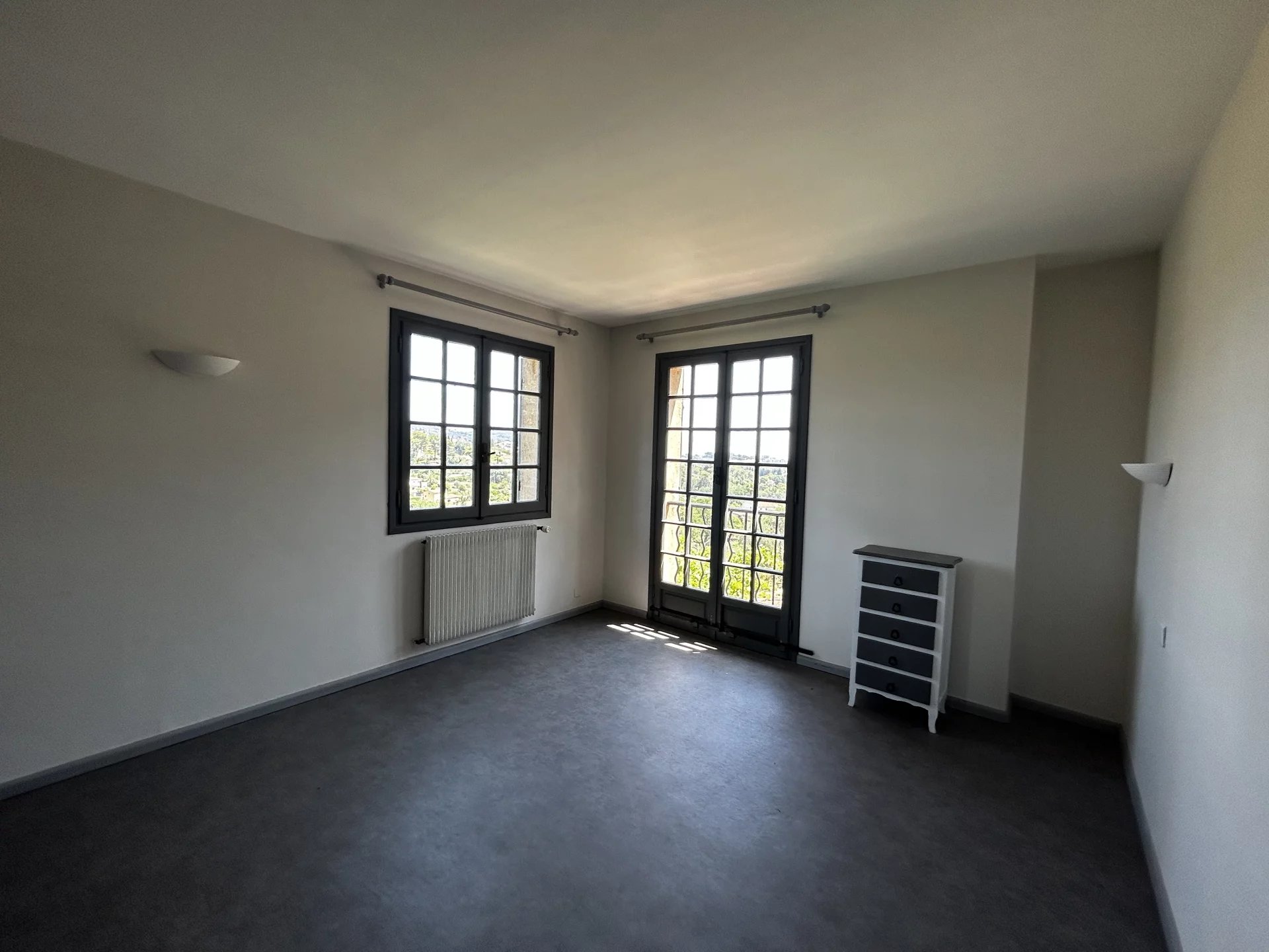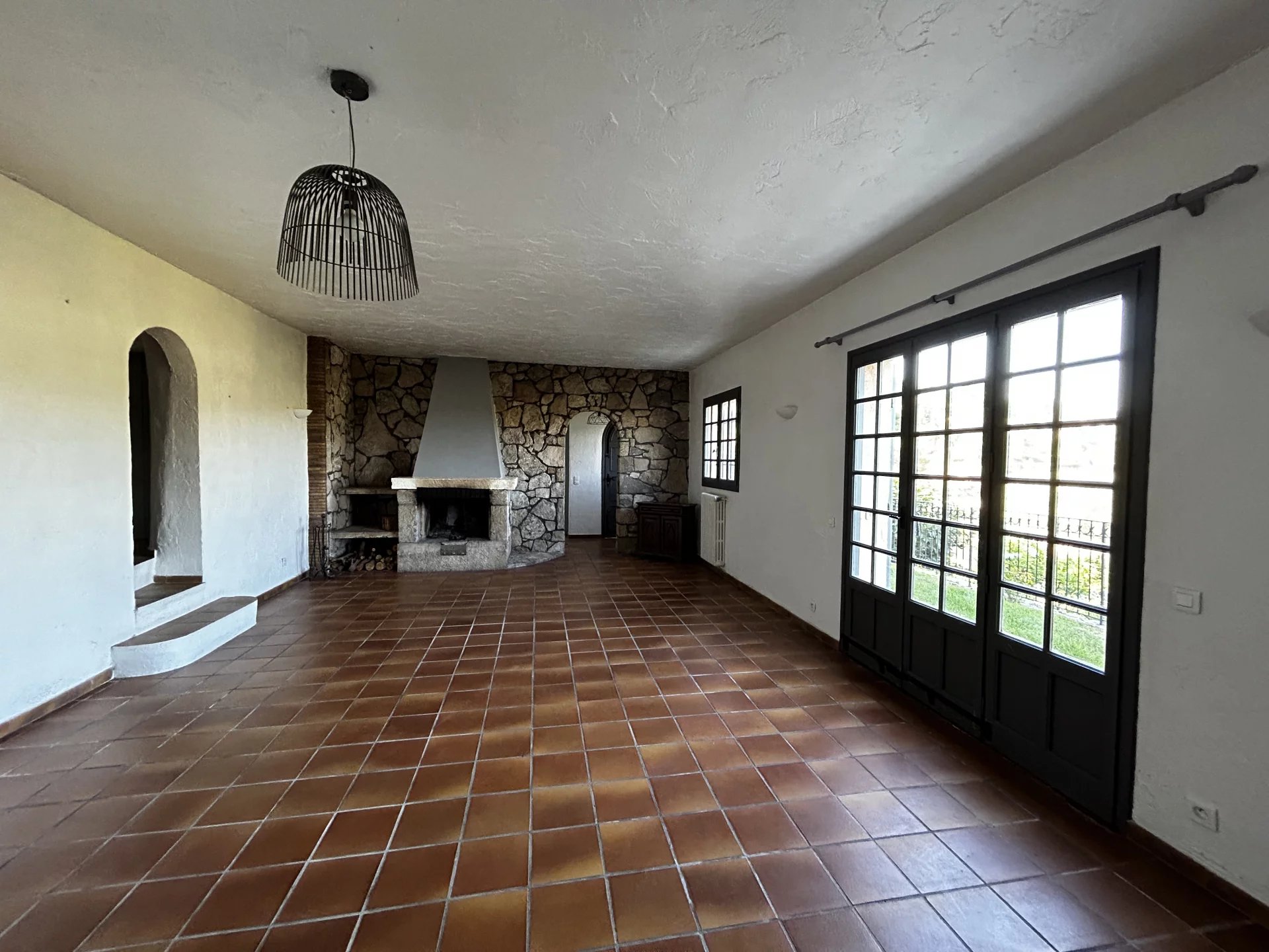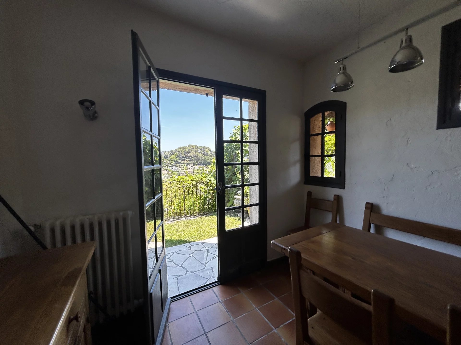 Bel Appartement en Rez de Jardin - avec terrain Dans une maison en pierre, au calme absolu, vue dégagée et aucun vis à vis. A 2 minutes du centre de Mougins avec tous ces commerces. Appartement de charme 6 pièces, sur 2 niveaux. Au Rez de jardin : entrée, une chambre de plain-pied avec salle de douche et toilette, un grand salon avec cheminée, cuisine semi-ouverte équipée, le tout donnant sur un beau jardin avec vue dégagée sur les collines. Un coin terrasse avec cuisine extérieure. Un terrain d'environ 600m2 en plus. A l'étage, 3 belles chambres une salle de bain et au niveau supérieur une mezzanine avec terrasse privée. A cela s'ajoute des places de stationnement en extérieur, un garage couvert, un atelier, une cave. Un grand studio indépendant peut en complément du prix être inclus. Un joli bien agréable, en bon état à visiter