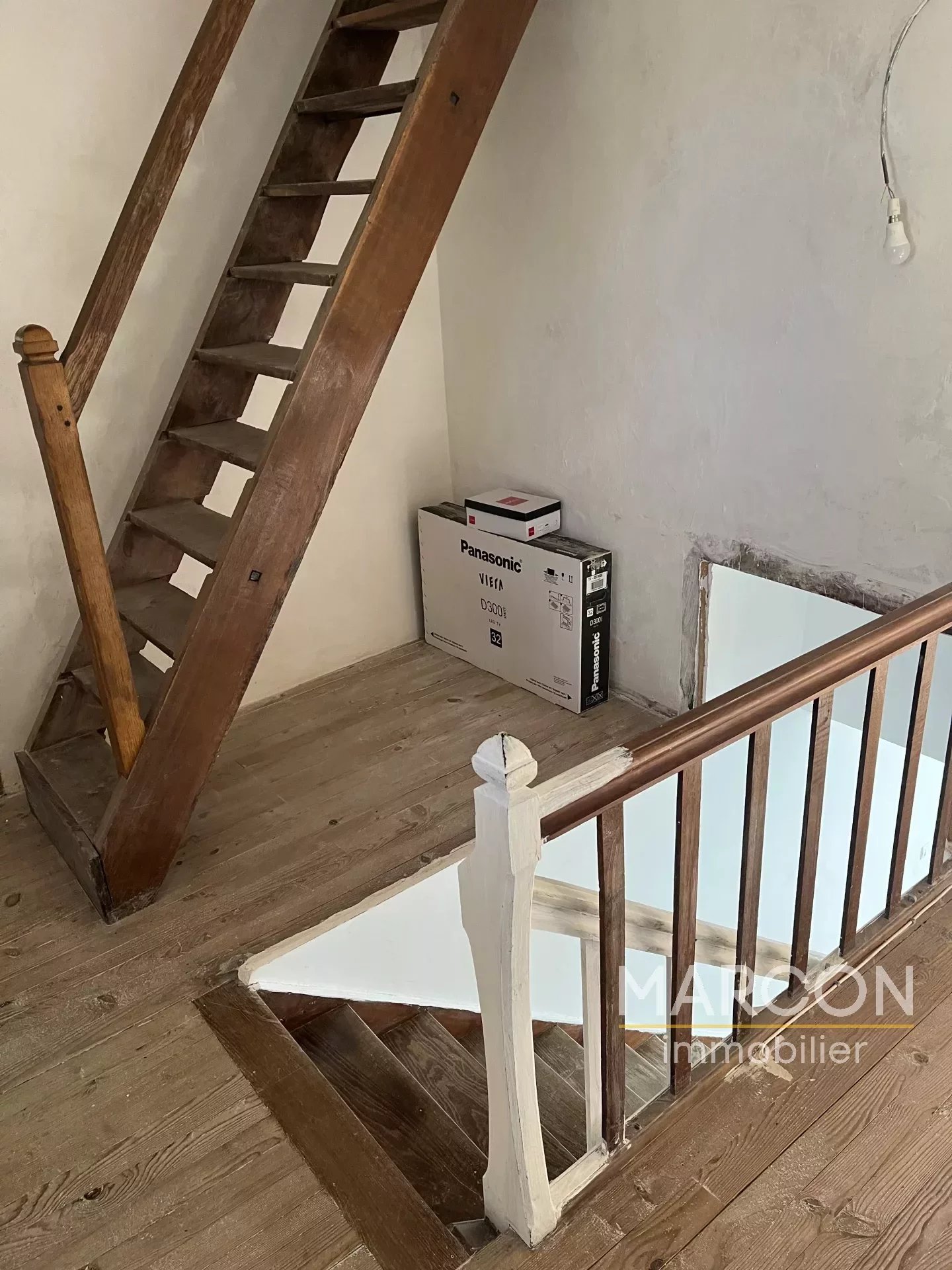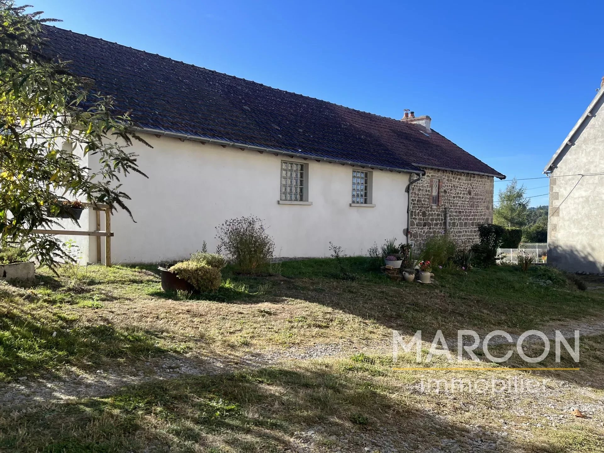 VENTE MAISON SECTEUR FLAYAT - MARCON IMMOBILIER - Réf 88156 Une maison comprenant en rez-de-chaussée : cuisine/séjour (cheminée), salle d'eau-wc, cellier. 1er étage : Palier, deux chambres, une grande pièce à aménager. Pas de système de chauffage. Grenier au-dessus. Garage. Remise. Le tout sur 1970 m² de terrain. Prix : 88 000 € (honoraires d'agence inclus à la charge de l'acquéreur de 10 % TTC). (Prix : 80 000 € hors honoraires). Réseau de 3 agences en CREUSE : Aubusson, Guéret et La Souterraine. 05-55-66-20-37