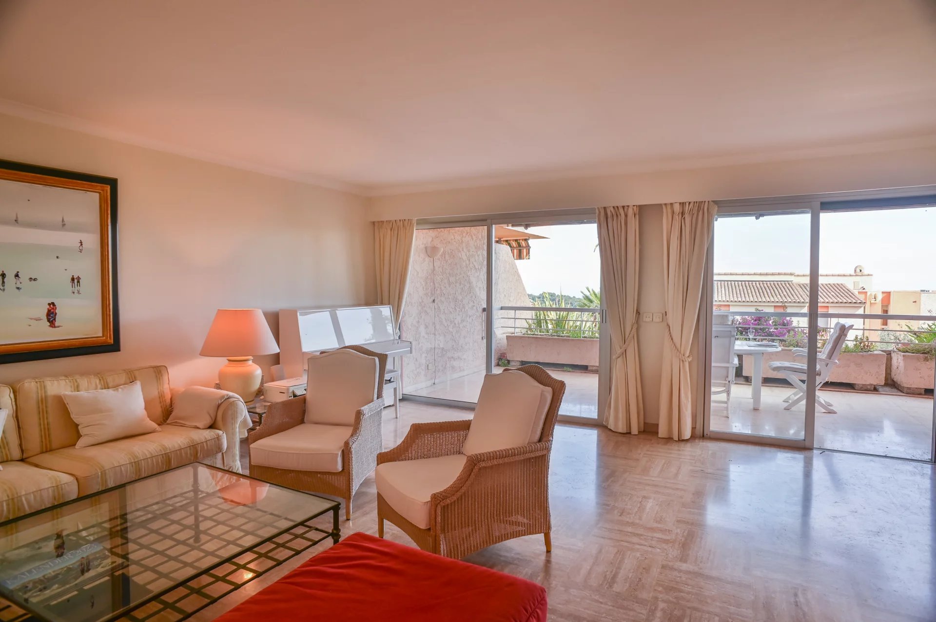 VENDU - Exclusivité - Proche du centre-ville de Vence, ce grand 3 pièces au Rez de chaussée surélevé d'un petit immeuble se situe dans une Résidence fermée, avec piscine. Belle vue dégagée et aperçu mer. Aucun vis-à-vis et au calme absolu L'appartement, traversant et très lumineux, bénéficie d'une belle terrasse de 29m² desservant le grand séjour de 32m² et la cuisine équipée de 11m². L'accès à cette terrasse se fait par 3 baies vitrées coulissantes. L'espace nuit est composé de 2 chambres donnant sur un balcon d'angle, d'une salle de bains, d'un toilette invités et d'un dressing. Climatisation dans les chambres. La piscine de la résidence est implantée au milieu d'espaces verts parfaitement entretenus. Une place de parking en sous sol et une cave complètent ce bien. Bien en copropriété comprenant 89 lots principaux. Quote-part des charges 363 euros/mois, eau chaude et froide comprises. Aucune procédure en cours connue. Les informations sur les risques auxquels ce bien est exposé sont disponibles sur le site Géorisques : georisques.gouv.fr *** VENCE *** Située sur une colline dans l'arrière-pays à l'ouest de Nice, à environ 10 km de la côte, la charmante ville de Vence est recherchée comme point de départ de diverses expériences nature en plus des expériences culturelles et gastronomiques. La "rue gastronomique" de Vence a un caractère particulier et une grande qualité. Comme tant d'autres villes de la Côte d'Azur, Vence possède également une partie ancienne bien conservée du Moyen Âge avec des ruelles et des rues étroites. Les nombreux trésors et monuments historiques de Vence valent le détour. Vous y trouverez un château-tour du XIIIème siècle et de nombreuses belles fontaines dont la plus célèbre, la Fontaine du Peyra, est classée "monument historique". Vence abrite par ailleurs la plus petite cathédrale de France, construite sur un ancien temple roman, et une église Carolingienne où vous trouverez entre autres, statues en bois et mosaïques de Marc Chagall, tandis qu'Henri Matisse décorait la plus célèbre des nombreuses chapelles de Vence ; la belle et très particulière Chapelle de la Roseraie. Le musée de la Fondation Maegt situé dans la commune voisine de Saint Paul de Vence attire les amateurs d'art du monde entier.