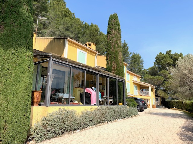 Bon je vais vous en dire un peu plus... Cette grande propriété de plus de 300 m2 sur une parcelle de 4705 m2 dont une partie en pinède, est composée de deux habitations communicantes si vous le souhaitez ou accessibles indépendamment .