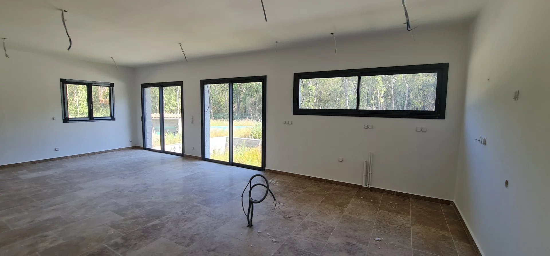 Très belle villa de standing de 148 m2 habitable, édifiée sur une parcelle de 2380 m2 + permis purgé pour une maison de 80 m2. 3 chambres, 2 SD, 3 wc. Garage, Piscine PVC armé 3D 13x3,50 + plage , pompe à chaleur, dallage. Terrasse bois, portail électrique, secteur très calme Vue sur forêt non constructible.