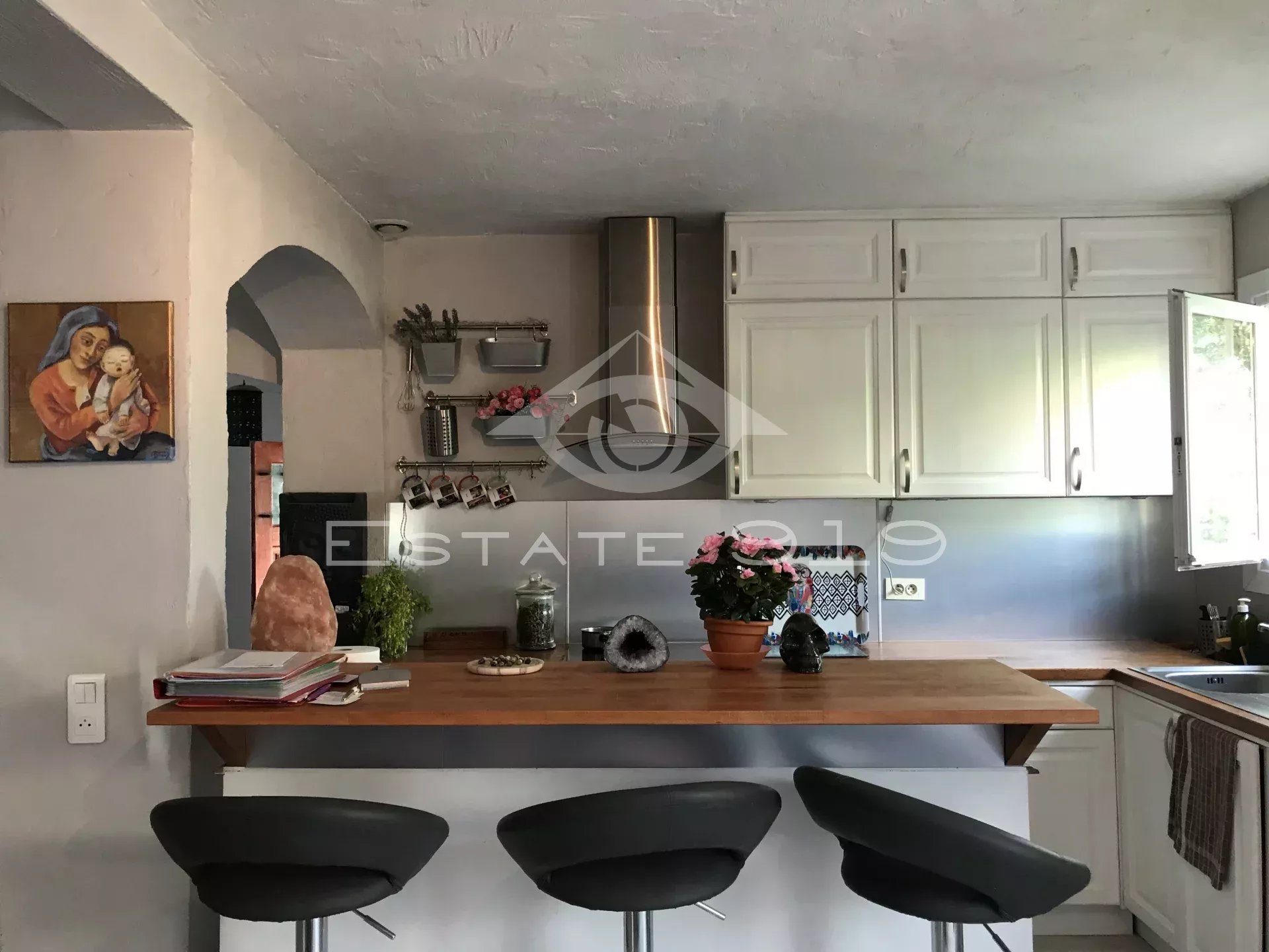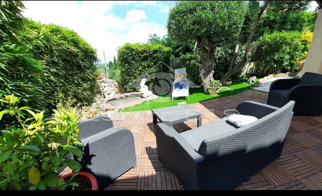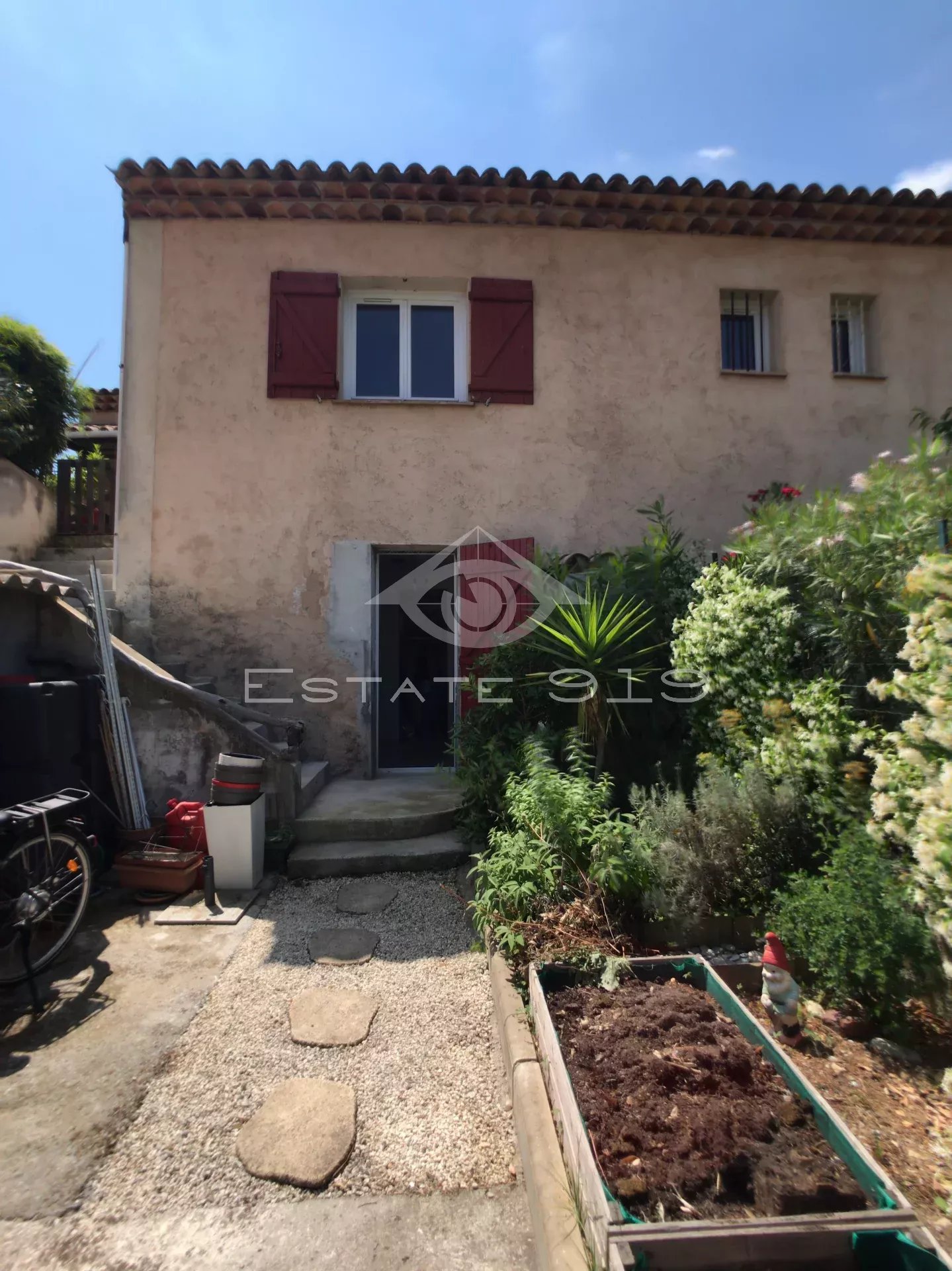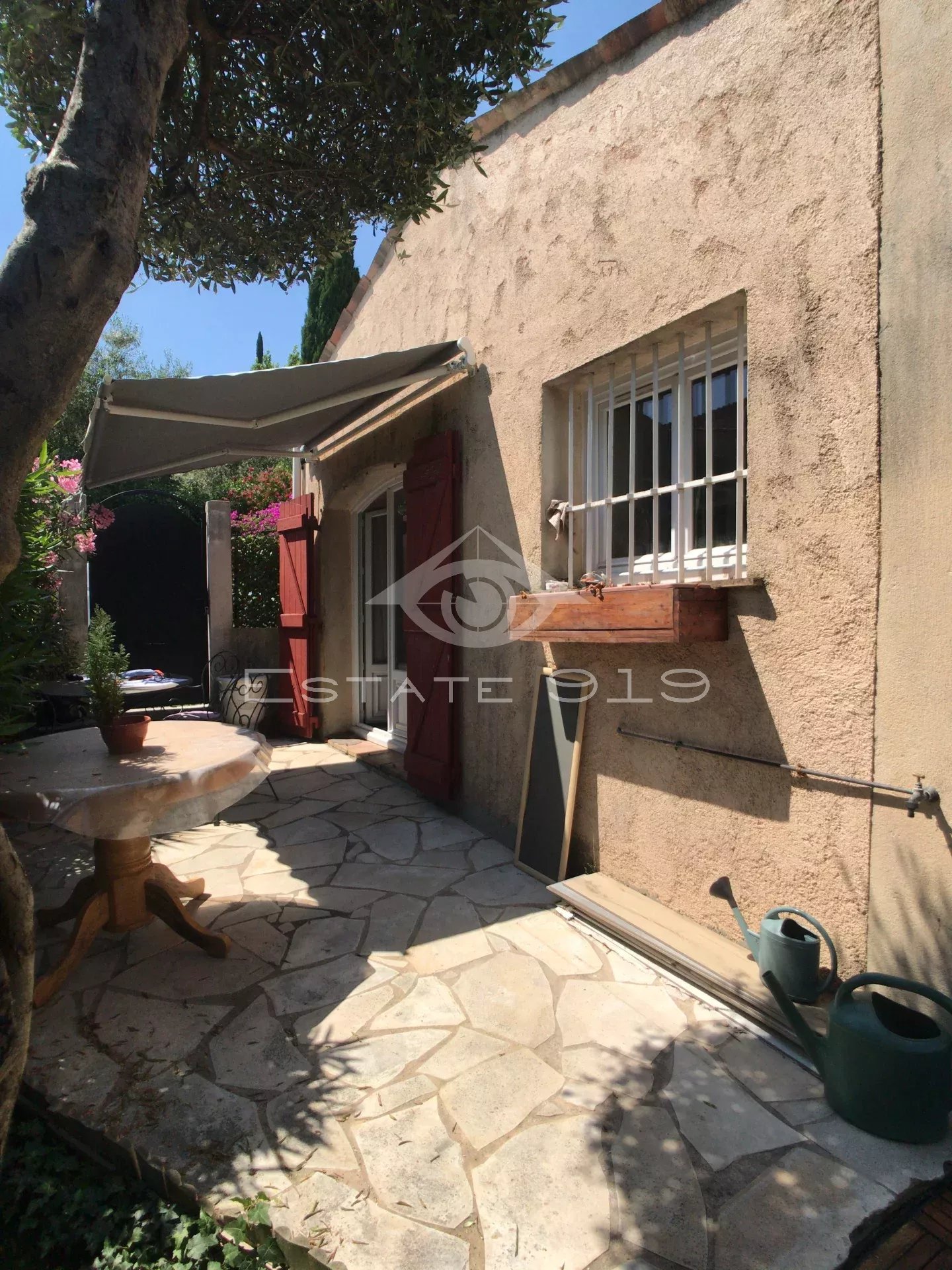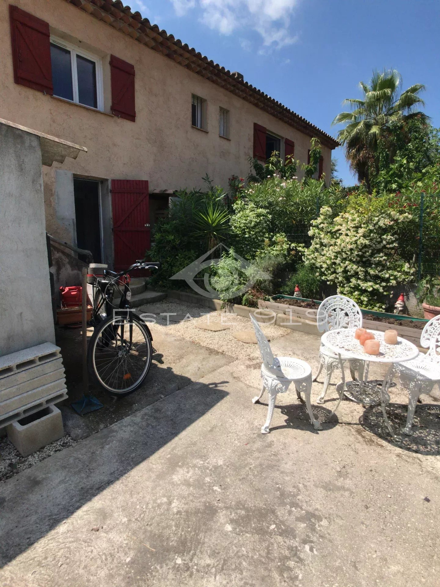SOUS COMPROMIS ! CO-EXCLUSIVITE Rare sur le marché. Dans une impasse, au calme avec vue dégagée sur les collines charmante partie de mas d'environ 90 m2, en bon état, comprenant de plain-pied une très belle surface pour un séjour/salle à manger avec cuisine américaine, (41m2) poêle à bois récent, 1 chambre en suite avec dressing et salle de bain. WC invité. Combles accessibles. En rez de jardin, 1 chambre en suite avec salle de douches/WC et une cave/buanderie, ainsi qu'une partie privative avec portail. Terrasse/jardin complanté d'environ 150m2 avec bassin où il fait bon se détendre. Abri jardin en dur.. 3 parkings privatifs. Expo S/E. Entièrement clos. Tout à l'égout. A voir vite ! Honoraires charge vendeur. Pour tous renseignements contactez votre interlocuteur privilégié Martine SCHELLINO - Téléphone : +33660958115 ou par mail info@martine-schellino.com