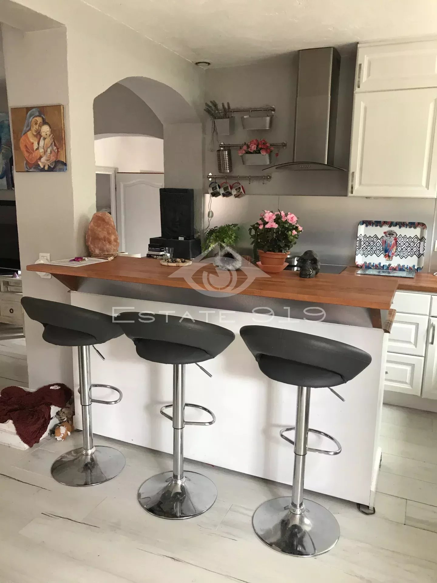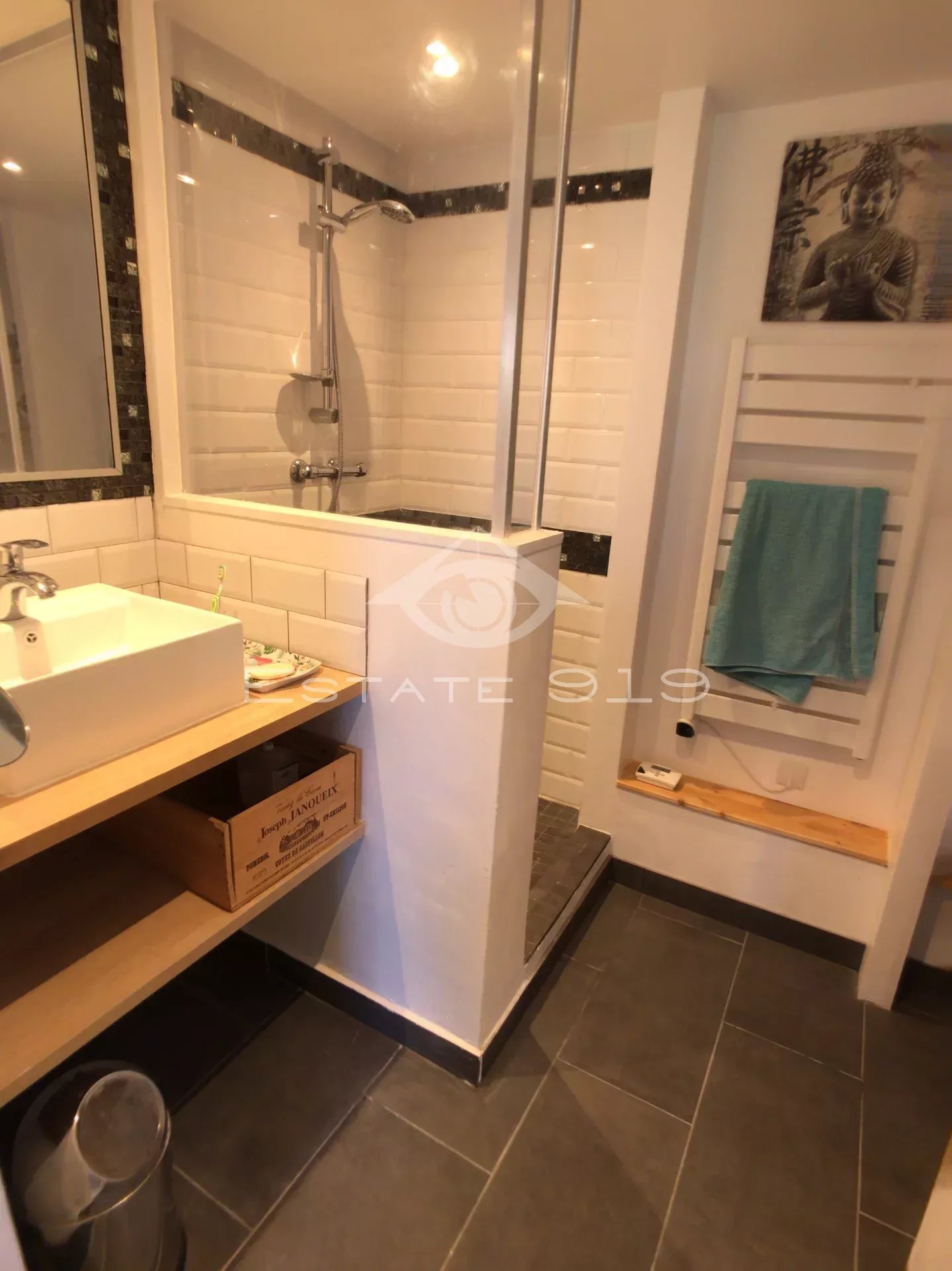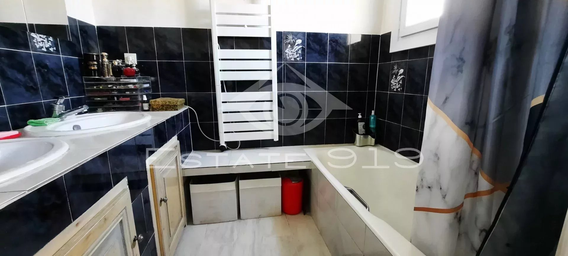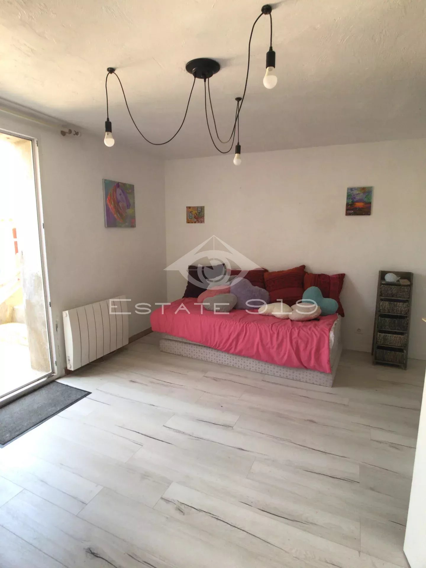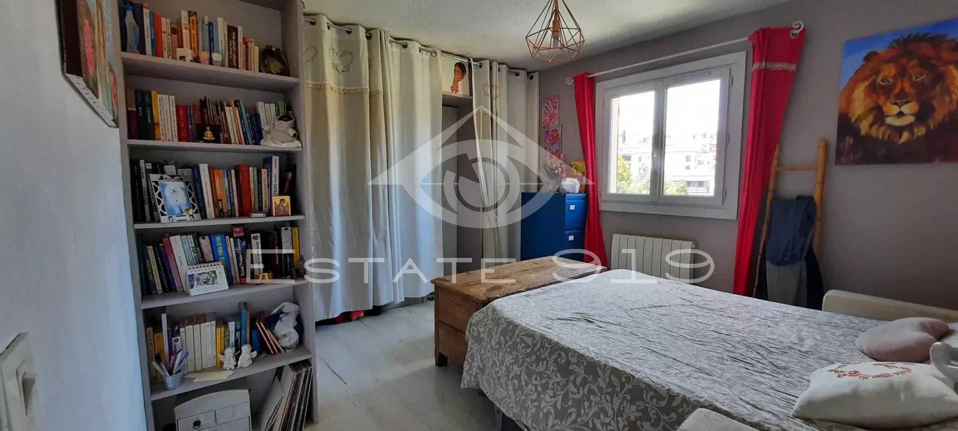 SOUS COMPROMIS ! CO-EXCLUSIVITE Rare sur le marché. Dans une impasse, au calme avec vue dégagée sur les collines charmante partie de mas d'environ 90 m2, en bon état, comprenant de plain-pied une très belle surface pour un séjour/salle à manger avec cuisine américaine, (41m2) poêle à bois récent, 1 chambre en suite avec dressing et salle de bain. WC invité. Combles accessibles. En rez de jardin, 1 chambre en suite avec salle de douches/WC et une cave/buanderie, ainsi qu'une partie privative avec portail. Terrasse/jardin complanté d'environ 150m2 avec bassin où il fait bon se détendre. Abri jardin en dur.. 3 parkings privatifs. Expo S/E. Entièrement clos. Tout à l'égout. A voir vite ! Honoraires charge vendeur. Pour tous renseignements contactez votre interlocuteur privilégié Martine SCHELLINO - Téléphone : +33660958115 ou par mail info@martine-schellino.com
