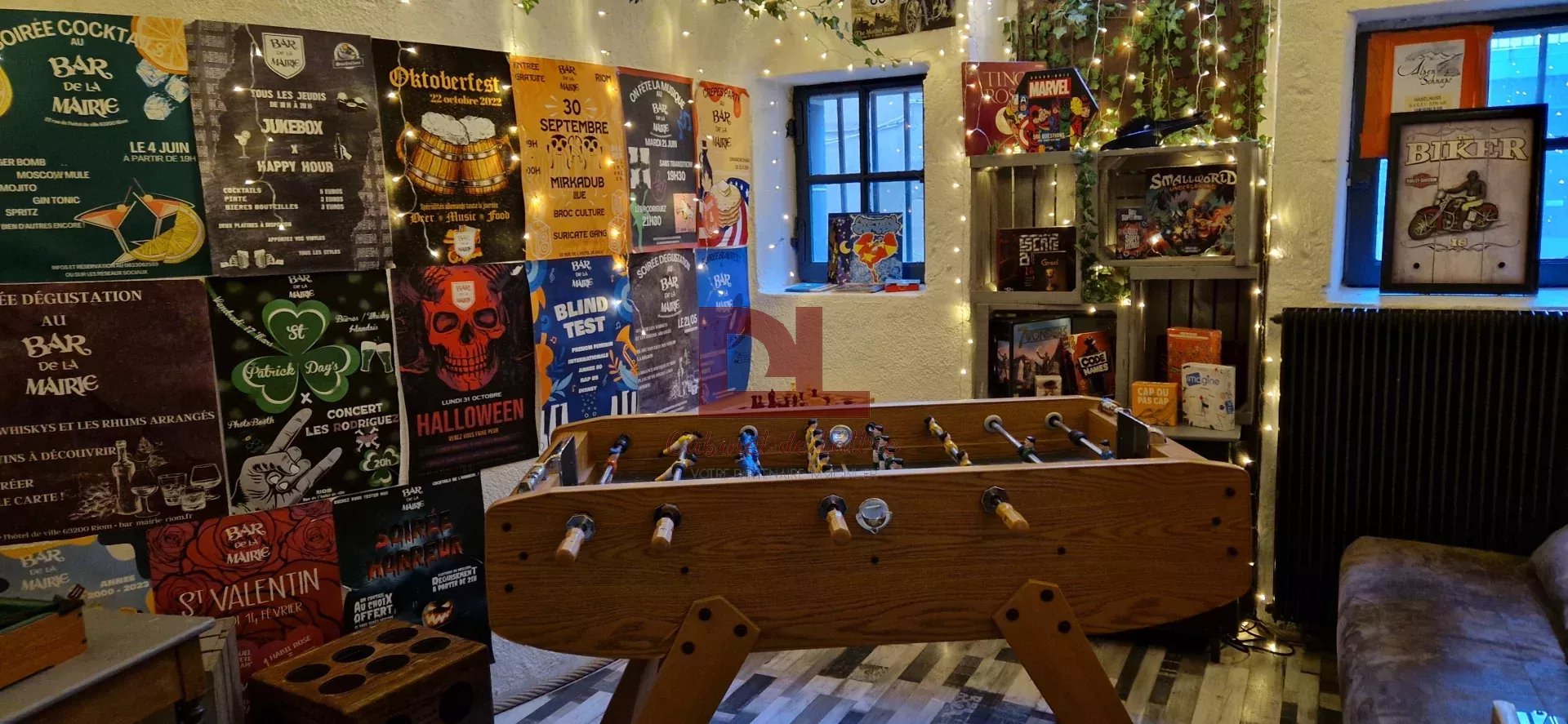 Disposant d'une surface totale de 88m², le bar est composé de la grande salle de bar, d'une cuisine, d'une salle de jeux dédiée, de WC, d'une cave en sous-sol et en extérieur d'une grande terrasse aménagée.