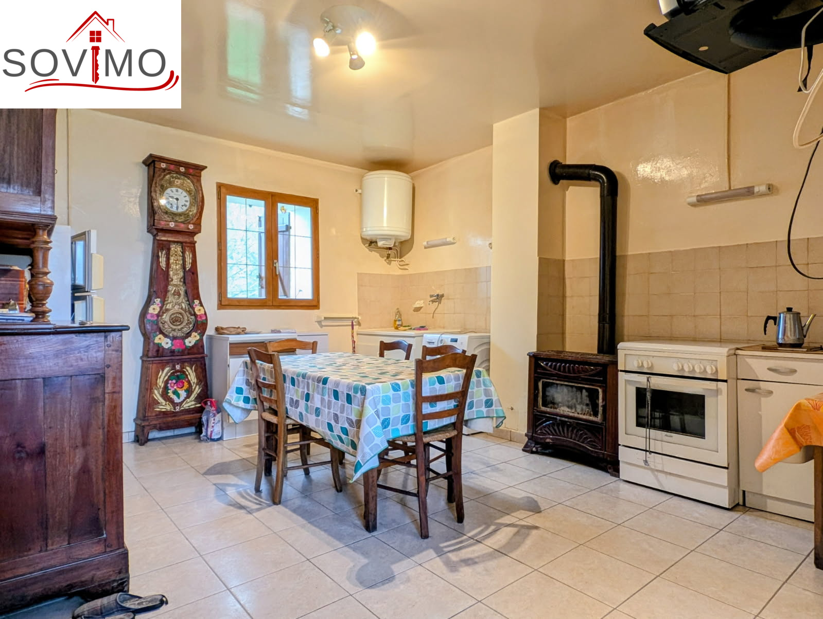 d'une pièce de vie chaleureuse avec cuisine/séjour et poêle à bois,