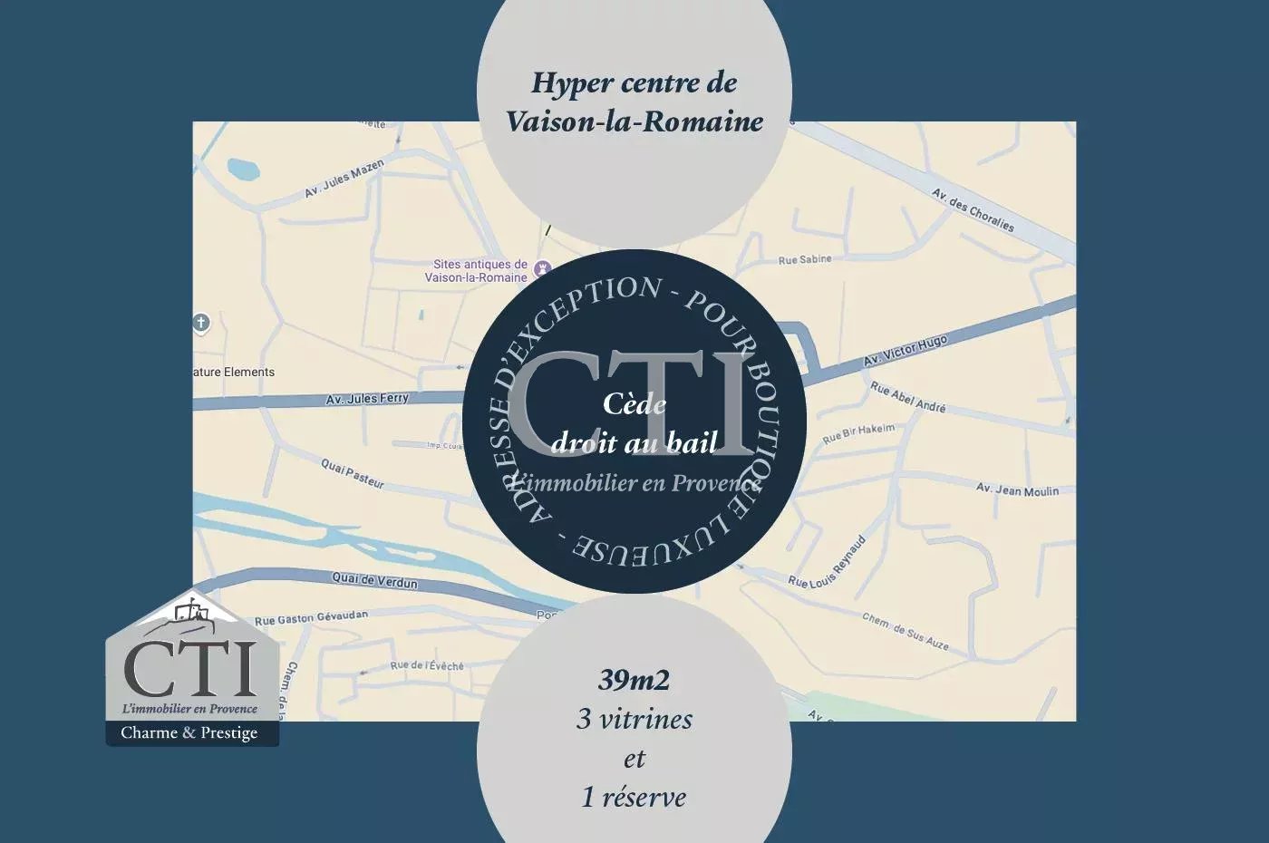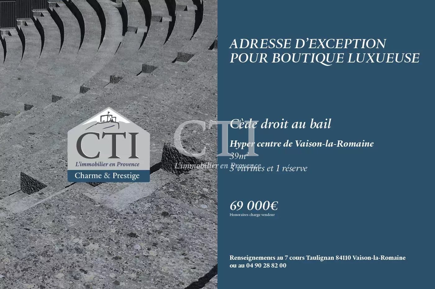 Dans l’hyper centre de Vaison-la-Romaine, ce local commercial idéalement situé dans une zone piétonne offre une surface d'environ 39 m². Ses trois vitrines exposent une visibilité optimum. Aucun travaux à prévoir au vue de son aménagement récent et très tendance. Il est parfaitement adapté à tout type de commerce pour un droit au bail au prix de vente 69 000 euros (aménagement inclus). Vous avez toutes les cartes en mains pour saisir cette opportunité et franchir le pas à vous installer dans un local au très fort potentiel. Pour plus de renseignement Contact Transaction Immobilière reste à votre écoute au 04 90 28 82 00