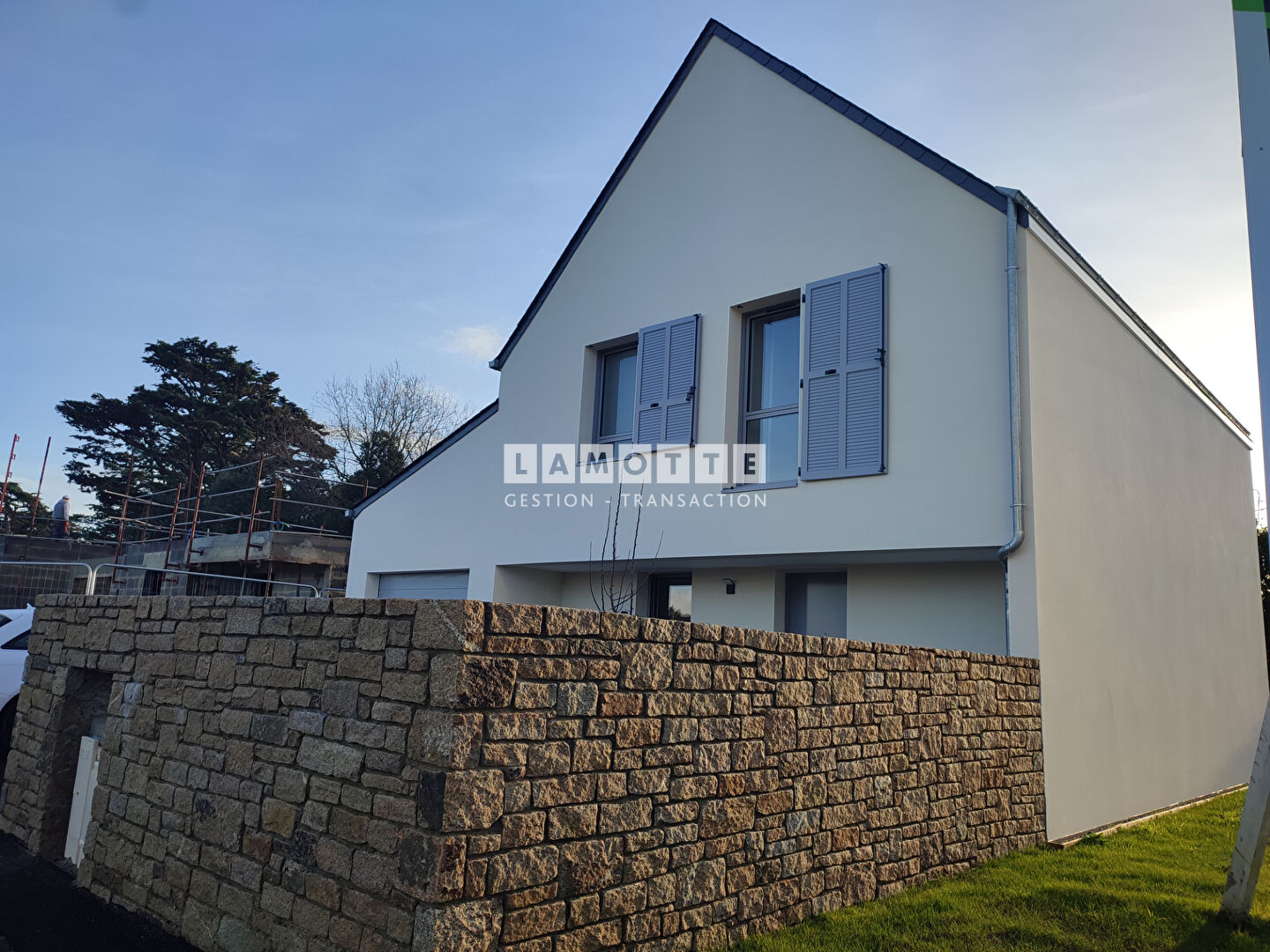RARE, SITUATION IDYLLIQUE ! Dans un environnement privilégié et recherché, accès direct à pied du port de LARMOR BADEN et du passage de l'île de BERDER. LAMOTTE TRANSACTION vous propose cette maison neuve de Type 5 qui sera livrée au 4ème trimestre 2026 d'environ 105 m² habitables, à seulement 500 m du centre bourg et du port de plaisance. Elle vous propose une véritable vie de plain pied ! En rez-de-jardin côté sud, une pièce à vivre avec une cuisine aménagée et équipée d'environ 35 m² donnant sur une terrasse d'environ 15 m² et un jardin clos et végétalisé. Une vaste entrée avec placard, une chambre parentale avec une salle d'eau et un toilette séparé. Au premier étage, un palier desservant trois chambres dont une avec placard, une salle de bains avec une baignoire et un toilette séparé. Un garage et deux places de stationnement complètent ce bien ! Arrêt de bus "Larmor Baden Centre", ligne 23 pour rejoindre le centre ville de Vannes Pompe à chaleur air-eau : plancher chauffant au rez-de chaussée, radiateurs à eau chaude à l'étage. Conduit de cheminée pour installation future d'un poêle à bois ou granulés, Menuiseries aluminium Profitez des avantages du neuf : performances énergétiques et acoustiques aux dernières normes, garanties jusqu'à 10 ans après l'achat. Copropriété de 16 lots - dont 16 lots habitation.().