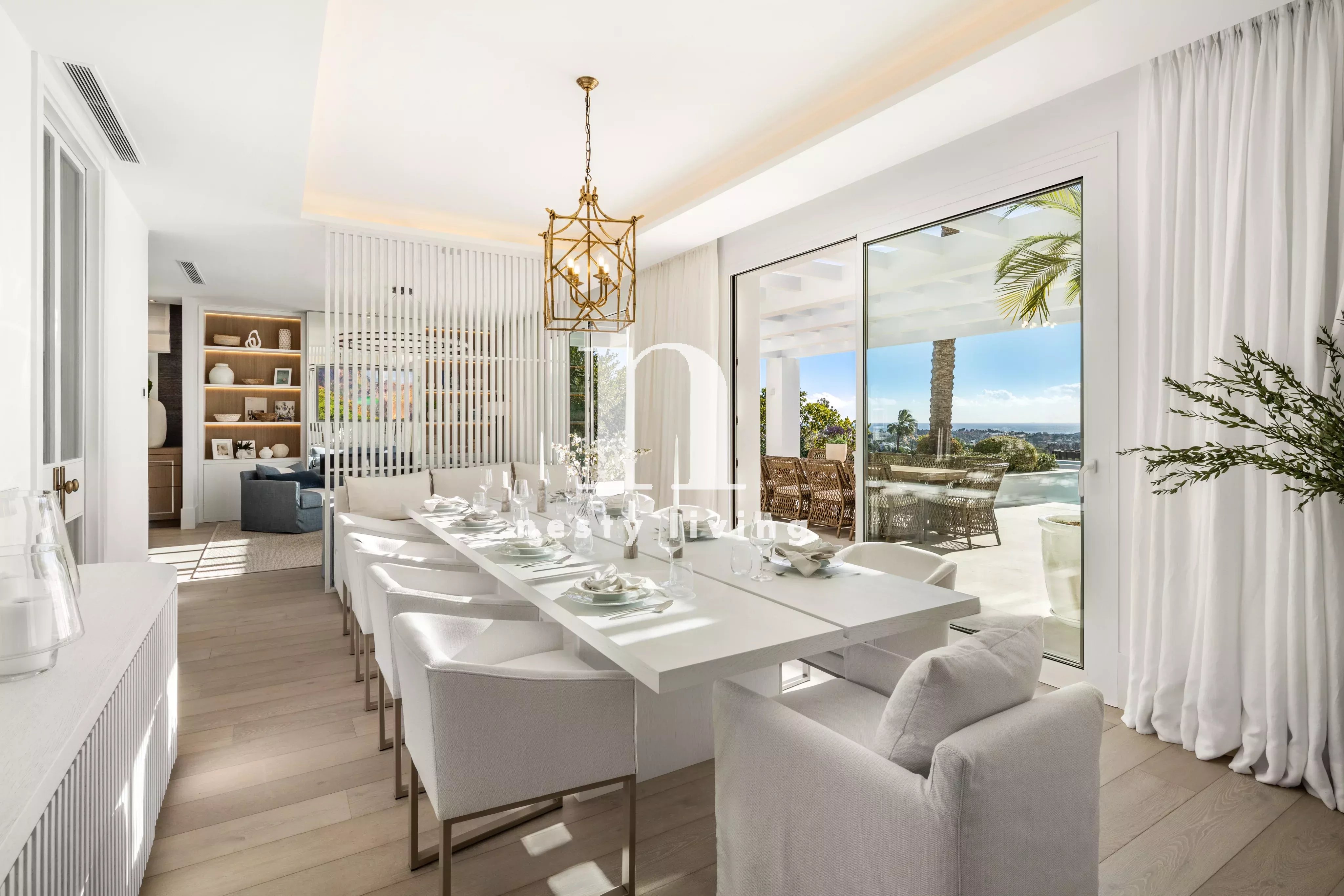Située dans la prestigieuse communauté de La Cerquilla à Nueva Andalucia, elle offre une vue imprenable sur plusieurs terrains de golf, La Concha et la mer.