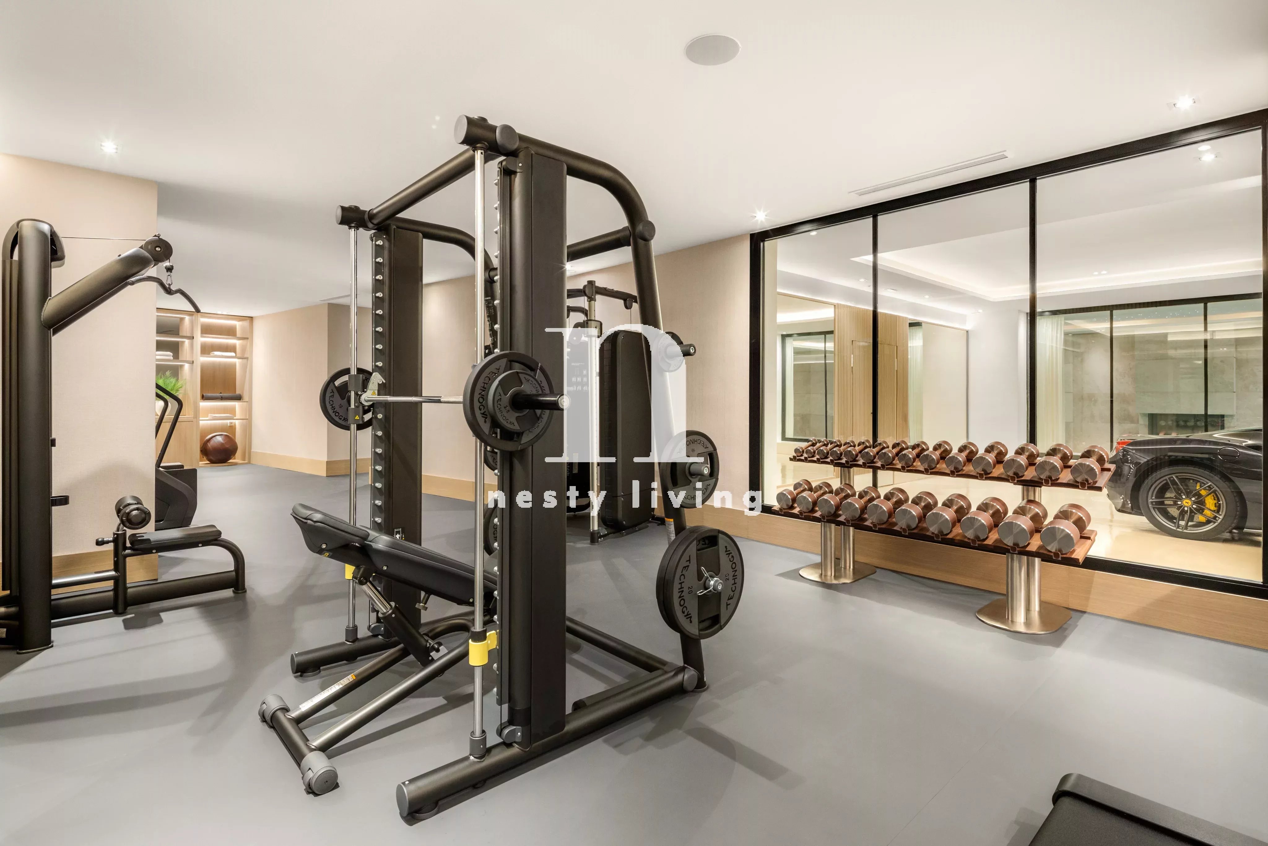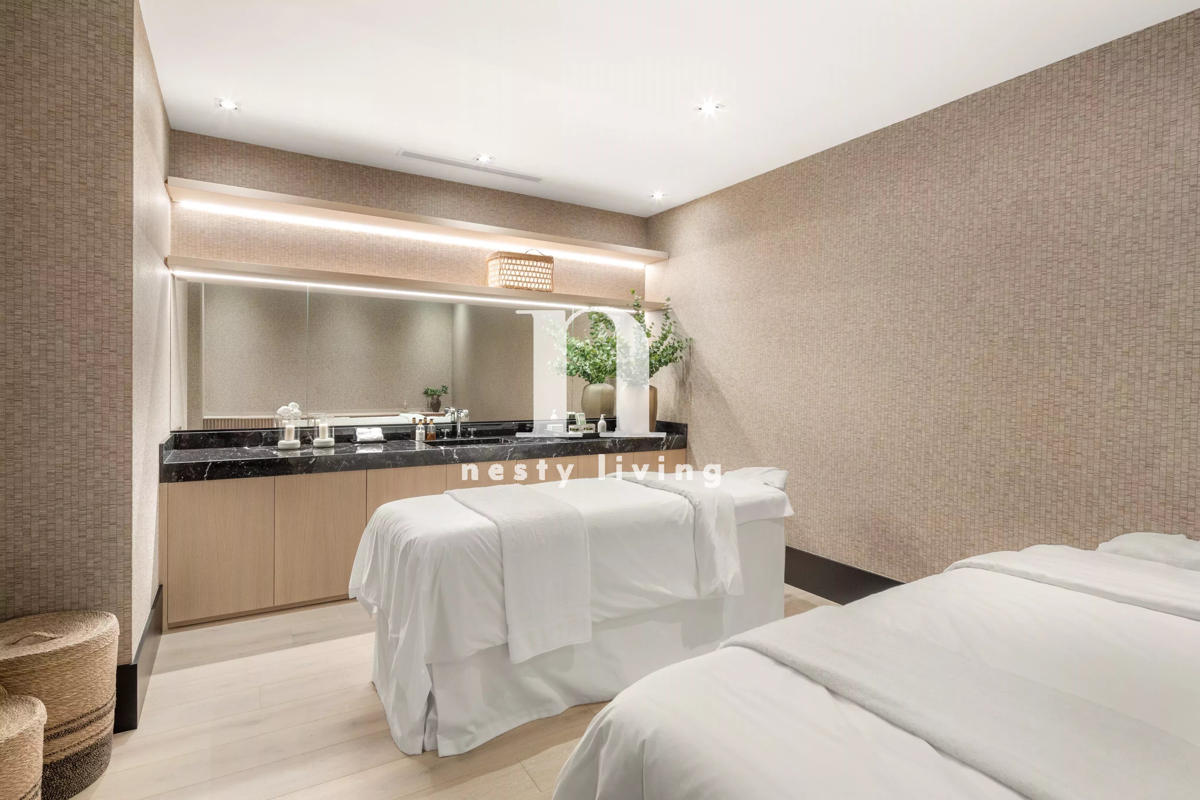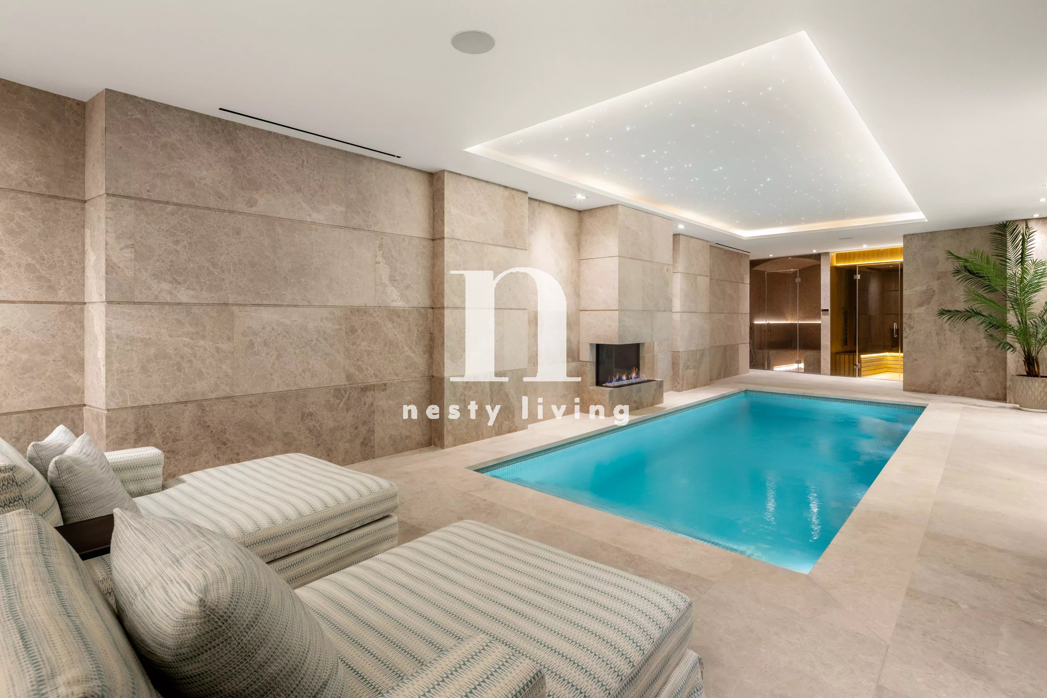 Les nouveaux propriétaires pourront profiter d'une piscine intérieure avec sauna à vapeur et infrarouge ainsi que d'un jacuzzi, d'un pod froid, d'une salle de sport, d'une bodega, d'une salle de projection, d'une salle de jeux, d'une salle de massage, d'une salle de relaxation et d'une salle de glamour comprenant un coiffeur et une station de maquillage.