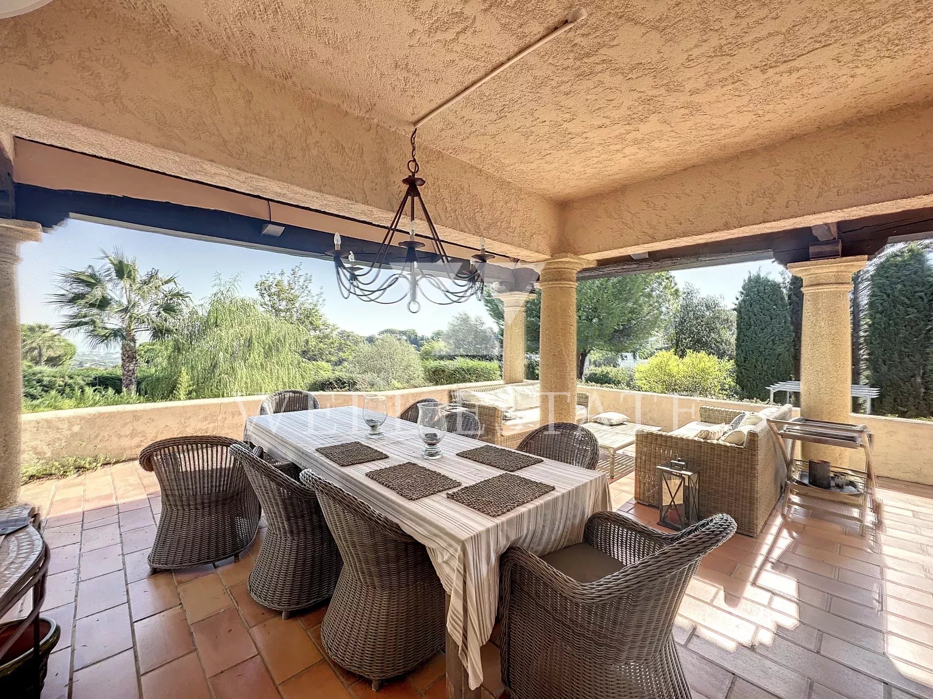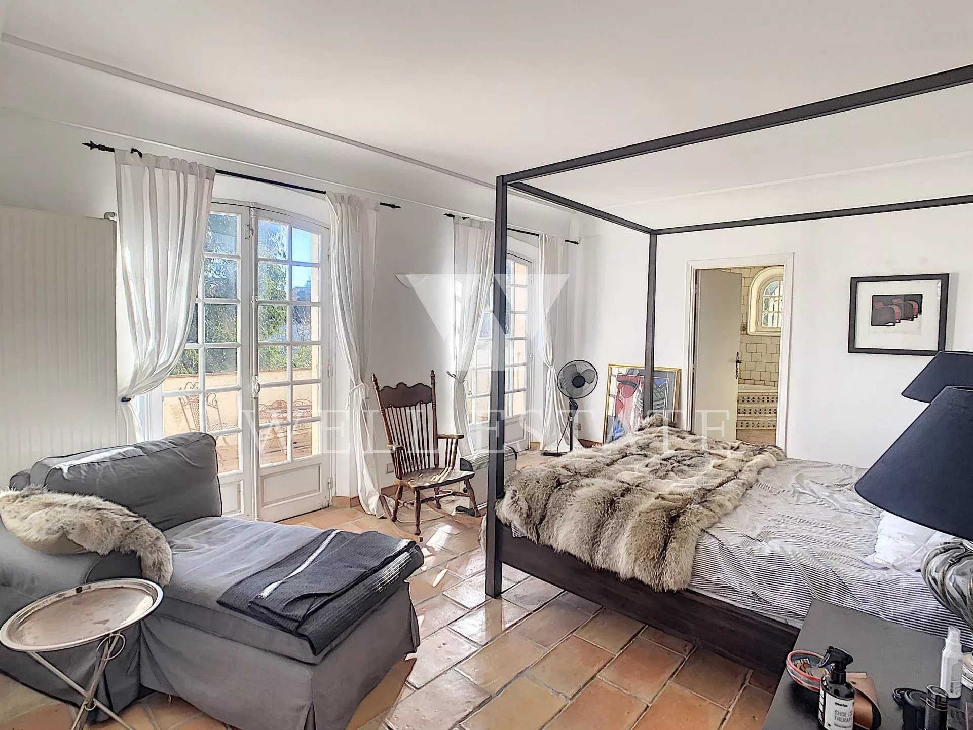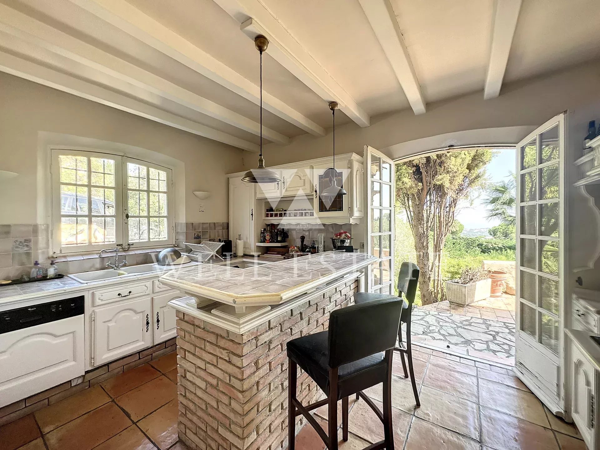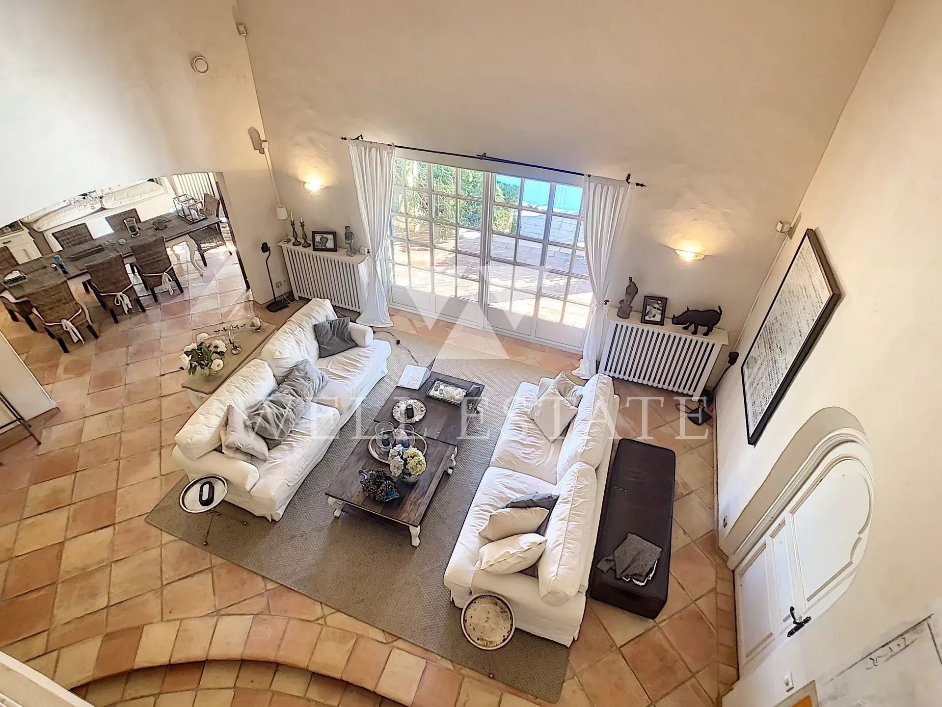 Super Cannes - La villa provençale en position dominante se situant dans un quartier recherché au calme absolu, se compose d'un séjour avec une cheminée, d'une espace salle à manger, d'une cuisine fermée et équipée, 3 chambres, 2 salles de douches, WC independant. Au premier étage: une chambre de maitre avec sa salle de bains donnant sur la terrasse. Un appartement independant avec séjour, cuisine, douche et une chambre pour le personnel. Une salle de jeux (transformable en appartement), buanderie et un garage pour 2 voitures complète ce bien.