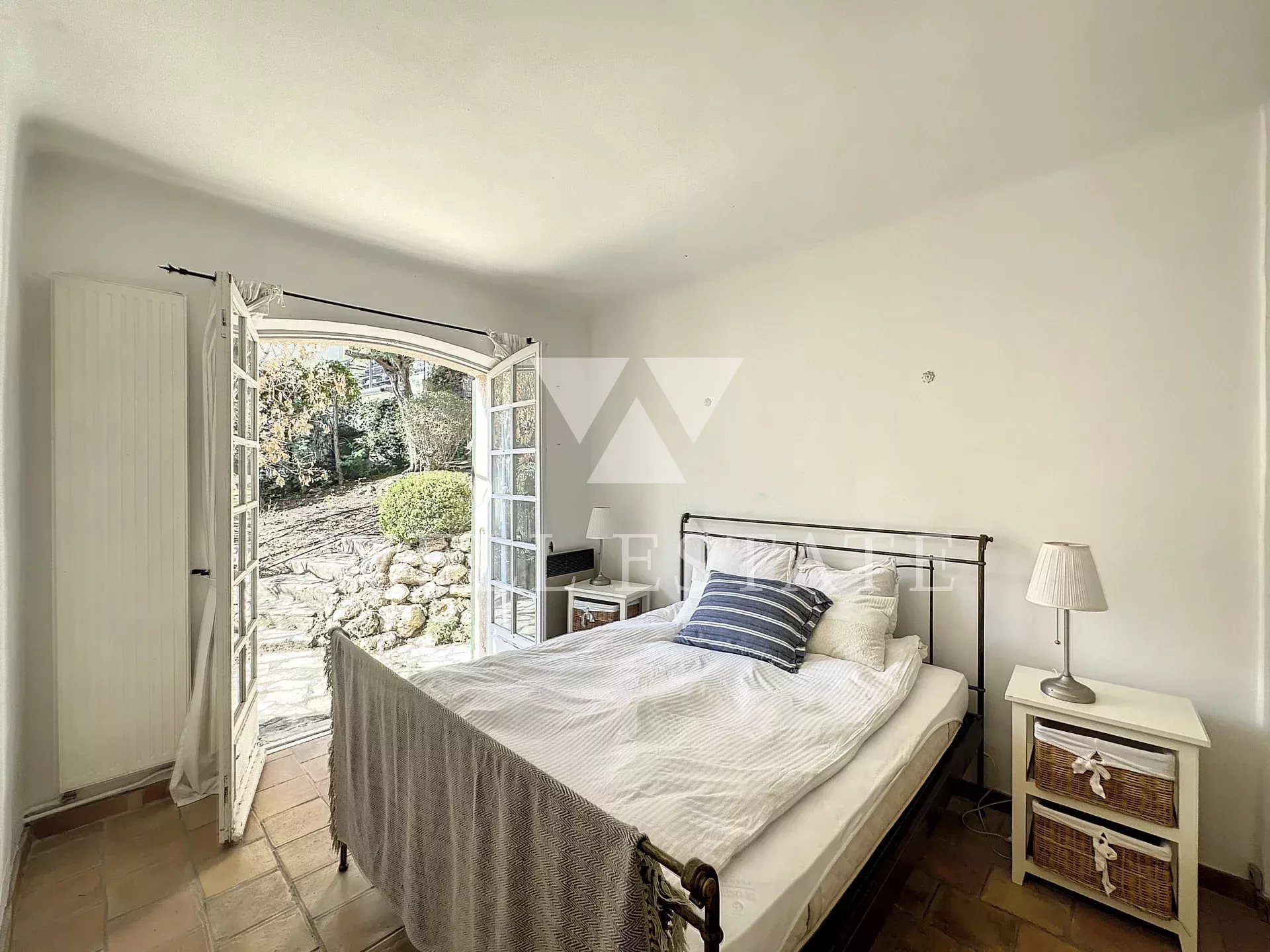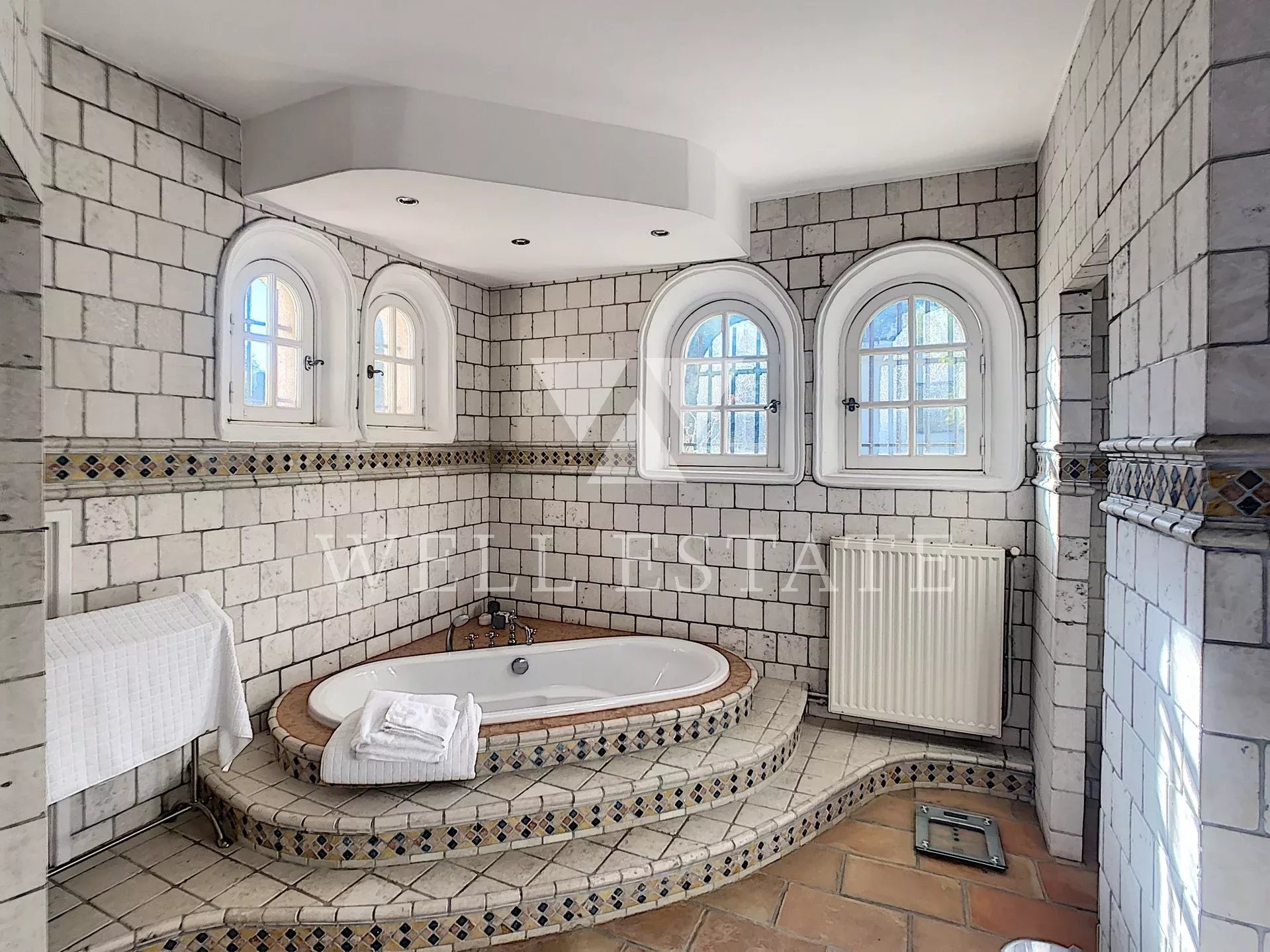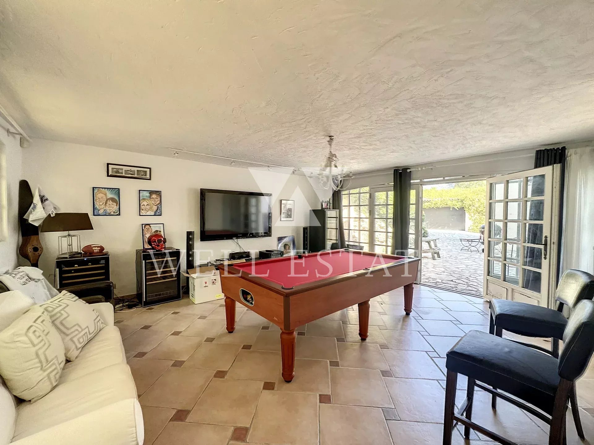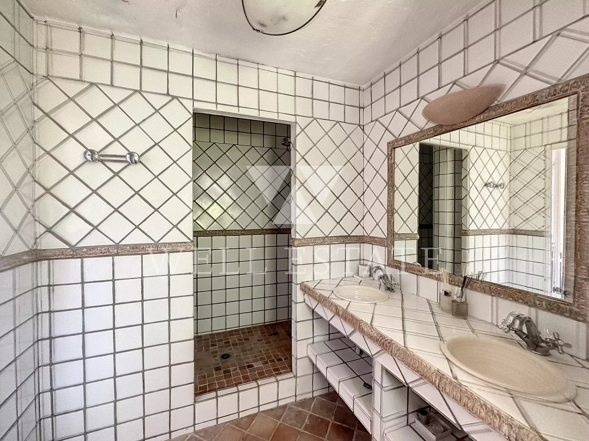 Super Cannes - La villa provençale en position dominante se situant dans un quartier recherché au calme absolu, se compose d'un séjour avec une cheminée, d'une espace salle à manger, d'une cuisine fermée et équipée, 3 chambres, 2 salles de douches, WC independant. Au premier étage: une chambre de maitre avec sa salle de bains donnant sur la terrasse. Un appartement independant avec séjour, cuisine, douche et une chambre pour le personnel. Une salle de jeux (transformable en appartement), buanderie et un garage pour 2 voitures complète ce bien.