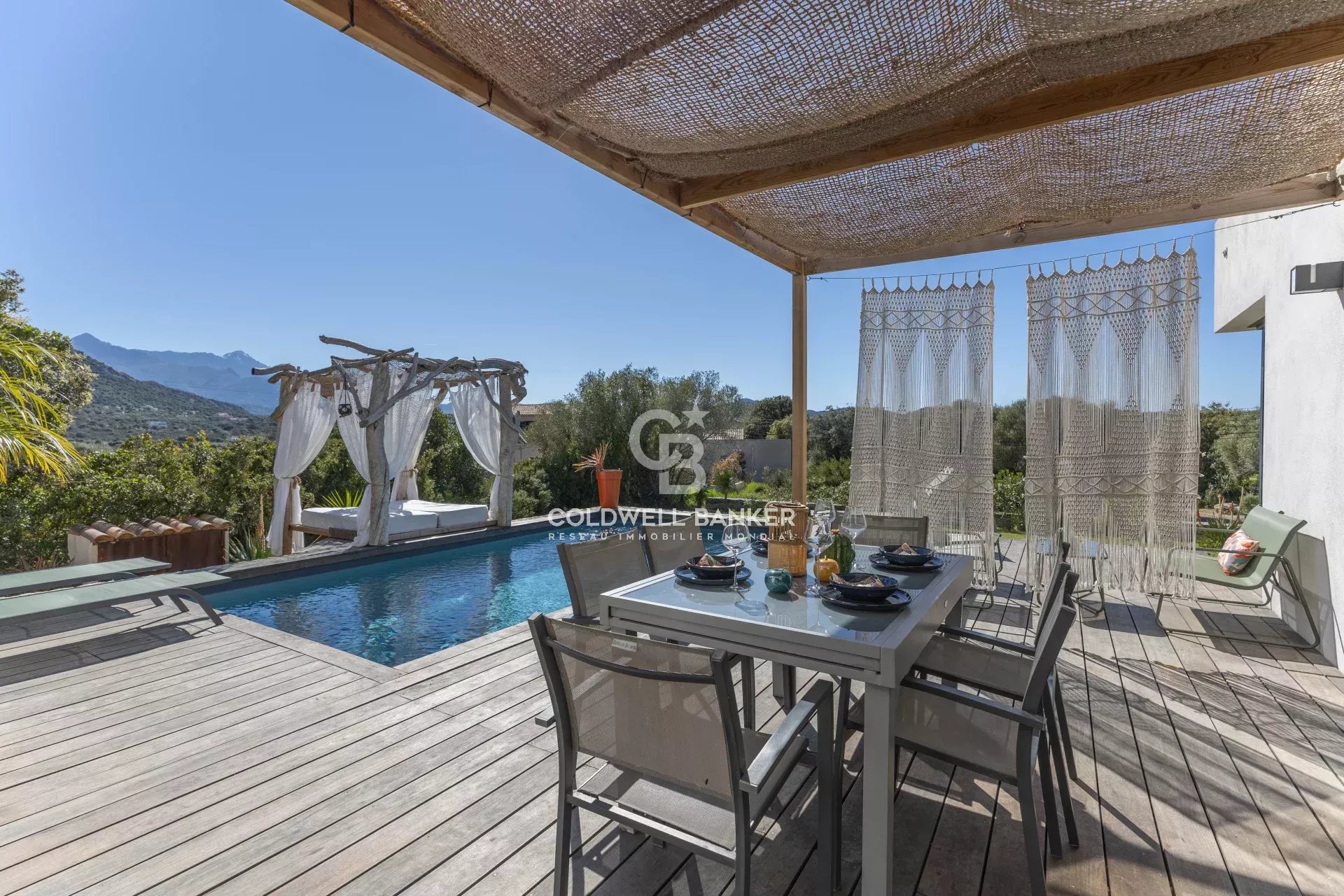 À quelques minutes de la splendide plage de Lozari et à proximité immédiate des commerces, cette élégante villa contemporaine séduit par son emplacement privilégié, sa luminosité remarquable et son atmosphère paisible. Située dans un environnement résidentiel, en bout d’implantation, la villa a été conçue avec une orientation des espaces de vie vers la nature, garantissant une belle intimité et l'absence de vis-à-vis. Son exposition idéale sublime les volumes de lumière