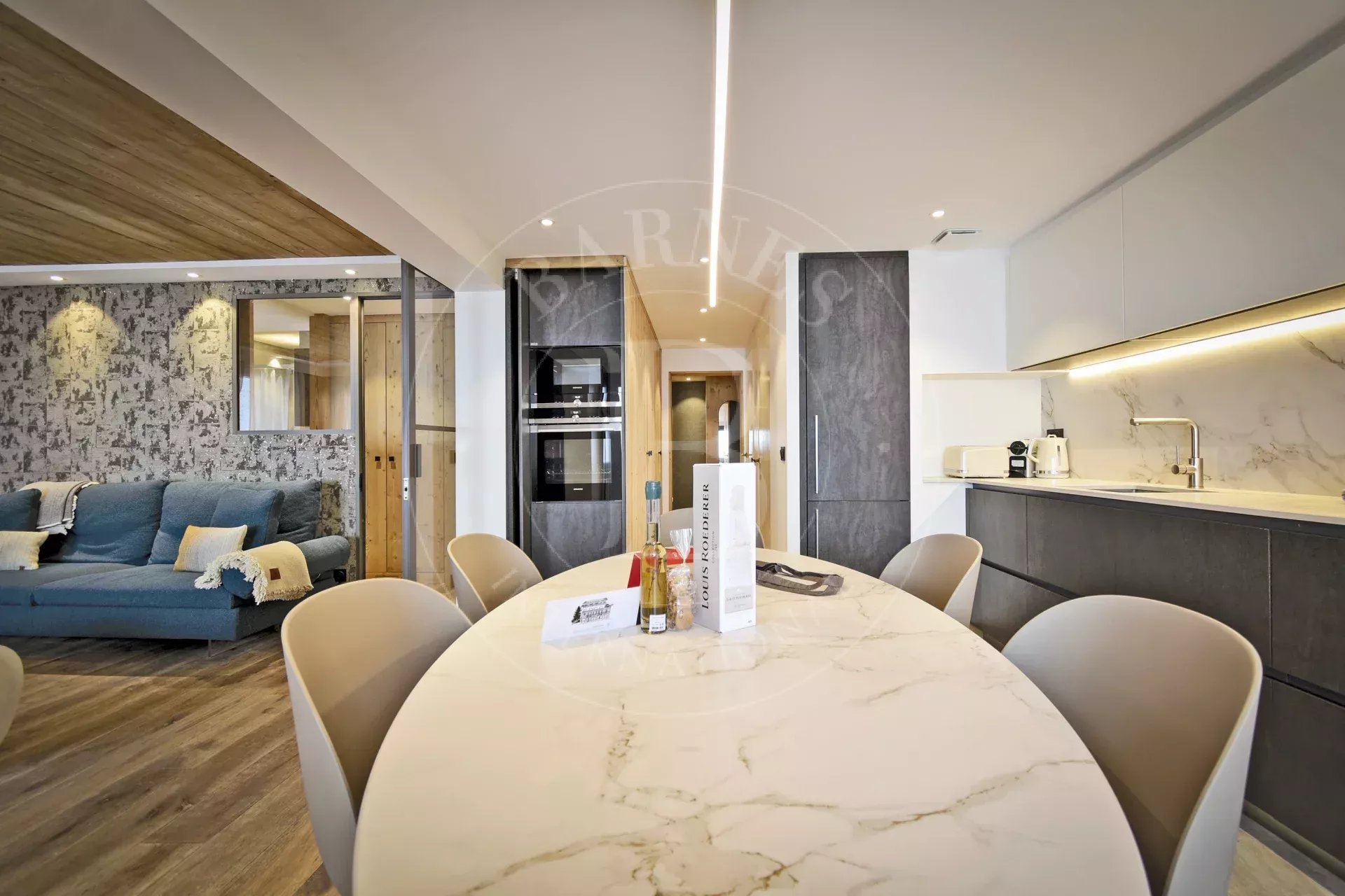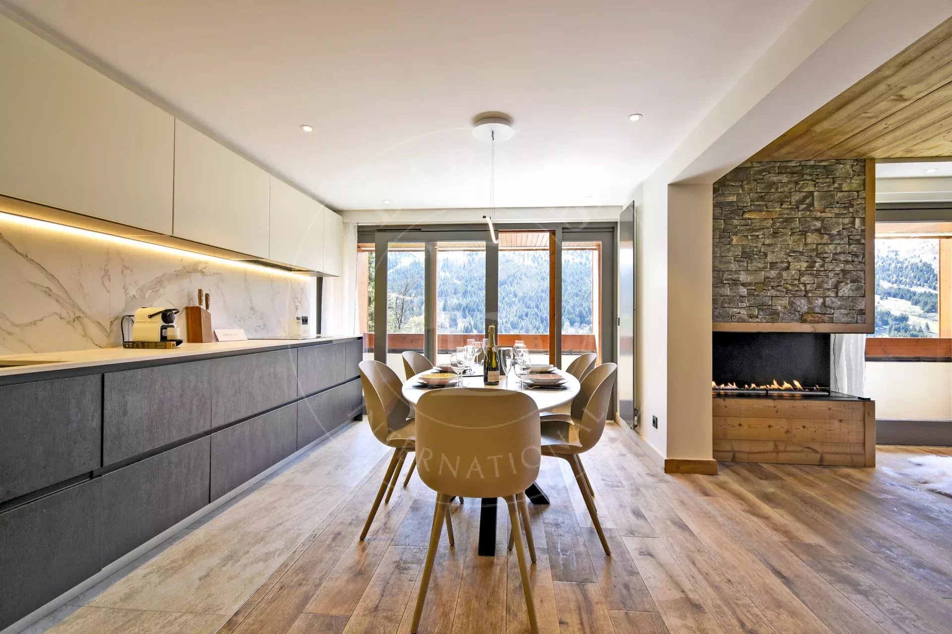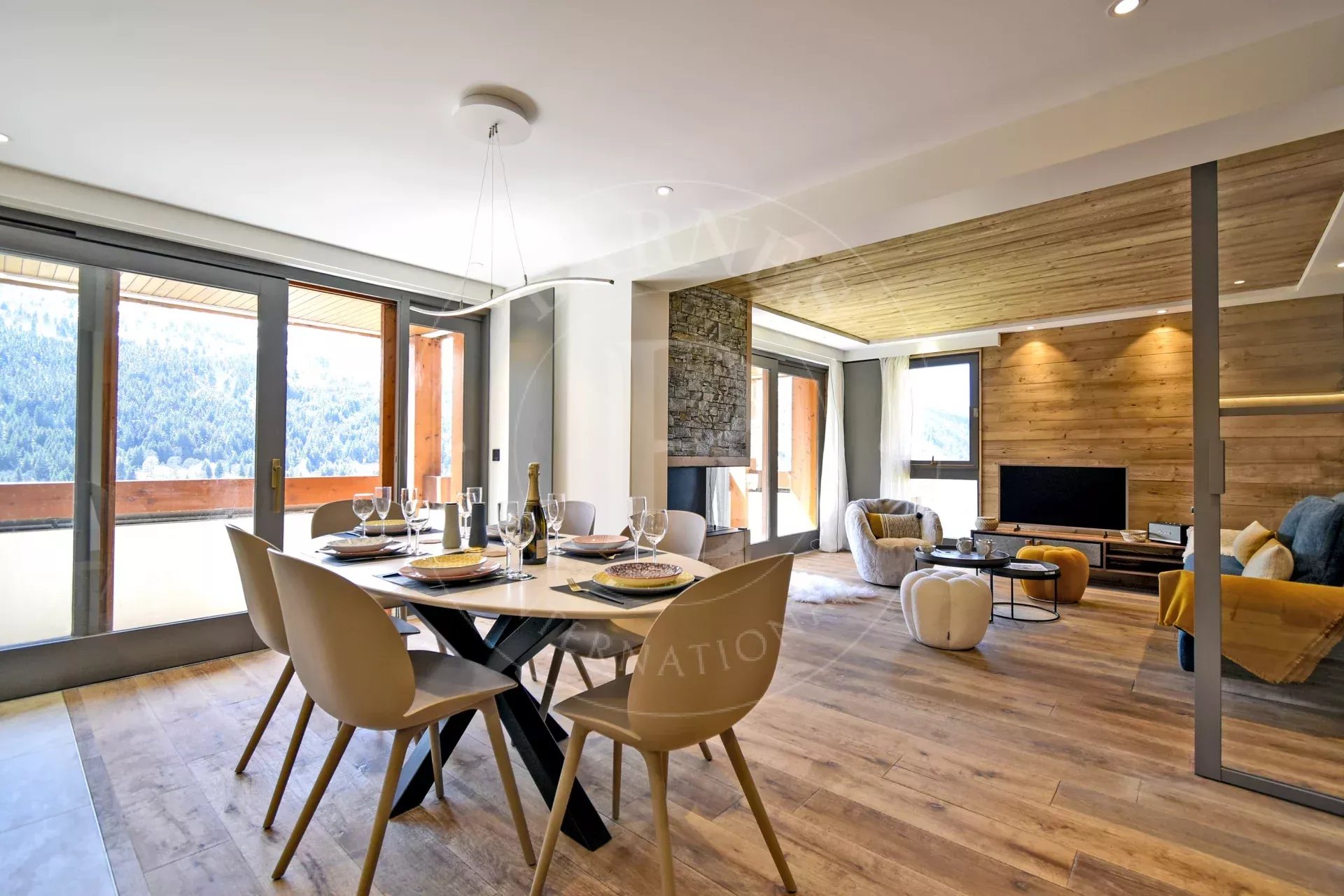 Appartement de charme de 84m², alliant authenticité et modernité, entièrement rénové en 2023. Depuis le 2ème étage, offre une sublime vue dégagée sur les sommets des montagnes et la forêt de sapin. Proche du centre, sa localisation est idéale pour les skieurs et les non-skieurs. Il est composé de 3 chambres doubles et peut accueillir jusqu'à 6 personnes. Les plus de ce bien : - Accès aux pistes de ski par le télésiège de Morel à 220 mètres - Accès au centre de la station à 450 mètres - Vue imprenable sur les sommets - Cheminée à l'éthanol - Casier à skis - 1 place de parking - WIFI Prestations incluses : - Accueil à l'appartement - Lits faits à l'arrivée - Linge de toilette fourni - Ménage de fin de séjour - Accès aux services de conciergerie - 1 place de parking Le service de conciergerie Barnes vous accompagne dans la préparation de votre séjour afin qu’il devienne inoubliable : Du ménage au tour d’hélicoptère, en passant par la mise à disposition d’un chef cuisinier, la réservation de vos taxis, la commande des forfaits et la location de vos skis, l’équipe de Barnes reste à votre écoute en tout temps.