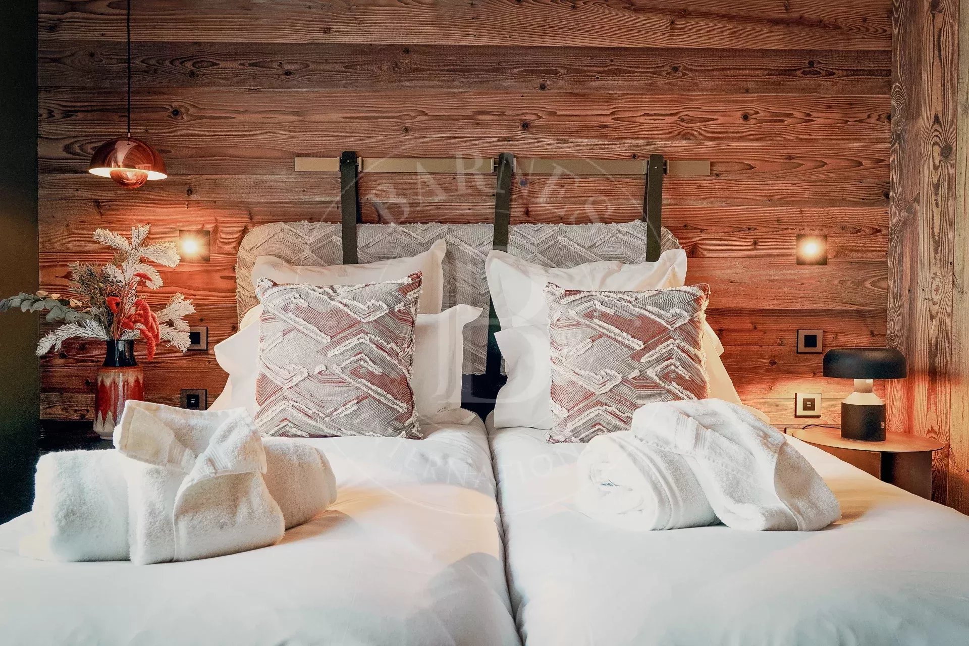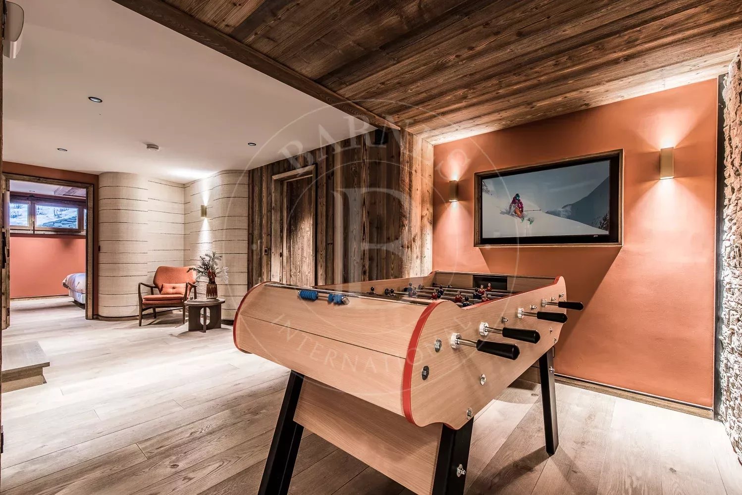 Découvrez le Chalet SERENIS, une propriété de prestige de 350 m² nichée dans le quartier prisé du Rond-Point des Pistes à Méribel. Situé à seulement 15 mètres des pistes, ce chalet d'exception allie l'authenticité alpine à un luxe contemporain. Avec ses 6 chambres privatives et ses volumes spectaculaires sous charpente, il offre un cadre de vie idéal pour accueillir jusqu'à 14 personnes dans un confort absolu. Le vaste séjour cathédrale, réchauffé par une magnifique cheminée, s'ouvre sur une terrasse panoramique offrant une vue imprenable sur la nature environnante. Entre sa cave à vin vitrée, son espace bien-être avec sauna et sa salle de cinéma, chaque détail a été pensé pour transformer votre séjour en une expérience inoubliable. Les points forts de l'hébergement : - À 15 mètres seulement des pistes de ski - Sauna privé - Espace TV Cinéma - 6 places de parking avec chargeur - Casier à skis avec sèches chaussures - Ascenseur NIVEAU 3 : Mezzanine - Petit salon - Coin bureau - Cabane-bibliothèque avec mur d’escalade intégré - Toilettes invités NIVEAU 2 - Salon de réception cathédrale - cheminée - Salon TV - Terrasse filante entourant l’étage d'une vue panoramique - Espace bar et cuisine ouverte - Cave à vin NIVEAU 1 - Spacieuse salle à manger pouvant accueillir jusqu'à 16 couverts - Cuisine équipée semi-ouverte - Chambre 1 : lit double Queen-size - salle de bain avec 1 vasque - WC - TV - balcon - Terrasse filante NIVEAU 0 - Entrée - Chambre 2 : lit double ou twin queen-size - salle de douche avec 1 vasque - TV - terrasse - Chambre 3 : lit double queen-size - salle de bain avec 1 vasque - WC - TV - terrasse - Sauna - Equipements sportifs - Toilettes invités NIVEAU -1 - Chambre 4 : lit double ou twin queen-size - salle de douche avec 2 vasques - WC - TV - Chambre 5 (pas de fenêtre donnant sur l'extérieur) : 3 lits simples superposés pour 6 couchages (90x200) - salle de douche avec 2 vasques - WC - Baby-foot - Toilettes invités NIVEAU -2 - Espace TV Cinéma - Chambre 6 (pas de fenêtre donnant sur l'extérieur) : 1 lit simple (90x200) - salle de douche - WC - TV - Buanderie avec lave-linge et sèche-linge Services inclus : - Accueil personnalisé - Produits d’accueil - Lits faits à l’arrivée - Linge de maison fourni - Ménage régulier de l'appartement - Accès au SPA de la résidence, salle de fitness et salles de massages - Service de conciergerie Les Grands Chalets des Pistes, une résidence construite en 2021. Cette résidences aux prestations luxueuses vous invite à vivre un séjour inoubliable. Séjournez dans cet appartement comme à l'hôtel grâce à notre conciergerie 5* Mountain Majord'Home. Un vrai service sur-mesure avec des possibilités infinies. Nos équipes sont à votre disposition pour organiser votre séjour et vous proposent un éventail complet de services pour faciliter vos vacances. Les animaux de compagnie ne sont pas autorisés et cet hébergement est non-fumeur. Taxe de séjour en supplément au tarif en vigueur (pour toute personne de plus de 18 ans) Montant du dépôt de garantie non encaissé : 10 000€