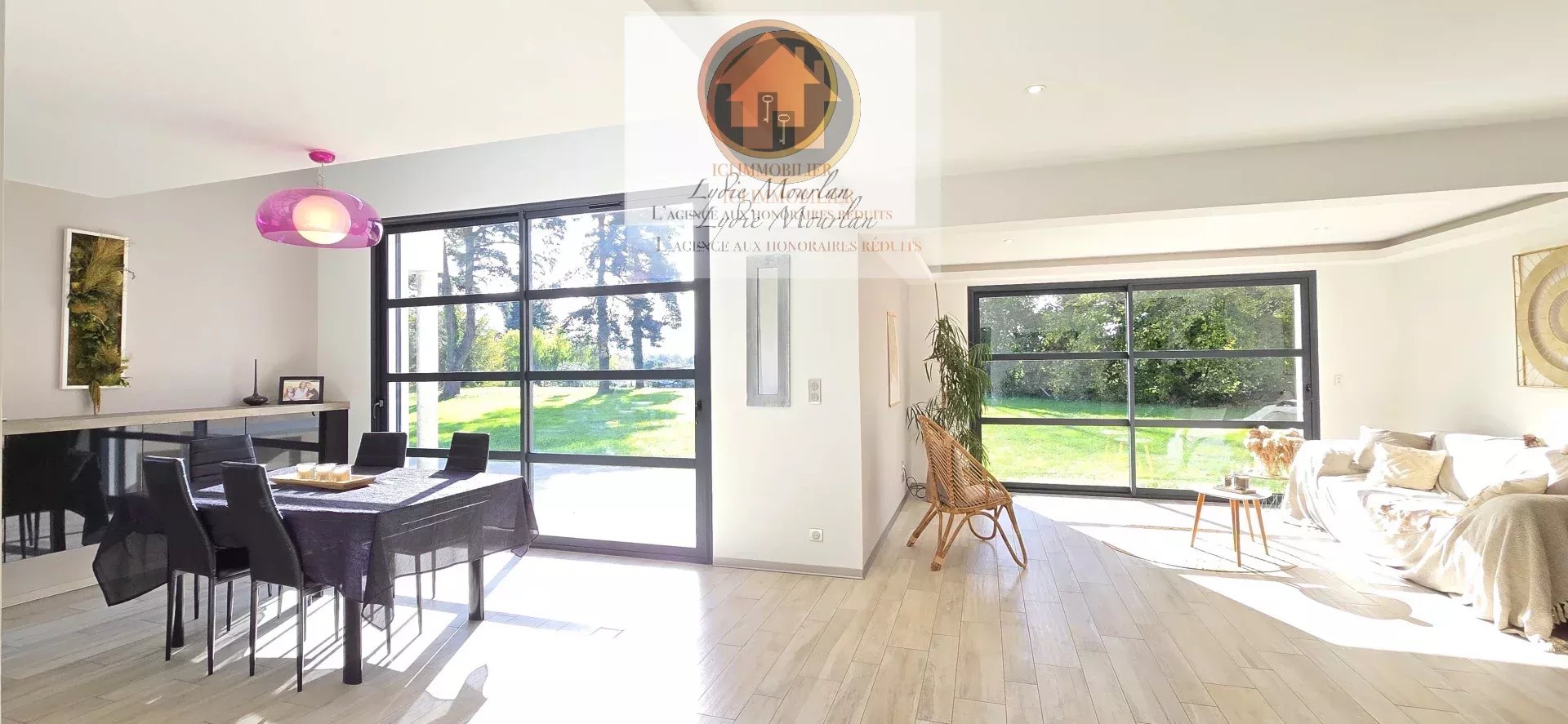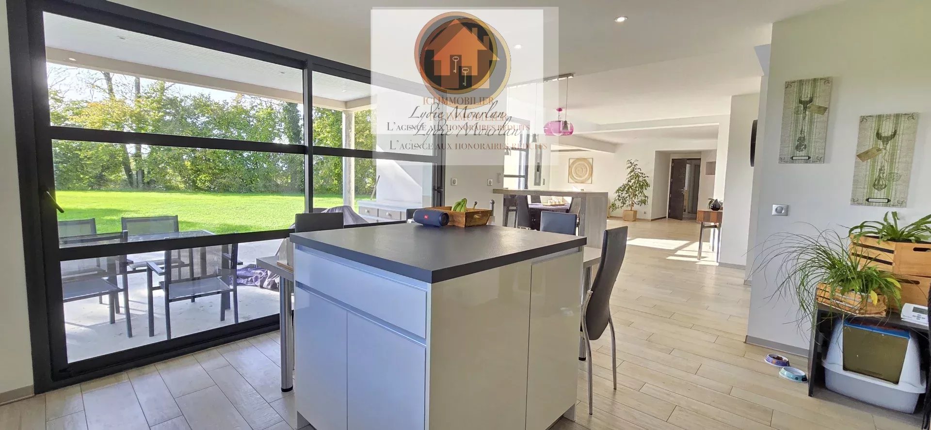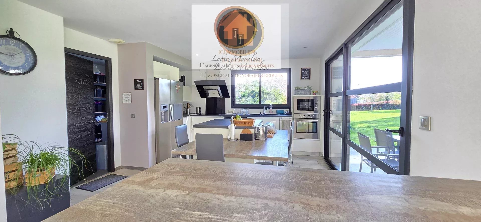 LESCAR OUEST (9 MIN) : succombez à cette superbe contemporaine située dans un coin de paradis ! Villa de 200 m2 avec sous-sol partiel de 90 m2 sur parcelle arborée et piscinable de +3400 m2 avec belle vue Pyrénées. Espace de vie de 80 m2, exposé Sud, sans vis à vis, avec cuisine équipée et cellier attenant. Grandes baies vitrées offrant une vue sur un magnifique jardin arboré. 4 chambres en RDC, avec coin nuit séparé. 1 suite parentale à l'étage avec SDE et dressing et terrasse privative offrant une vue panoramique sur les Pyrénées. Espace bureau (mezzanine) avec vue sur le séjour. Garage double de 60 m2 en entre sol, avec espace buanderie de 30 m2. Chauffage au sol par pompe a chaleur. Située au calme absolu, dans un superbe environnement, cette demeure saura vous séduire à coup sûr. Situé à 9 min de l'autoroute, à 10 min de l'aéroport, et 5 min de commerces / écoles, sa situation géographique offre également de nombreux avantages. DPE B (65) & A(1) . Montant estimé des dépenses annuelles d'énergie pour un usage standard : entre 700 € et 950 € par an. Prix moyen des énergies indexé sur l'année 2023 (abonnements compris). Les informations sur les risques auxquels ce bien est exposé sont disponibles sur le site : www.georisques.gouv.fr Le prix indiqué comprend les honoraires à la charge du vendeur. ref annonce 203147. Vidéorama disponible sur le site agence.