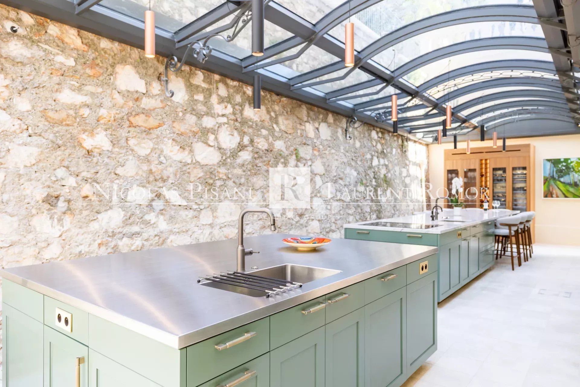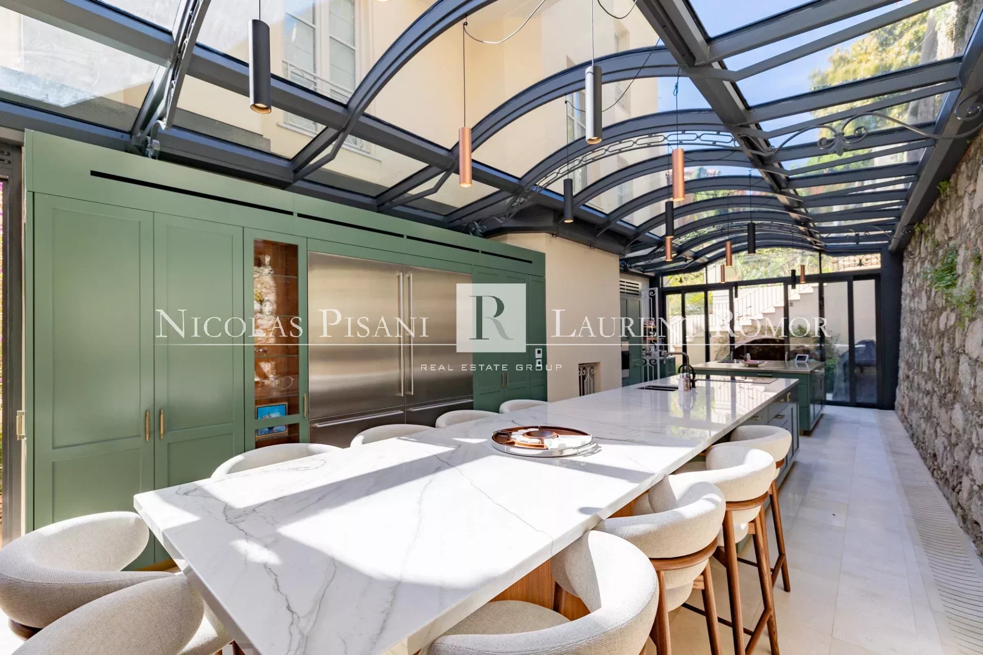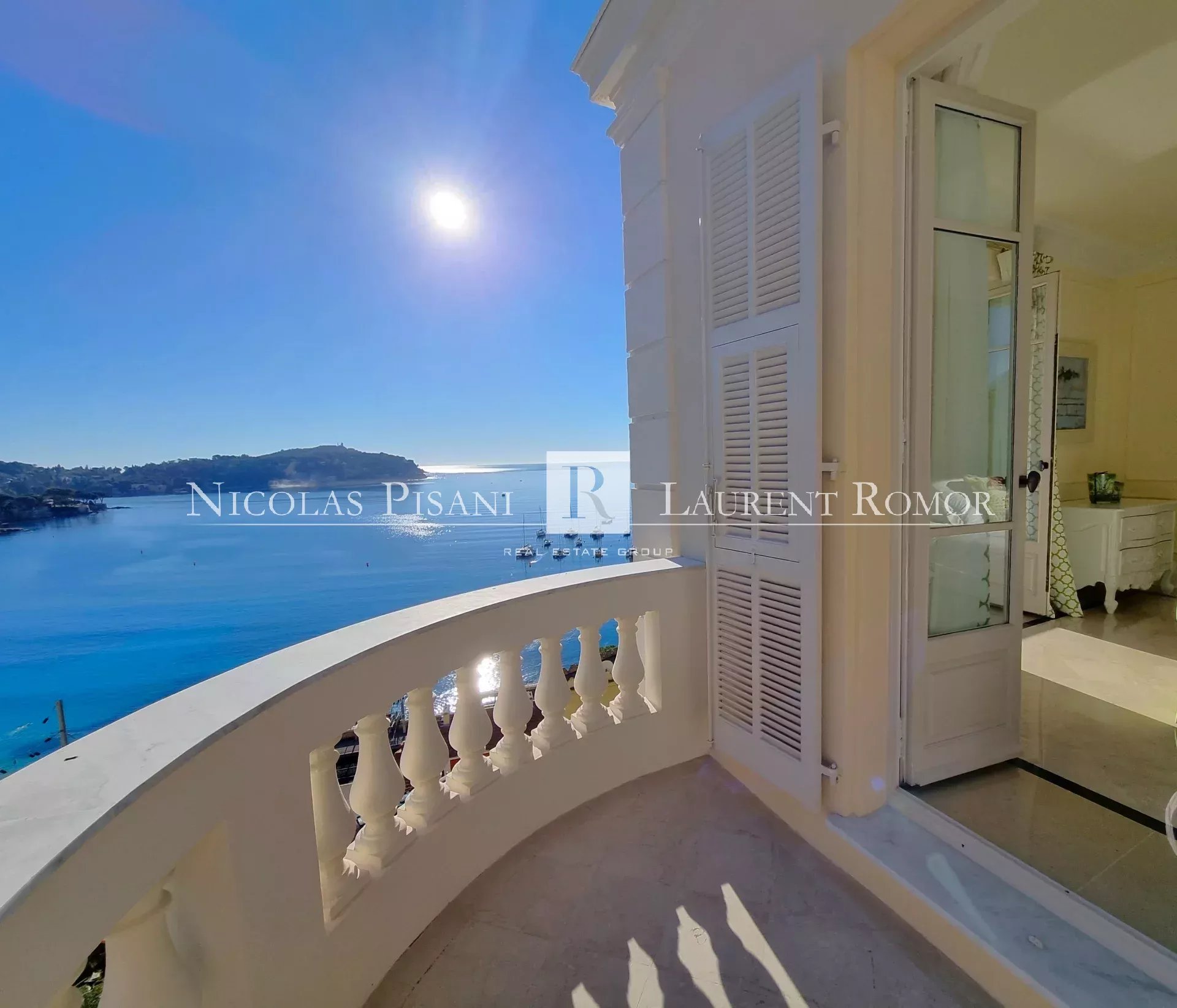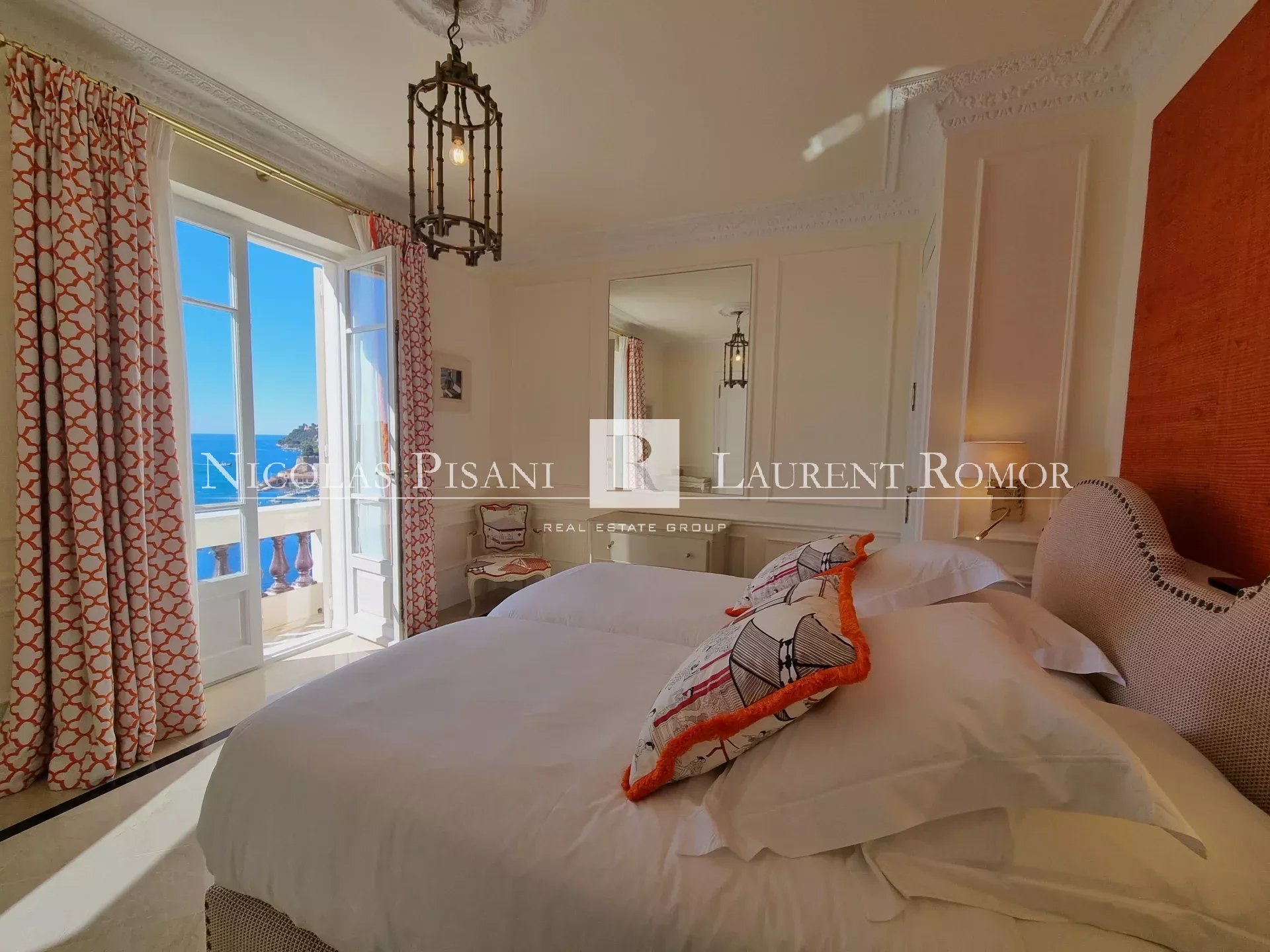 Dominant la Rade de Villefranche et le Cap Ferrat, magnifique villa Belle époque avec piscine et jardin plat offrant une vue mer panoramique sur la Rade de Villefranche sur mer et située à deux pas des plages . La villa bénéficie d'un spacieux séjour, d'une belle salle à manger donnant accès direct sur la terrasse, d'une cuisine véranda parfaitement pensée et de 4 chambres équipées ainsi: Au premier étage : 1 chambre de Maître avec une salle de douche, un dressing et un balcon et une chambre, avec salle douche avec système hammam, un dressing et un balcon. Au second étage : 1 chambre avec deux balcons, un dressing et une salle de douche , et une chambre avec balcon, salle de bain et dressing. A ceci, vous avez la possibilité de profiter d'un studio indépendant avec sa cuisine, sa salle de douche et sa chambre. En annexe : un pool house avec salle de douche, matériel de sport et un petit frigo. A cela s'ajoute une grande piscine, plusieurs jardins complantés d'arbres méditerranéen, un garage pour trois voitures et un ascenseur. Les prestations sont : barbecue, internet, climatisation, système d'alarme, vidéo surveillance.