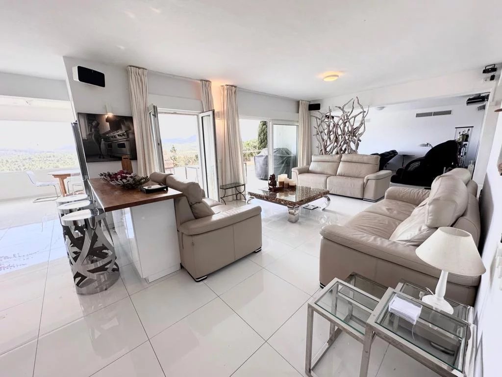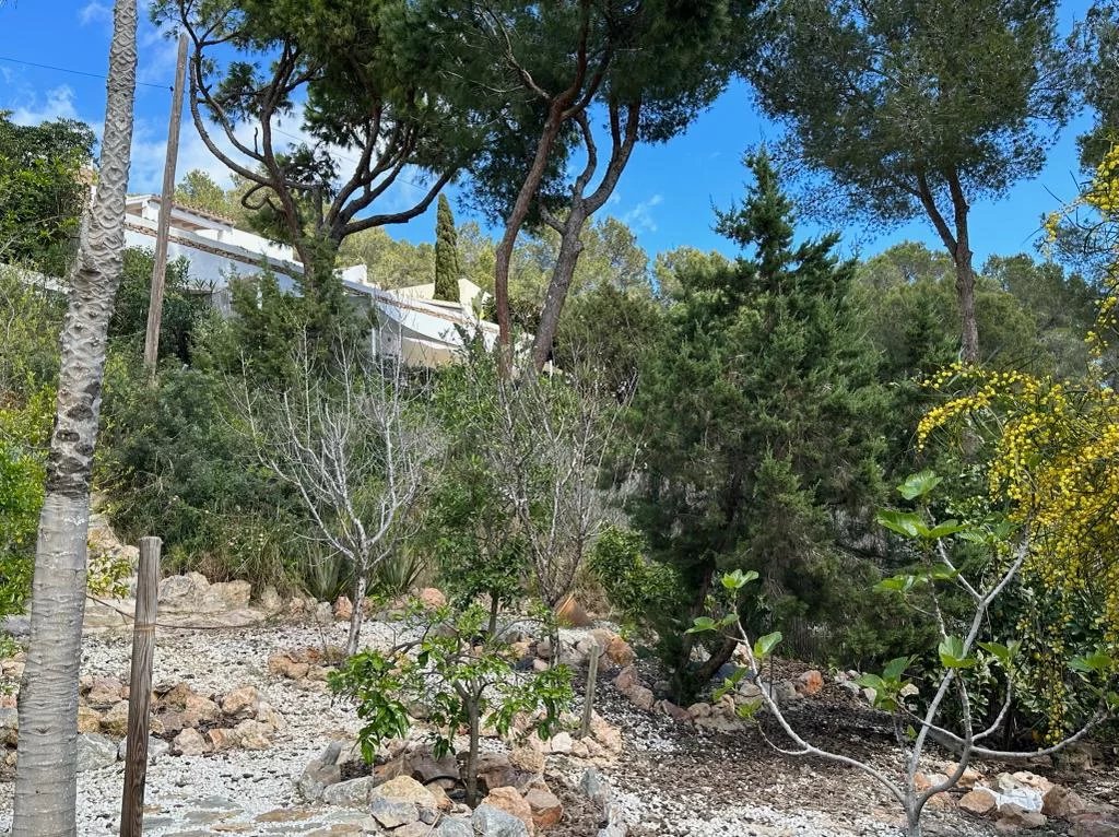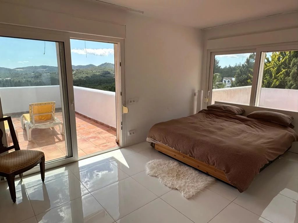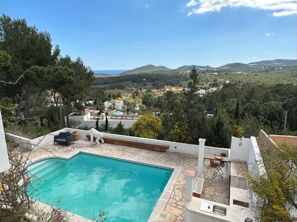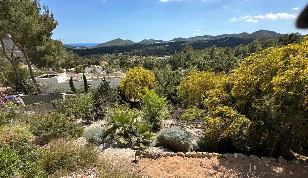 Sta Eulalia - Panoramic views Between Santa Eularia and ibiza Town residential area. No noise pollution. All rooms and terraces overlooking Cala Llonga with rare spectacular panoramic 180 degree sea, valley, Formentera, mountain, forest views. 3 levels. 2 undercover car parking spaces. Backing onto natural forest. Tropical fruit garden. 3/4 bedrooms. 3 bathrooms. Cinema room. 250 metres built. 700 metres garden. New kitchen, central heating, electrics. Partly renovated.