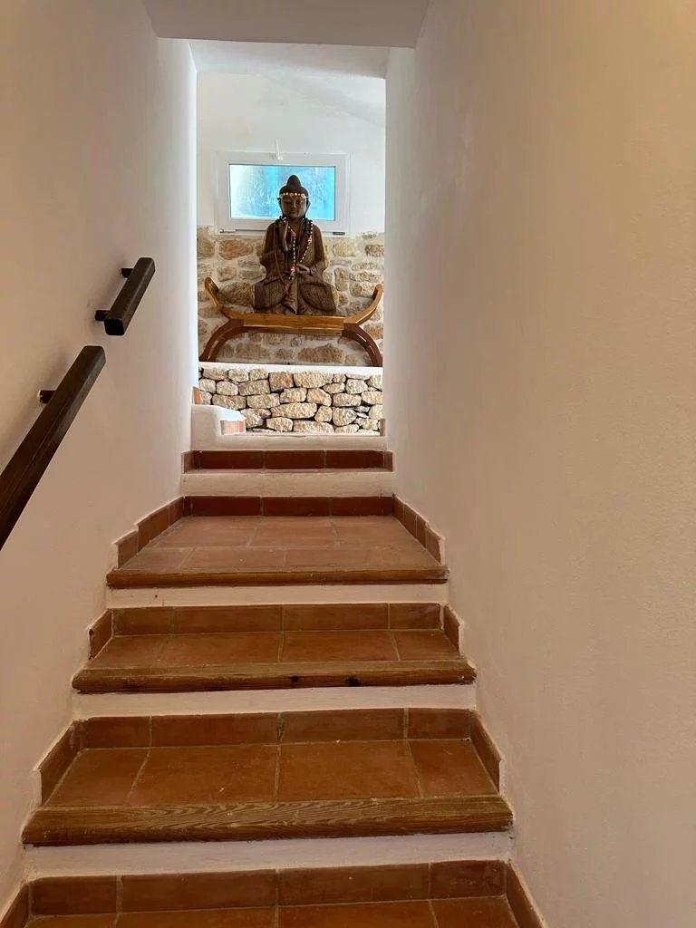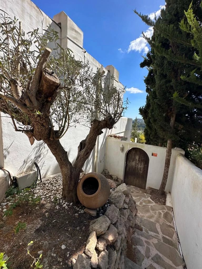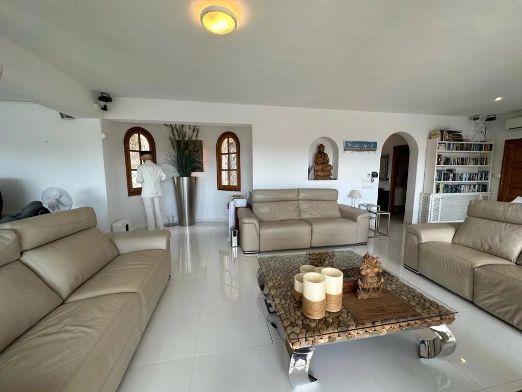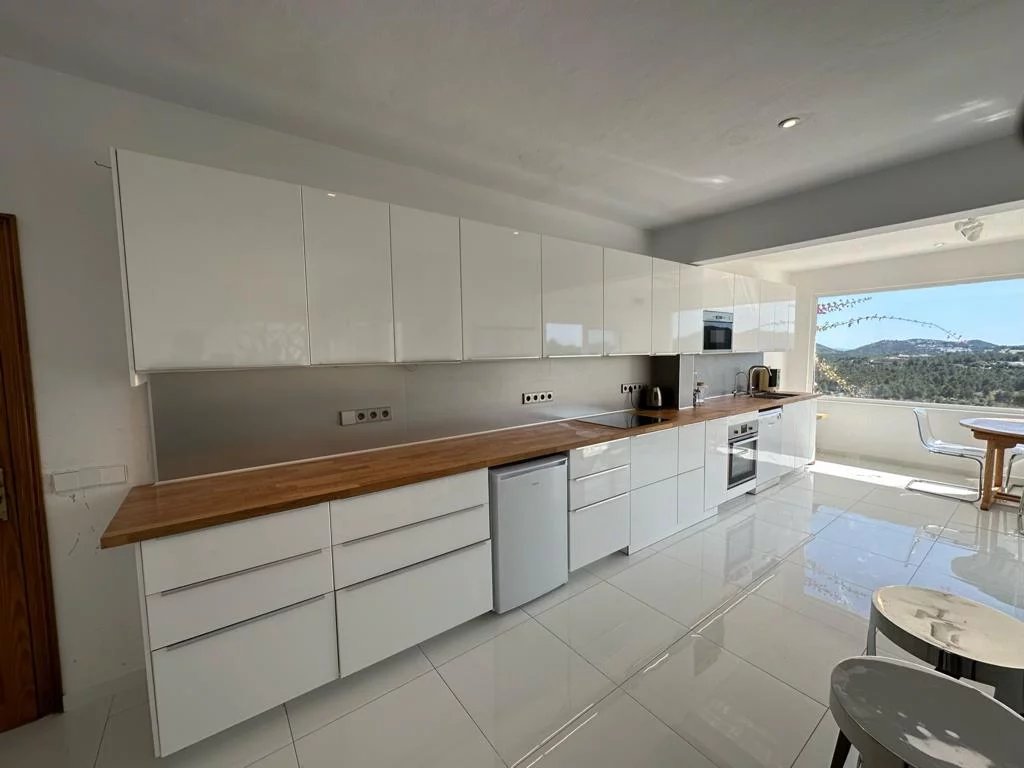 Sta Eulalia - Panoramic views Between Santa Eularia and ibiza Town residential area. No noise pollution. All rooms and terraces overlooking Cala Llonga with rare spectacular panoramic 180 degree sea, valley, Formentera, mountain, forest views. 3 levels. 2 undercover car parking spaces. Backing onto natural forest. Tropical fruit garden. 3/4 bedrooms. 3 bathrooms. Cinema room. 250 metres built. 700 metres garden. New kitchen, central heating, electrics. Partly renovated.
