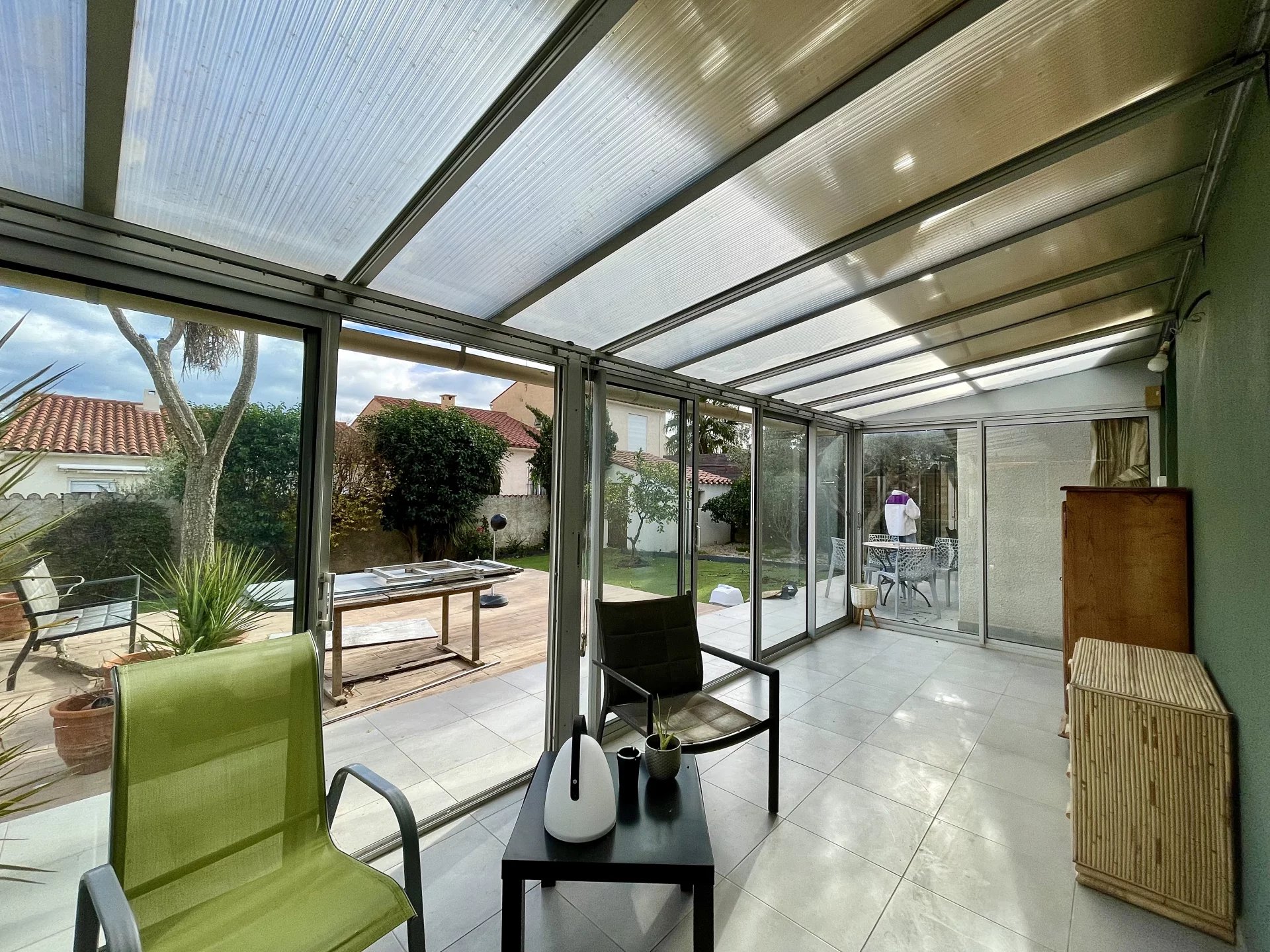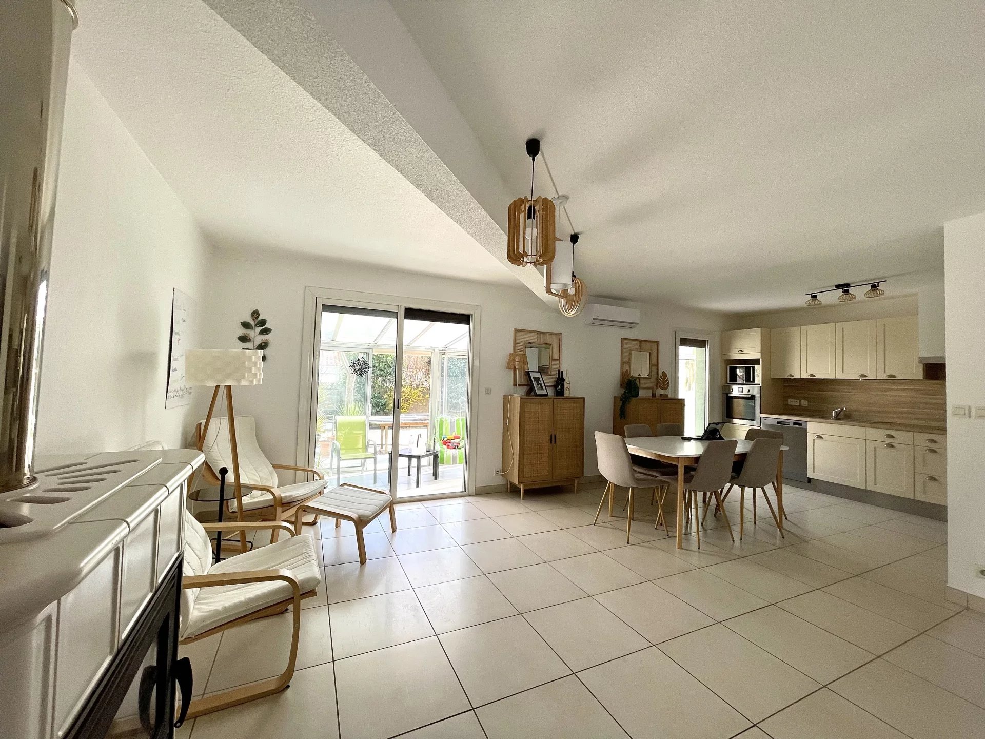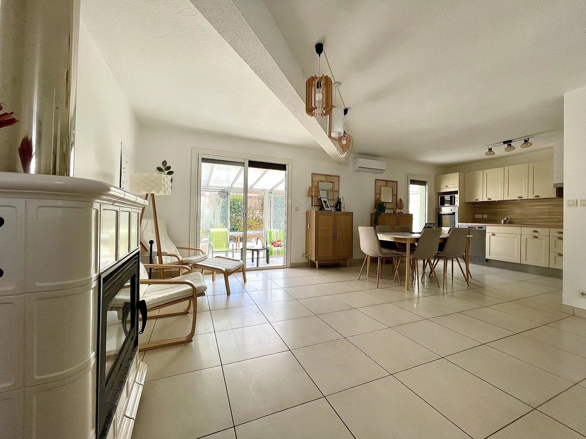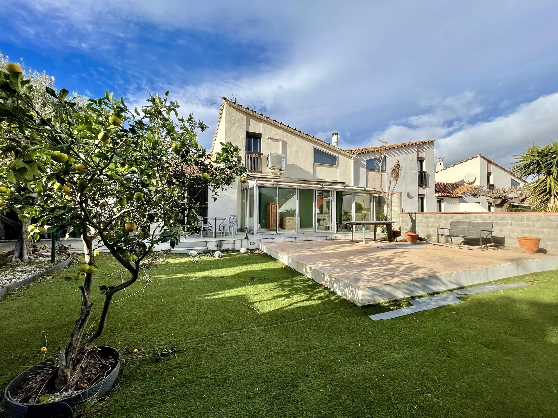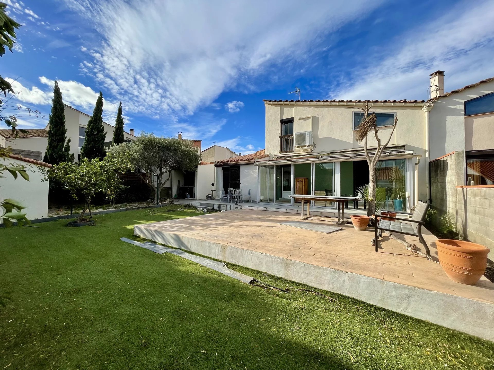 Copropriété horizontale, Maison R+1 120m² hab sur une parcelle de 400m² env. Une suite parentale en rdc, cuisine ouverte équipée, une véranda, et une terrasse carrelée, à l'étage 2 chambres et leur salle d'eau, un bel espace bureau, Annexe: demi-Garage, 2 pl. de parking, casot 4m² Prestations: menuiserie double vitrage, cheminée, clim