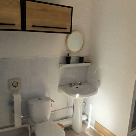 Au RDC : une cuisine (sol tomettes rouges), salle à manger et une salle de bain, WC. Une petite cour.