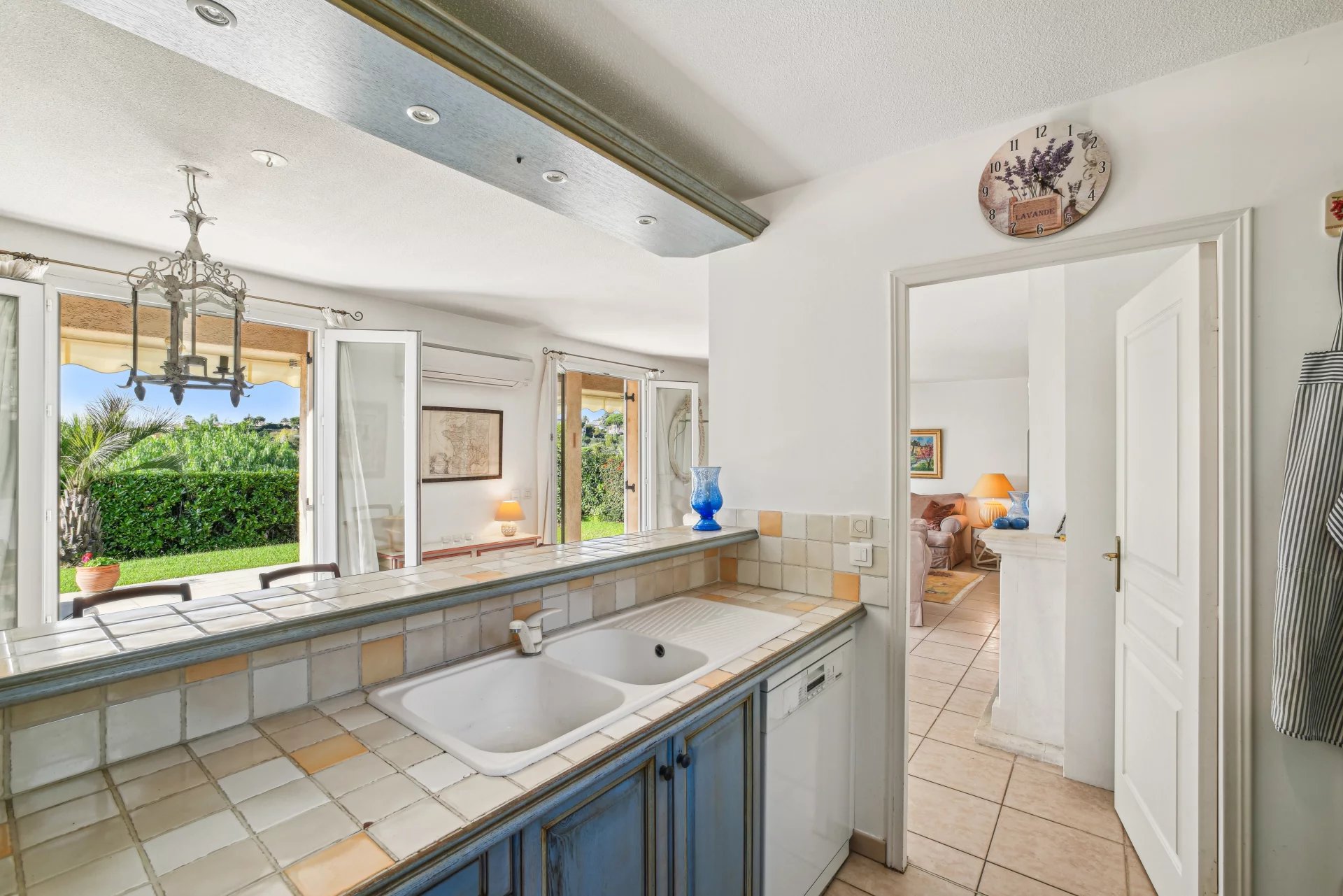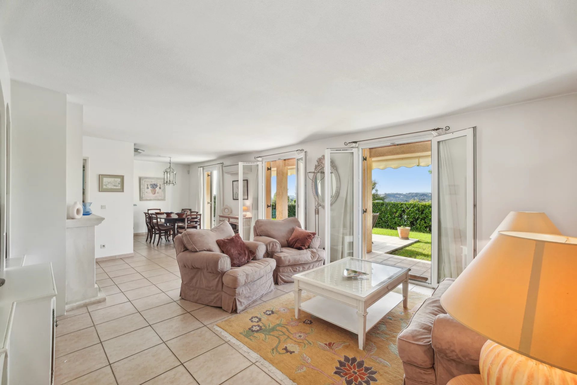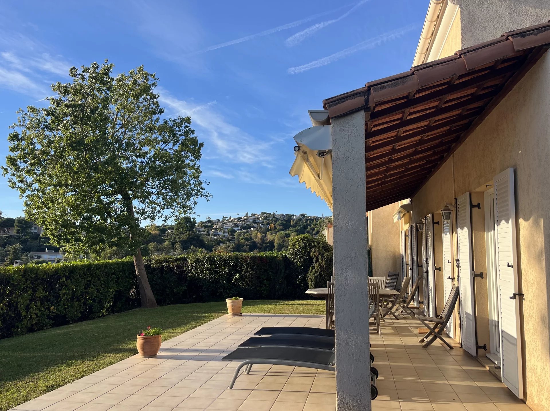 VENDUE - Exclusivité - Villeneuve-Loubet - Cette villa discrètement mitoyenne (que d’un côté) se situe dans la Résidence fermée de Vaugrenier Présidences. Cette résidence, entre Nice et Cannes, proche du village de Biot, est très bien entretenue. Un gardien, une piscine, 2 terrains de tennis, un terrain de jeux pour enfants et un terrain de pétanque offrent un cadre de vie agréable. Le bus scolaire pour l'école primaire et le collège passe dans l'allée. Ce bien de 114m² sur 2 étages, exposé Sud-Ouest, se compose, au rez de jardin, d'une entrée avec placard, d’un grand salon /salle à manger avec cheminée , une cuisine semi-ouverte entièrement équipée (Miele etc.) donnant sur le jardin, d’une chambre/bureau, d’une buanderie et de WC indépendants. A l'étage se trouvent un espace nuit parental composé d'une belle chambre avec placard possédant sa propre salle de bains et WC et sur le même palier, 2 autres chambres avec chacune un placard. Une salle de douche avec WC et un dressing complètent cet espace. Les trois chambres ont des sols en parquet et offrent une belle vue. La maison est équipée de la climatisation Daikin nouveau, de double vitrage, d'une alarme , de stores extérieur électriques, de l'arrosage automatique et une belle éclairage extérieur. Le terrain est sans vis à vis et très facile d’entretien. Proche de toutes les commodités, de la Gare et des plages de Villeneuve Loubet, cette maison convient aussi bien pour y vivre à l'année ou encore pour une résidence secondaire. Cette maison a un fort potentiel pour les locations saisonnières. La villa est vendue avec 1 garage et 2 places de parking. *** Bien en copropriété. 21 lots principaux. Quote-part des charges environ 415 euros par mois, eau froide incluse. Pas de procédure connue en cours. Les informations sur les risques auxquels ce bien est exposé sont disponibles sur le site Géorisques : georisques.gouv.fr