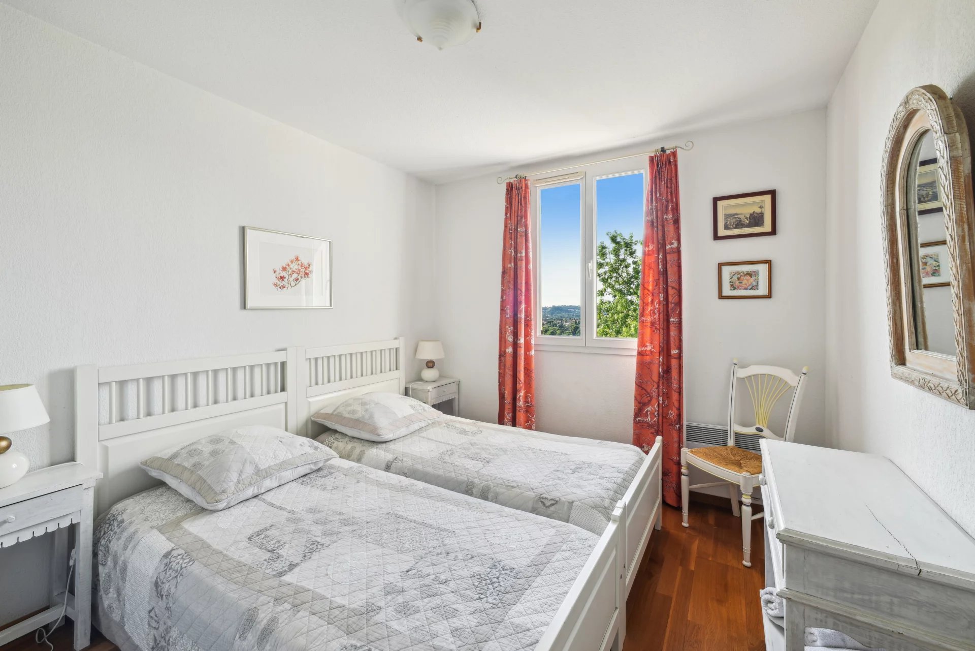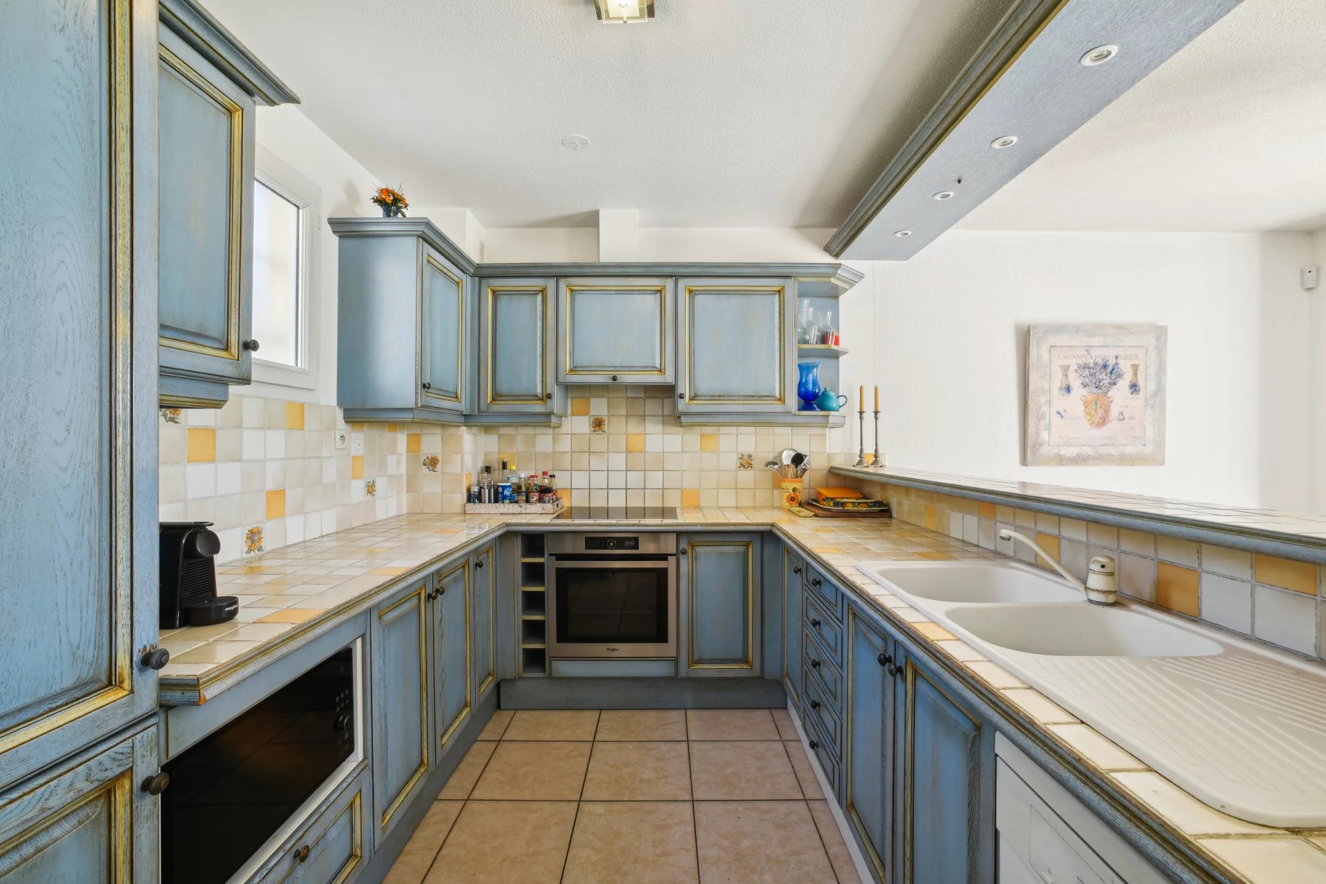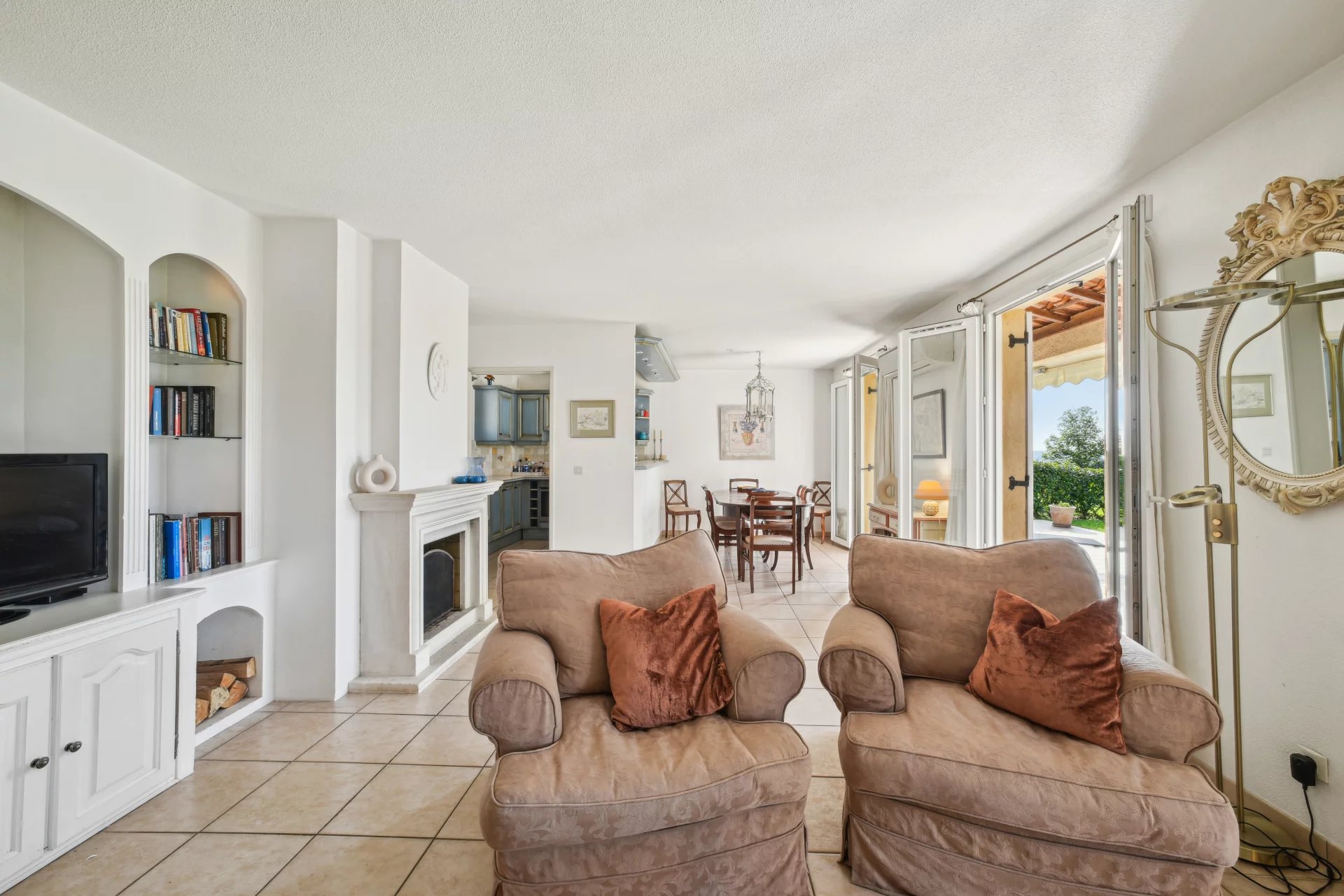 VENDUE - Exclusivité - Villeneuve-Loubet - Cette villa discrètement mitoyenne (que d’un côté) se situe dans la Résidence fermée de Vaugrenier Présidences. Cette résidence, entre Nice et Cannes, proche du village de Biot, est très bien entretenue. Un gardien, une piscine, 2 terrains de tennis, un terrain de jeux pour enfants et un terrain de pétanque offrent un cadre de vie agréable. Le bus scolaire pour l'école primaire et le collège passe dans l'allée. Ce bien de 114m² sur 2 étages, exposé Sud-Ouest, se compose, au rez de jardin, d'une entrée avec placard, d’un grand salon /salle à manger avec cheminée , une cuisine semi-ouverte entièrement équipée (Miele etc.) donnant sur le jardin, d’une chambre/bureau, d’une buanderie et de WC indépendants. A l'étage se trouvent un espace nuit parental composé d'une belle chambre avec placard possédant sa propre salle de bains et WC et sur le même palier, 2 autres chambres avec chacune un placard. Une salle de douche avec WC et un dressing complètent cet espace. Les trois chambres ont des sols en parquet et offrent une belle vue. La maison est équipée de la climatisation Daikin nouveau, de double vitrage, d'une alarme , de stores extérieur électriques, de l'arrosage automatique et une belle éclairage extérieur. Le terrain est sans vis à vis et très facile d’entretien. Proche de toutes les commodités, de la Gare et des plages de Villeneuve Loubet, cette maison convient aussi bien pour y vivre à l'année ou encore pour une résidence secondaire. Cette maison a un fort potentiel pour les locations saisonnières. La villa est vendue avec 1 garage et 2 places de parking. *** Bien en copropriété. 21 lots principaux. Quote-part des charges environ 415 euros par mois, eau froide incluse. Pas de procédure connue en cours. Les informations sur les risques auxquels ce bien est exposé sont disponibles sur le site Géorisques : georisques.gouv.fr