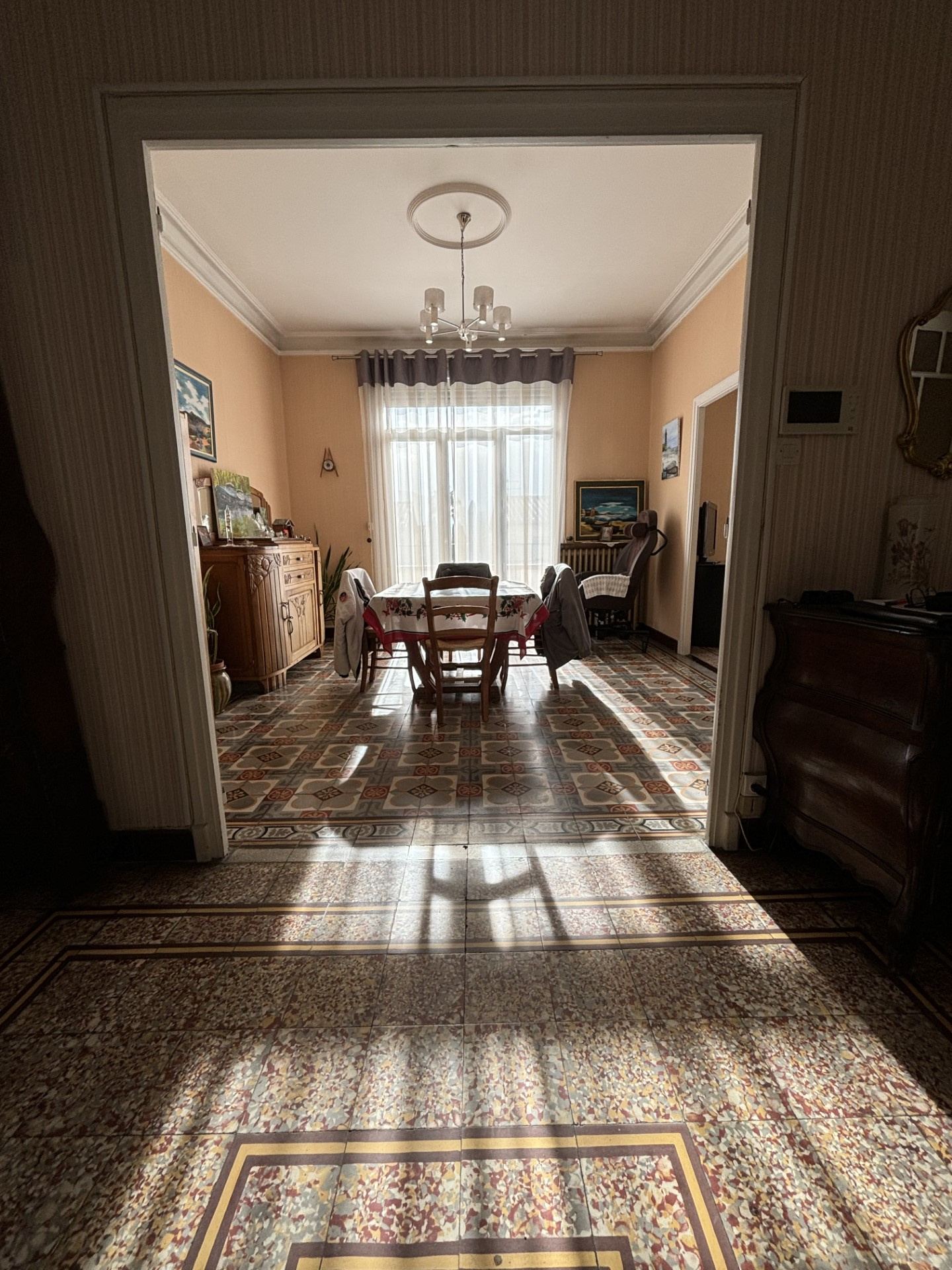 Vente en NUE-PROPRIETE de cette maison cossue des années 50 très bien entretenue comprenant un appartement au premier étage, avec de beaux volumes, de magnifiques carreaux de ciment au sol, très lumineux. Il est composé d'un double-séjour, d'une cuisine, de trois grandes chambres, d'une salle d'eau et d'un WC séparé. Un grand balcon et une terrasse d'environ 35m2, ainsi qu'une véranda viennent agrémenter le bien. En rez-de-chaussée, vous trouverez un garage de plus de 130m2 avec une sortie sur le jardin, parfait pour local professionnel puisque situé au centre ville du Boulou, ou possibilité de créer un ou plusieurs logements dès l'accès à la pleine propriété. Gros potentiel.