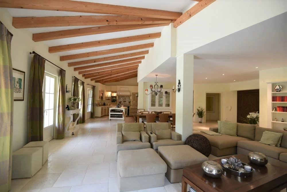Propriété d’Exception au cœur du Golf de Terre Blanche – Tourrettes (83440) Au sein du très exclusif Domaine de Terre Blanche, écrin privé et sécurisé de 266 hectares, cette somptueuse villa bénéficie d’un environnement naturel remarquable et d’infrastructures de prestige : deux parcours de golf 18 trous de renommée internationale, un hôtel 5★ et un Spa parmi les plus réputés d’Europe. Implantée sur un superbe terrain paysager d’environ 4 253 m², cette propriété développe près de 420 m² habitables et offre une élégance intemporelle, de magnifiques volumes et un art de vivre tourné vers la lumière et la douceur méditerranéenne. Espaces de réception Le rez-de-chaussée accueille un vaste séjour avec cheminée, aux proportions généreuses, sublimé par une belle hauteur sous plafond et de larges ouvertures sur l’extérieur. La cuisine ouverte, entièrement équipée, s’intègre harmonieusement à l’espace de vie et s’ouvre sur une grande terrasse couverte, véritable pièce supplémentaire pour les réceptions estivales. Buanderie et espaces de service complètent ce niveau. Deux belles chambres avec dressing et salle d’eau privative offrent un confort de plain-pied très recherché. À l’étage Un bureau lumineux, idéal pour le télétravail ou un espace lecture, ainsi qu’un solarium permettant de profiter pleinement du climat et de la vue dégagée sur la nature environnante. Espace indépendant invités / famille Avec son entrée indépendante, une aile de la maison propose quatre chambres supplémentaires et trois salles d’eau, parfaite pour accueillir famille et amis en toute intimité. Rez-de-jardin – Bien-être & détente Un niveau entièrement dédié au confort et à la relaxation : Une chambre spacieuse Une salle de sport avec sauna Une salle d’eau Un jacuzzi extérieur, pour des moments privilégiés face au calme absolu de la nature Une cave vient compléter les prestations. Extérieurs Les espaces extérieurs, parfaitement entretenus, offrent une atmosphère de villégiature permanente : Piscine chauffée Cuisine d’été, idéale pour recevoir Nombreuses terrasses et zones de détente Jardin méditerranéen paysager garantissant intimité et sérénité Prestations complémentaires Garage double Domaine ultra sécurisé Environnement résidentiel d’exception Prestations de qualité et finitions soignées Une propriété rare, conjuguant luxe discret, nature préservée et art de vivre provençal, destinée à une clientèle en quête d’exclusivité au cœur de l’un des domaines les plus prestigieux du Sud de la France.
