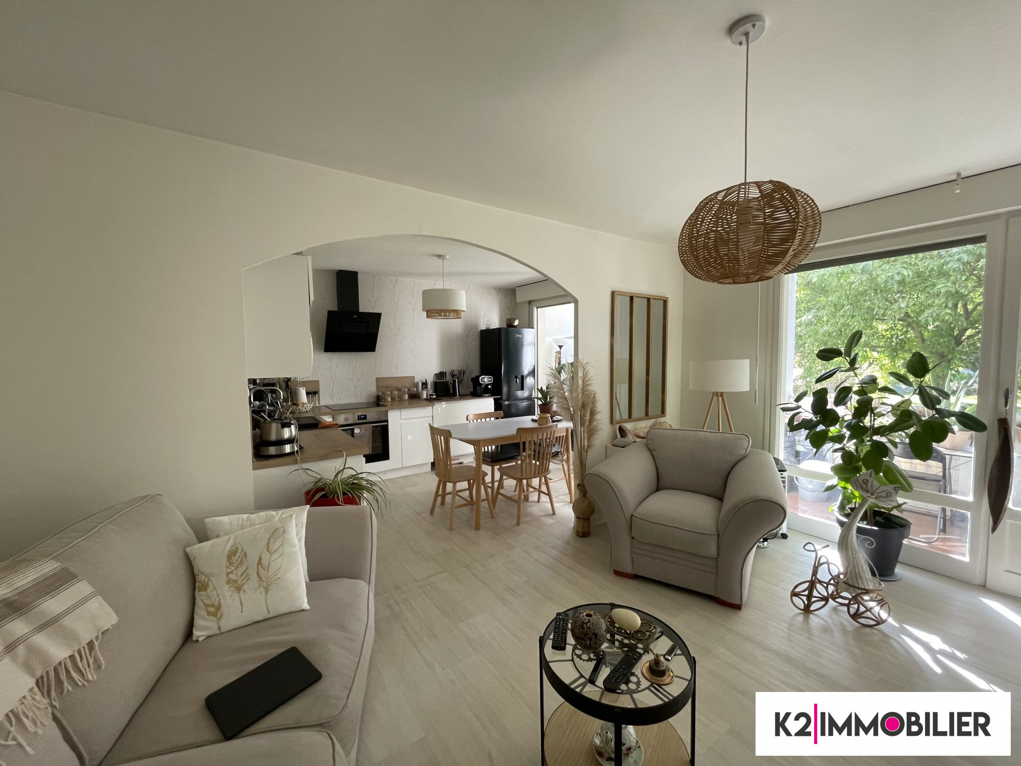 Appartement entierement renové de 64 m² situé au 1 étage dans une rcopropriété sécurisée avec vue sur le parc, 2 chambres dont 1 avec douche, cuisine entièrement équipée ouverte sur la pièce à vivre. Une salle d'eau avec baignoire, toilette séparé, rangement, loggia,
