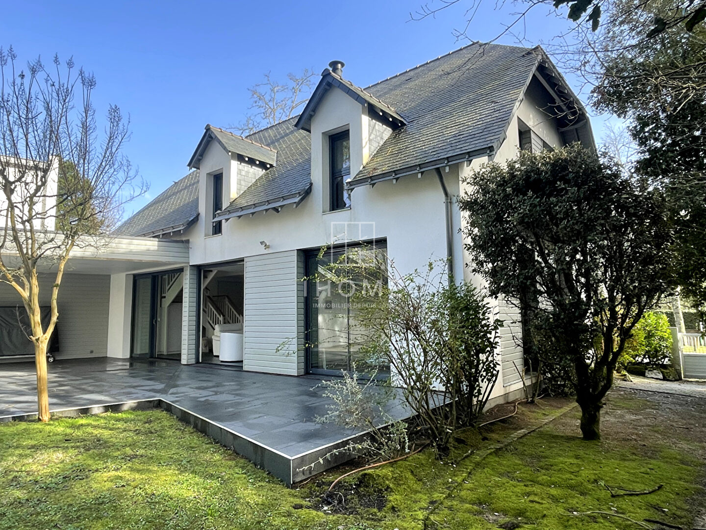 Villa contemporaine de standing située à La Baule les Pins à 10' de la plage et des commerces offrant un cadre de vie familial sur mesure grâce à sa maison d'invités. La surface totale habitable de l'ensemble est de 270m2 et propose une dizaine de chambres. Ces deux maisons sont entièrement autonomes avec des accès distincts et sans vis à vis. Elles bénéficient du calme et de la verdure du jardin exposé sud-ouest. La partie contemporaine de 136m2, construite en 2015, est spacieuse et