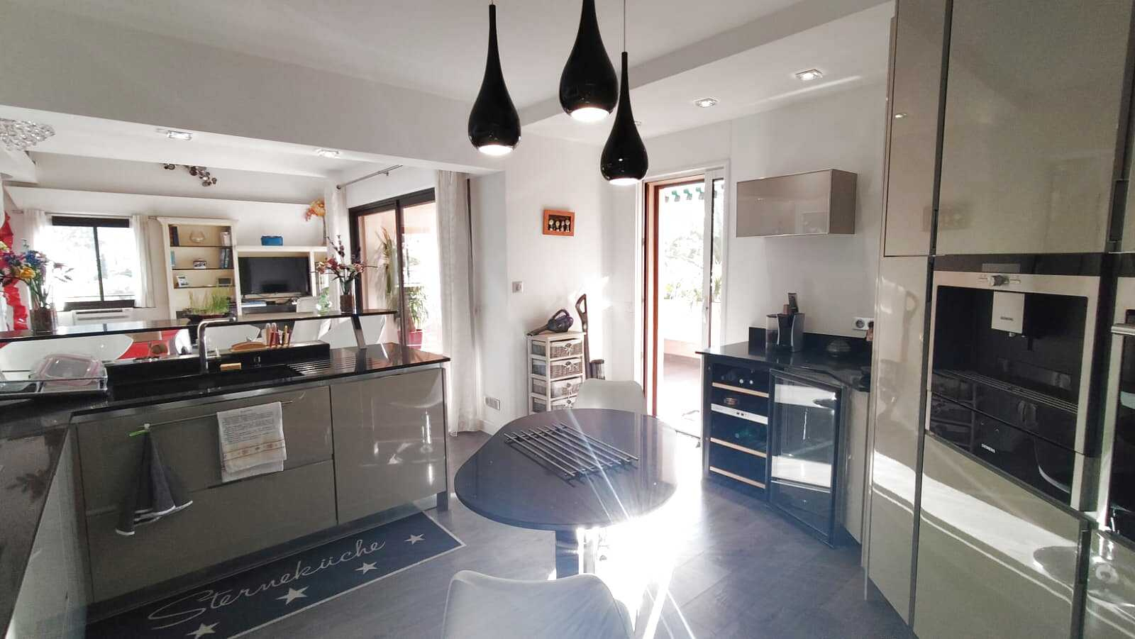 Vue mer, exceptionnel appartement de 130 m2 de plain-pied, en expo sud-est, prolongé d'une terrasse de 60 m2 par l'accès de 3 grandes baies de l'espace de vie de 60 m2 comprenant salon, séjour et cuisine. Vous serez immédiatement séduits par son confort fonctionnel et contemporain, 3 chambres et un bureau, deux salles d'eau et 2 WC. La cuisine équipée est complétée d'une arrière cusine, dressing, placards. Prestations : volets centralisés, climatisation. Garage. Charges 180EUR/mois. Taxe foncière 2300EUR. Ravalement récent pas de procédure. bien rare. Votre contact 06 63 77 52 39
