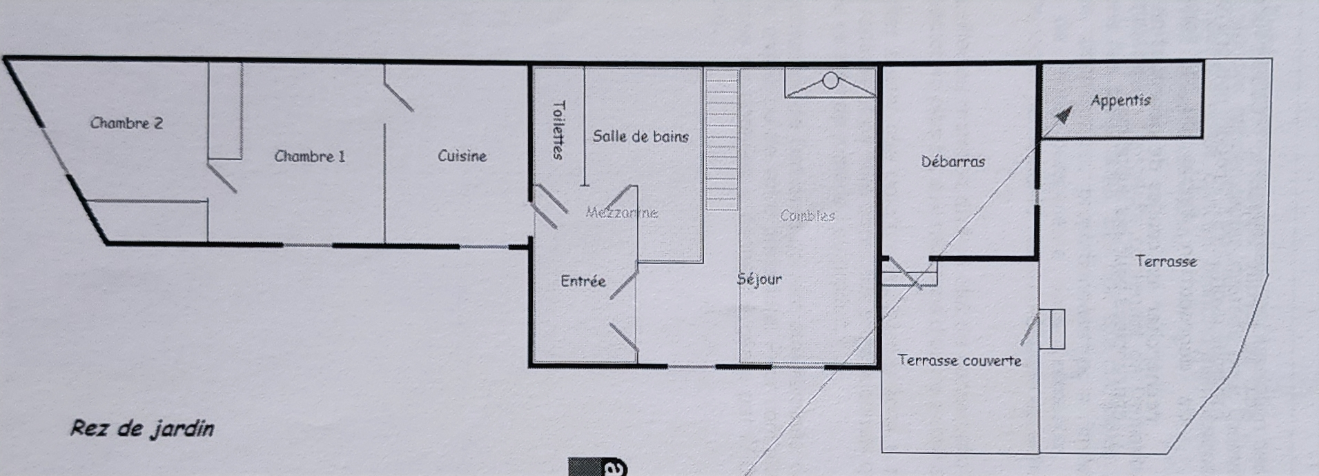 Charmante et authentique maison de 66 m² (+ cellier 9 m²) soigneusement entretenue et en excellent état, avec une entrée, un joli séjour lumineux en mezzanine, cuisine équipée, deux belles chambres accueillantes, véritable salle de bains, WC séparés, bénéficiant en outre d'un grand cellier, d'un grenier, d'une place de stationnement privative intérieure et une à l'extérieur, deux terrasses, le tout sur un terrain à vue dégagée, sans vis-à-vis, avec la tranquillité propre à ce quartier paisible.