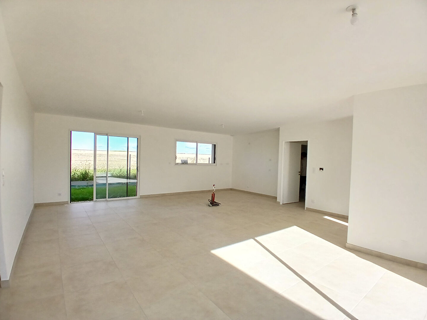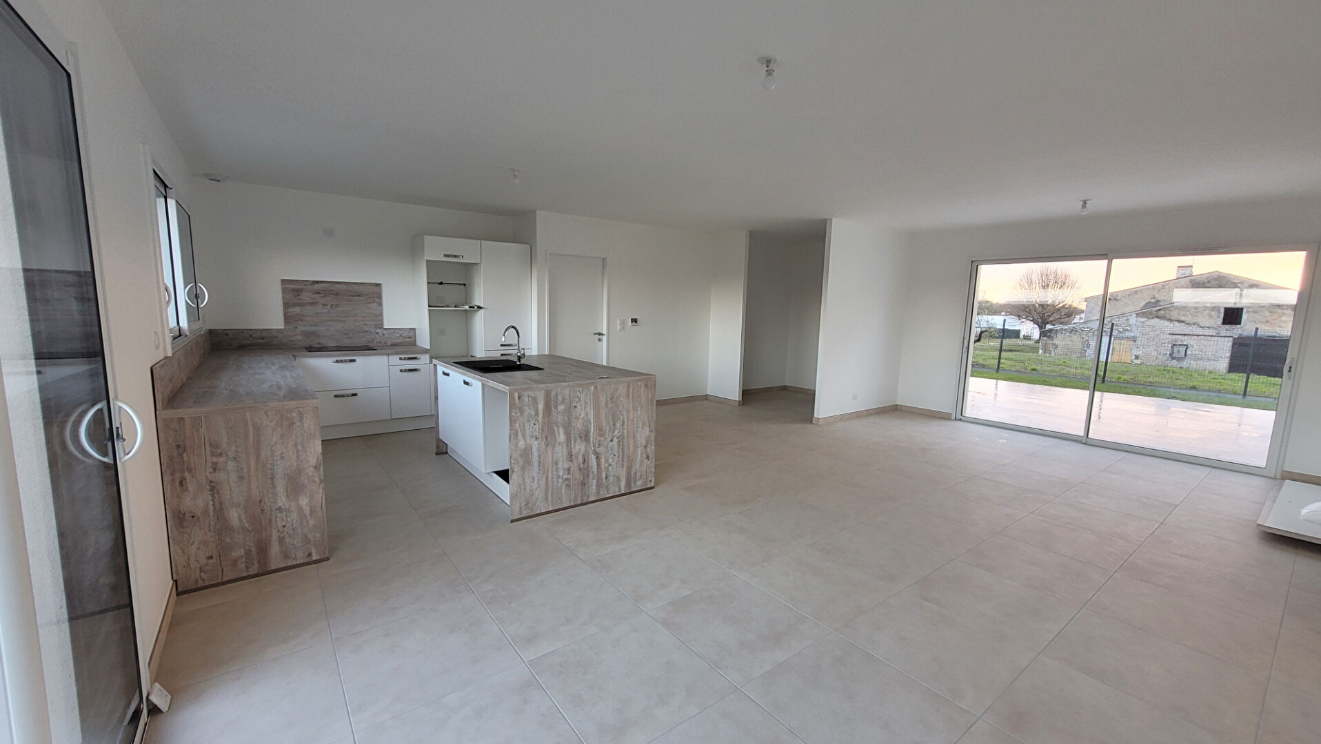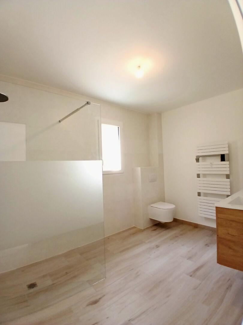 Prix revisité et FRAIS NOTAIRE RÉDUITS! A 2 km du Leclerc Royan et 4.5km des plages de ROYAN et ST GEORGES DE DIDONNE , dans secteur calme et habité à l'année MAISON NEUVE de 133m² PLAIN PIED total : entrée ,pièce de vie 52m² traversante (EST-SUD) avec cuisine ouverte éq/aménagée, cellier/buanderie,garage 22 m² communicant, 2 parties nuit distinctes comprenant d'un côté 2 chambres dont une avec accès terrasse et de l'autre côté une chambre, salle d'eau avec wc, chambre parentale 23m² avec salle d'eau privée, dressing à aménager et terrasse. Chauffage au sol 2 zones avec PAC ( normes RE 2020), domotique pour stores électriques et chauffage. Grande terrasse 43m² , terrain clos 500m² sans portail ( possibilité de garer camping-car). Toutes garanties : Dommage ouvrage, Décennale, Normes PMR. Possibilité d'acquérir 500m² supplémentaires ( nous consulter ref 1554) 439900 euros TTC HAI avec Honoraires charge VENDEUR Les informations sur les risques auxquels ce bien est exposé sont disponibles sur le site Géorisques : https://www.georisques.gouv.fr