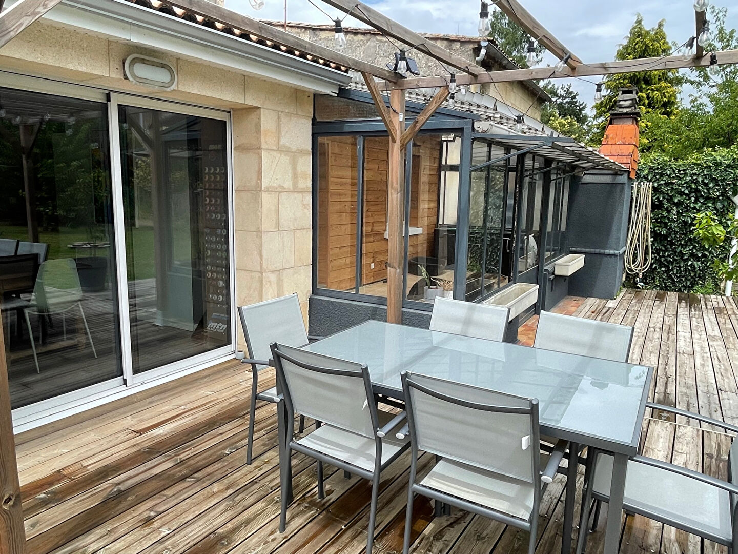 OFFRE D'ACHAT ACCEPTEE - AQUITAINE IMMOBILIER STRATEGIES - MAISON T4 98 M² + 2 GARAGES + TERRASSE + VERRIERE DE 20 M² ENVIRON - PARCELLE 911 M². Notre agence vous propose à la vente cette magnifique maison de ville de 98 M² environ, à la décoration contemporaine, située dans le centre ville de CARBON BLANC. Elle se compose d'une grande pièce de vie (Cuisine ouverte sur salon) totalisant 45 M² environ, avec poêle à bois, donnant sur une grande terrasse exposée SUD EST. Vous profiterez de 3 chambres dont une suite parentale avec douche et wc. Vous trouverez également différentes solutions de rangement, une buanderie ainsi qu'un autre wc. Une grande verrière de 18 M² avec espace barbecue. Terrain piscinable sans vis à vis. 2 garages ou dépendances viennent compléter la prestation. Possibilité de stationner un grand nombre de véhicule dans l'allée. MAISON AU STYLE ANCIEN AVEC RENOVATION CONTEMPORAINE DE QUALITE. AQUITAINE IMMOBILIER STRATEGIES Mr PORTRON Laurent Directeur Agence AQUITAINE IMMOBILIER STRATEGIES Adresse : GARE DE BORDEAUX SAINT JEAN PAVILLON NORD PARVIS LOUIS ARMAND CS 21912 33082 BORDEAUX CEDEX 33800 BORDEAUX RCS N° 821229291 SARL au capital de 1000 euros - Immatriculée au RCS de Bordeaux - SIRET N° 821 229 291 00025 - Carte Professionnelle Transaction : CPI 3301 2016 000 009 960 Délivrée par : Bordeaux Le 12/07/2022 Garant : GALIAN 89, Rue de la Boétie 75008 PARIS Garantie : Transaction Sans maniement de fonds